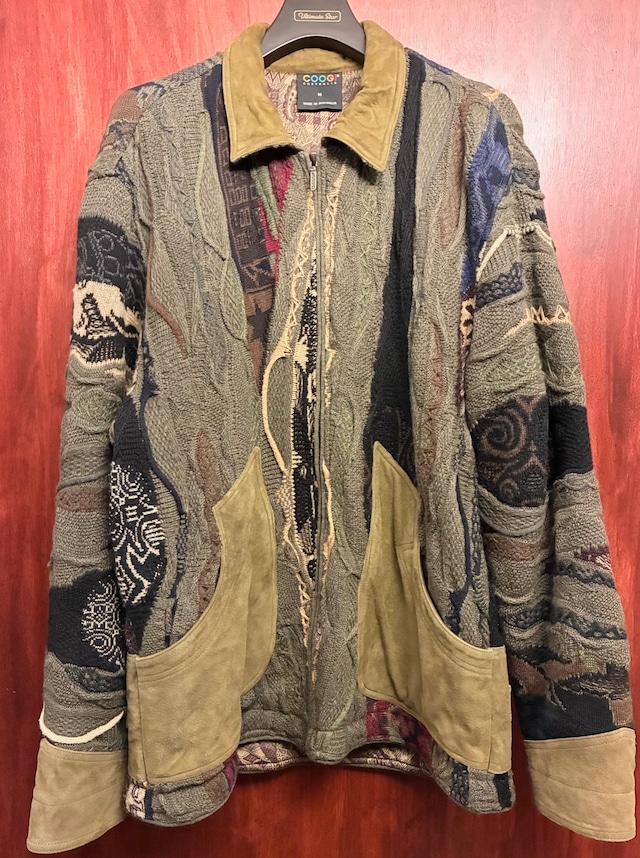 激レア MADE IN AUSTRALIA製 COOGI 3Dニット × スウェードレザー フルジップニットジャケット カーキ×ブラウン Mサイズ