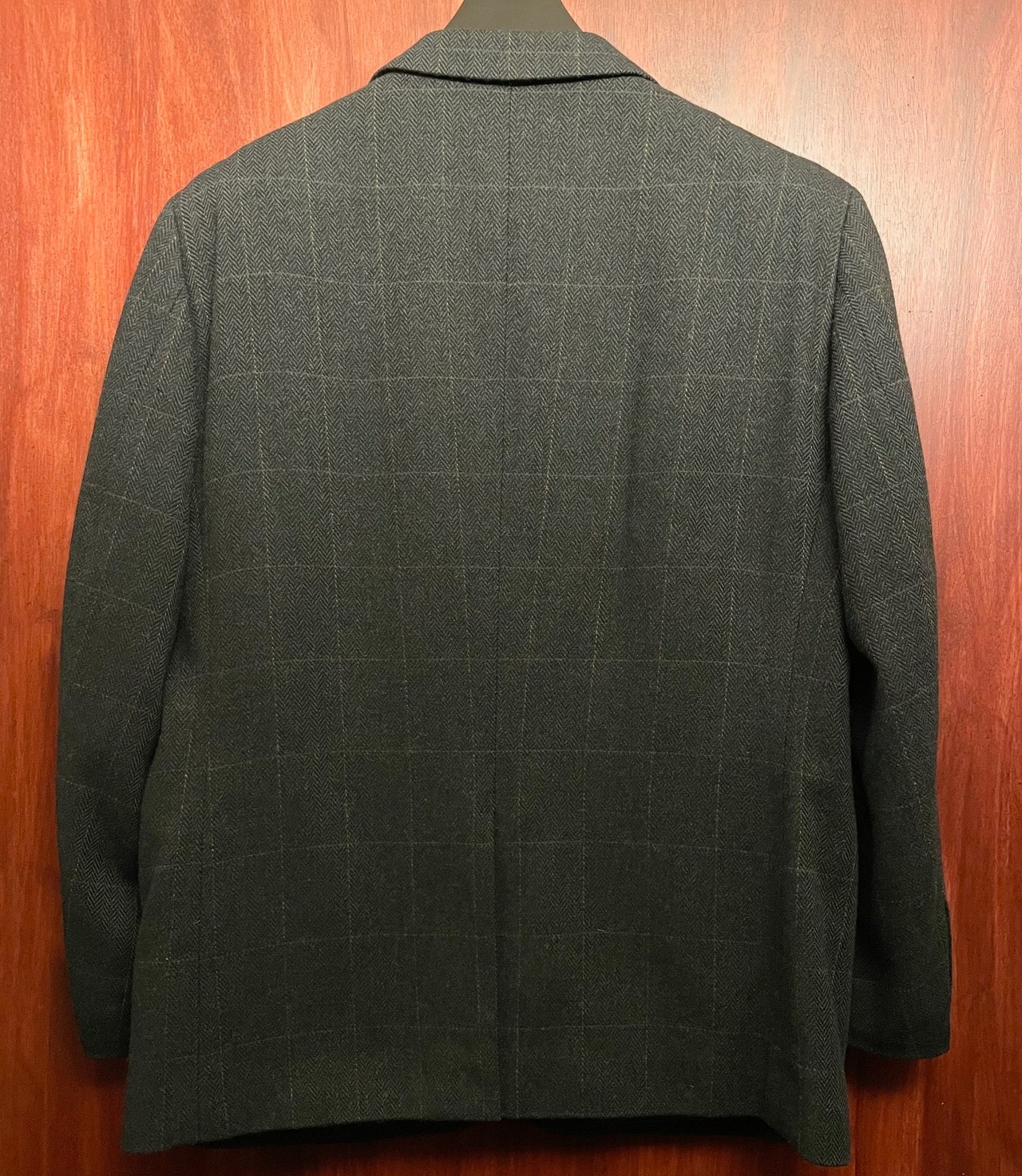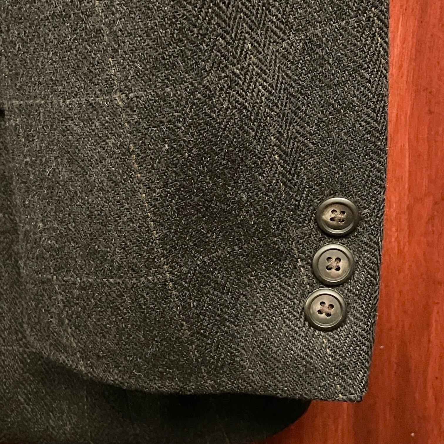 ヘリンボーン柄の上にブロックチェック柄が入ったグリーンっぽい色味の入ったオシャレな生地を使った高級感溢れるおすすめの一品です。