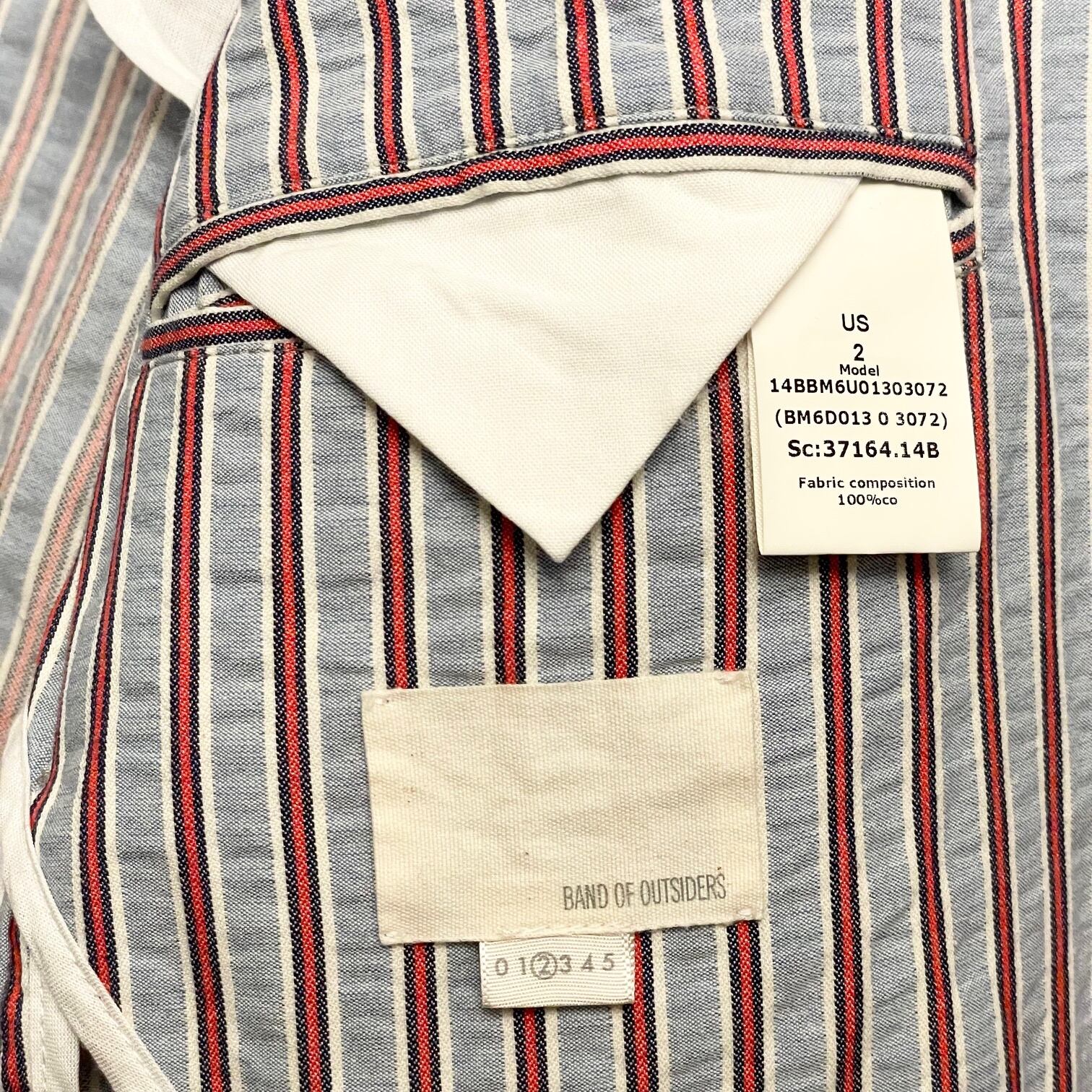 MADE IN ITALY製 BAND OF OUTSIDERS ストライプ柄テーラードジャケット ライトブルー×レッド 2サイズ