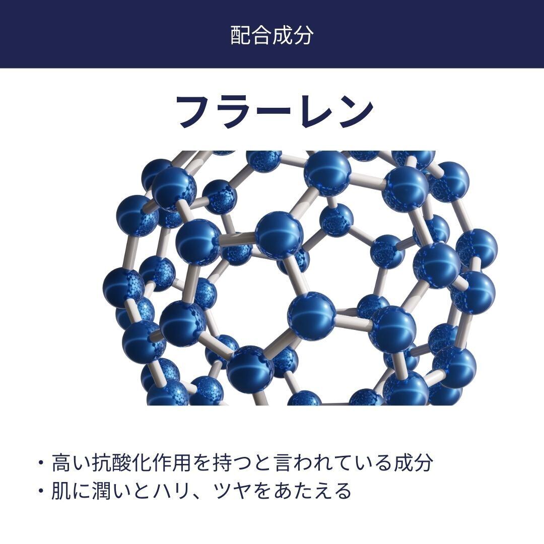 水、ミリスチン酸イソプロピル、セタノール、セテアリルアルコール、ホホバ種子油、セテス-20、BG、ヒト幹細胞順化培養液、レチノール、フラーレン、藍エキス、スクワラン、テトラヘキシルデカン酸アスコルビル、ヒアルロン酸Na、オタネニンジン根エキス、ローズマリー葉エキス、カミツレ花エキス、ツボクサエキス、オウゴン根エキス、イタドリ根エキス、カンゾウ根エキス、チャ葉エキス、ベタイン、グリセリン、ラウリン酸ポリグリセリル-10、ジメチコン、アクリレーツクロスポリマー-2-Na、カルボマーNa、ヒドロキシエチルセルロース、EDTA-2Na、フェノキシエタノール