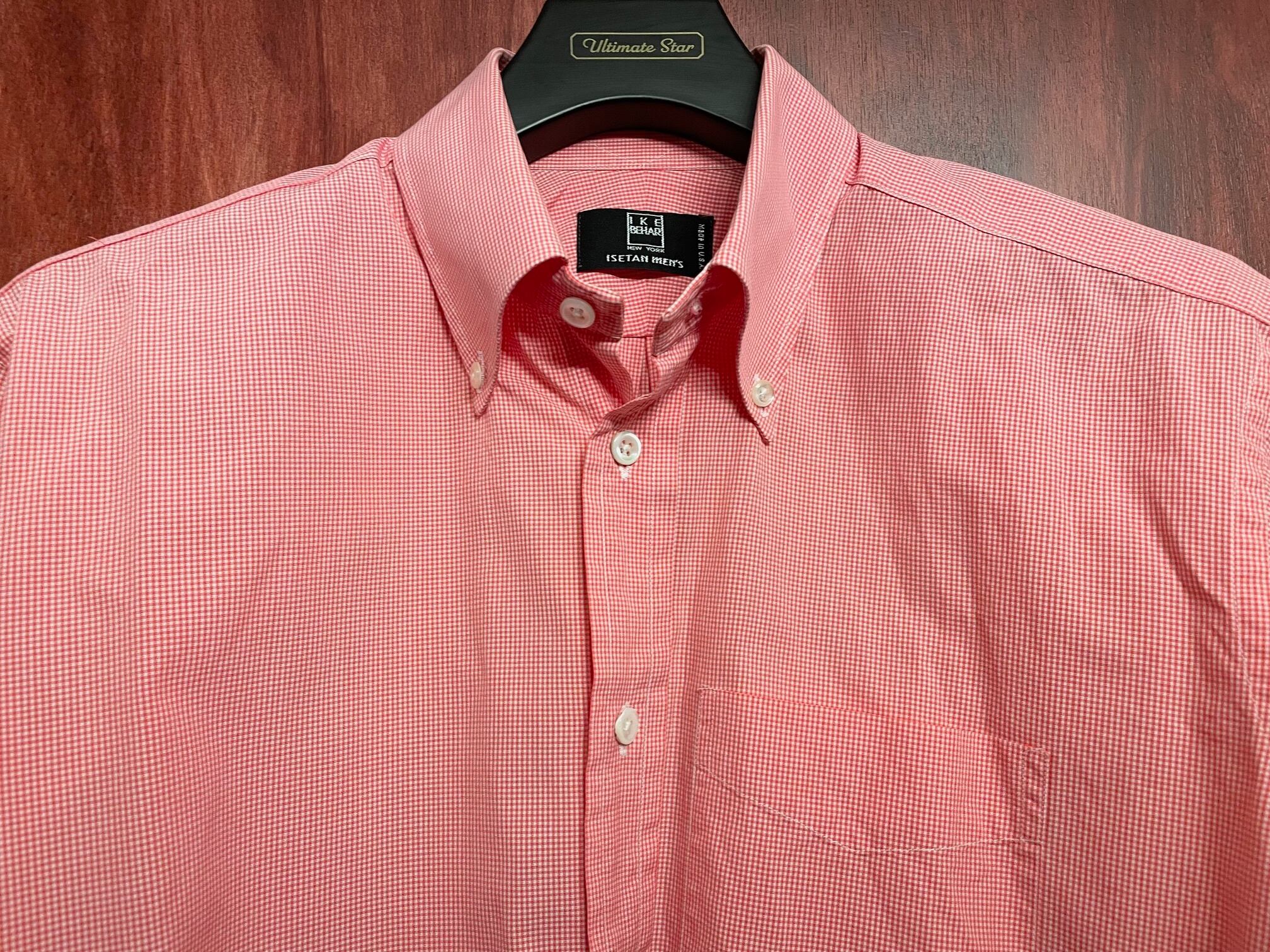 【伊勢丹 取り扱い】 MADE IN USA製 IKE BEHAR ISETAN MEN'S 別注 ギンガムチェック柄長袖ボタンダウンシャツ レッド 16サイズ