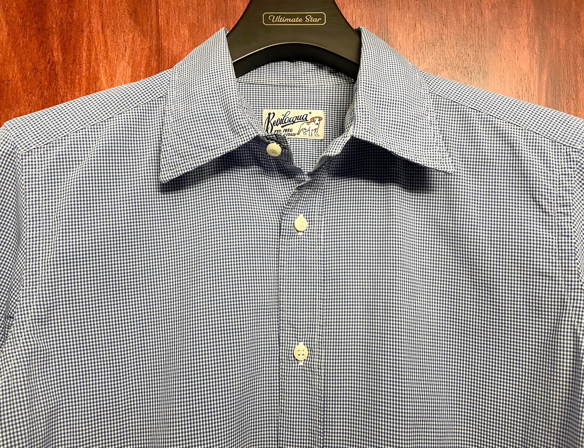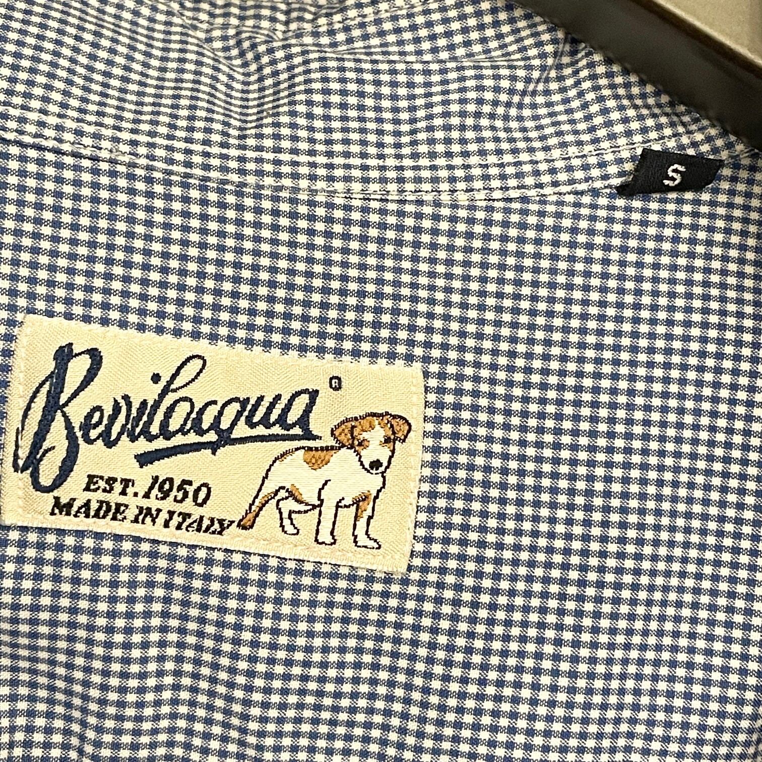 MADE IN ITALY製 Bevilacqua ギンガムチェック柄長袖シャツ ブルー Sサイズ