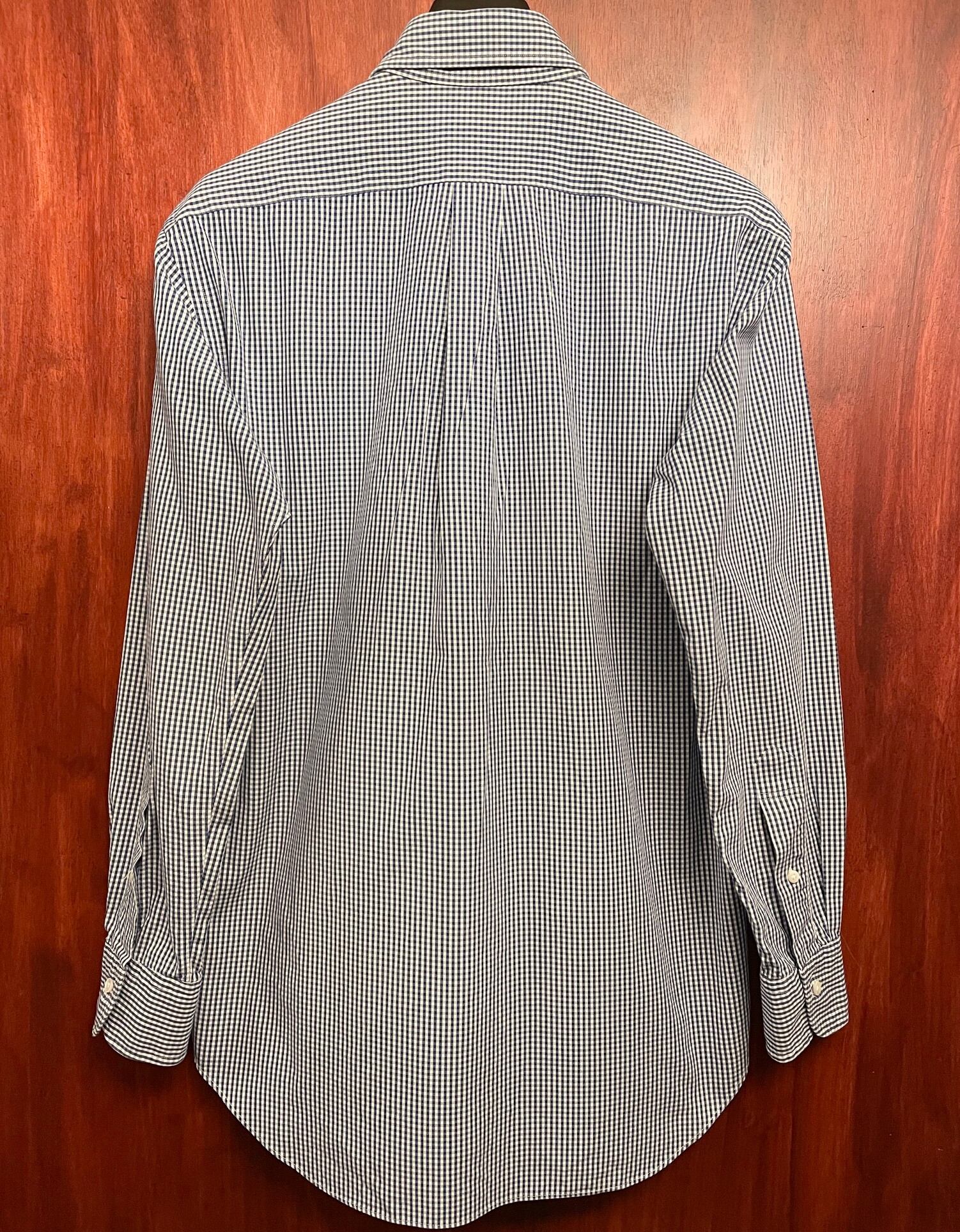 細かいギンガムチェック柄の定番のネイビーカラーで、ボタンダウン仕様なのでノータイでもキッチリ着こなせるおすすめの一品です。