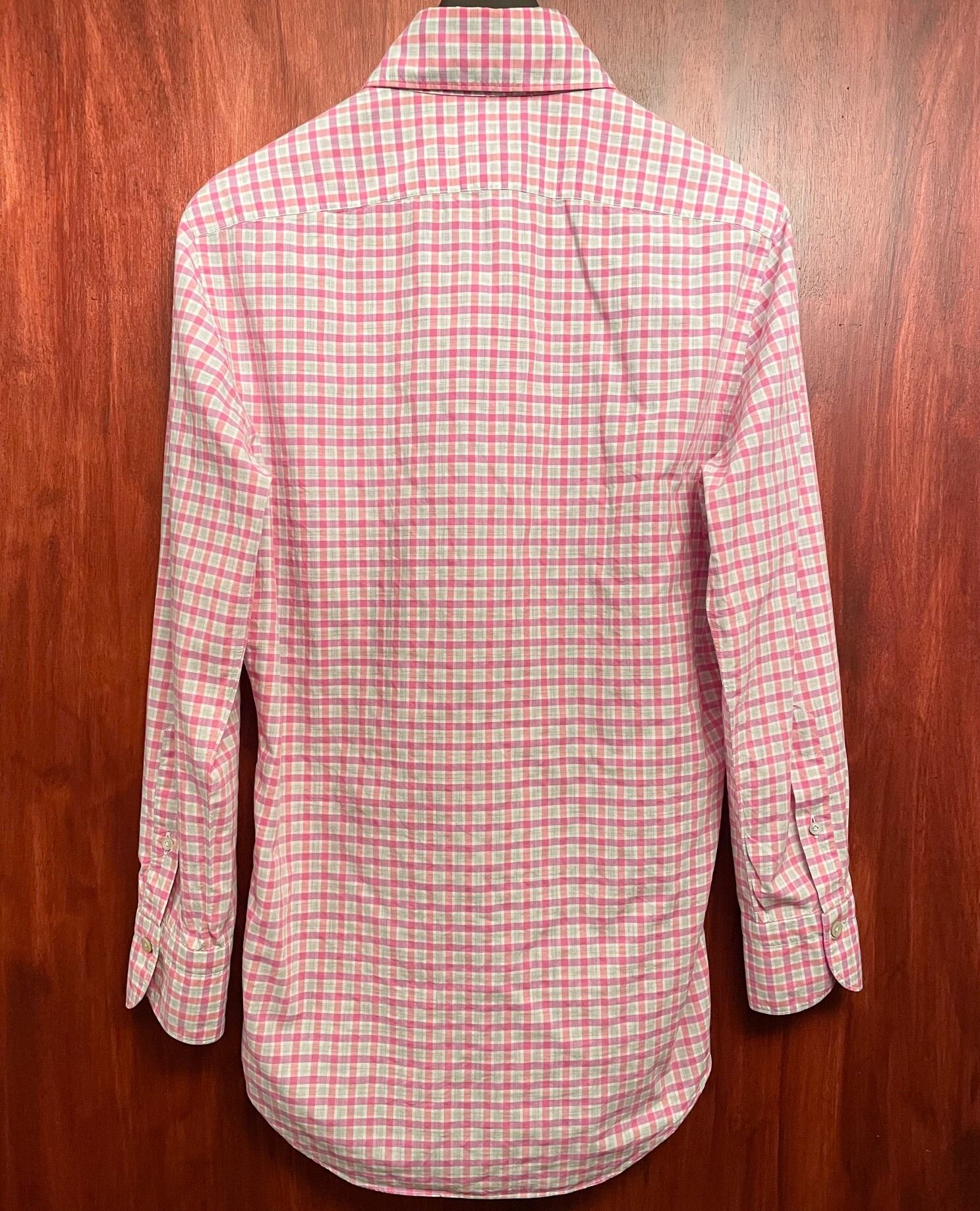 【三越伊勢丹 取り扱い】 MADE IN ITALY製 Finamore ギンガムチェック柄長袖シャツ ピンク 38-15サイズ