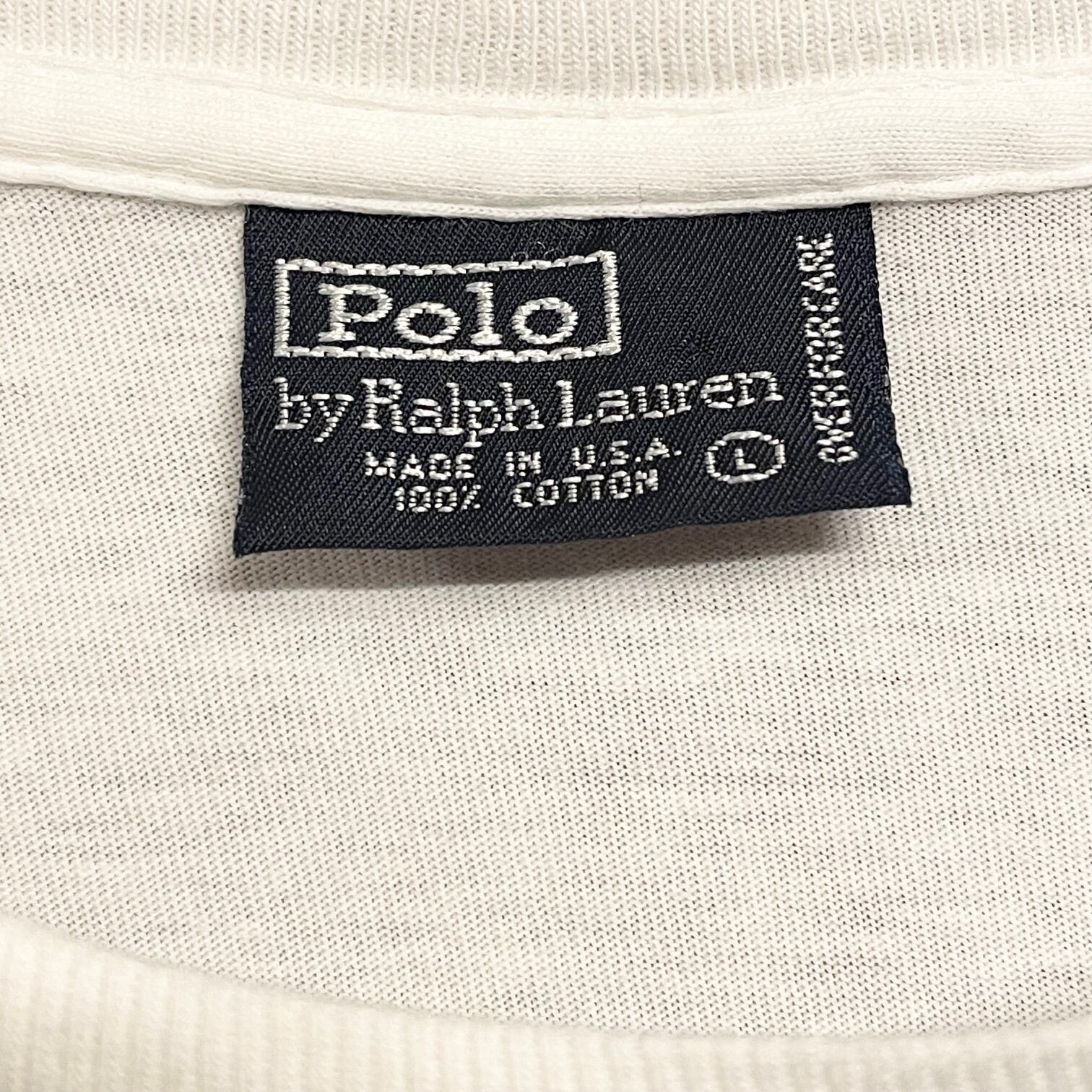 希少 MADE IN USA製 90s Polo by Ralph Lauren ポケット付き ポロ刺繍Tシャツ シングルステッチ ホワイト Lサイズ