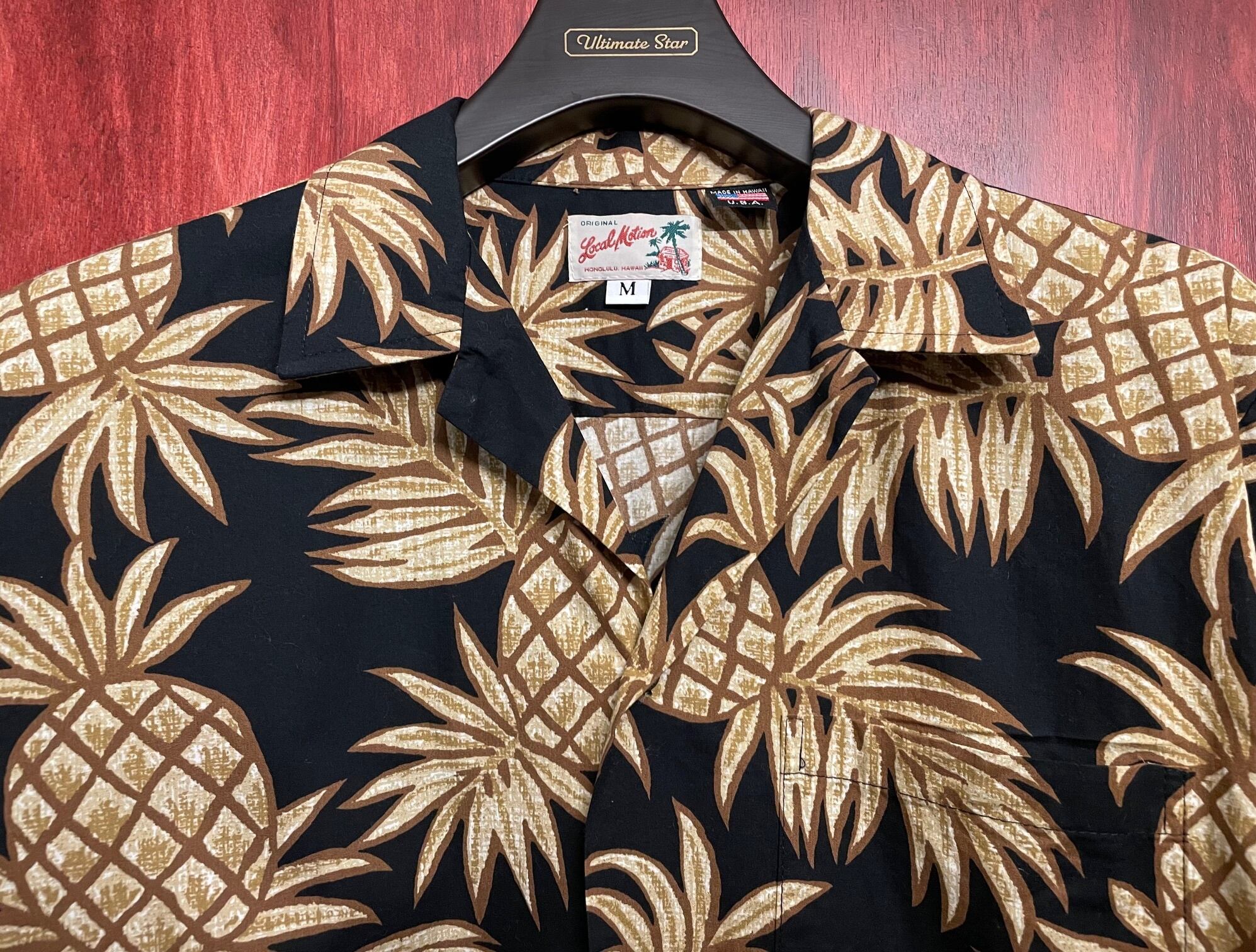 MADE IN USA製 Local Motion パイナップル柄 コットンアロハシャツ ブラック Mサイズ
