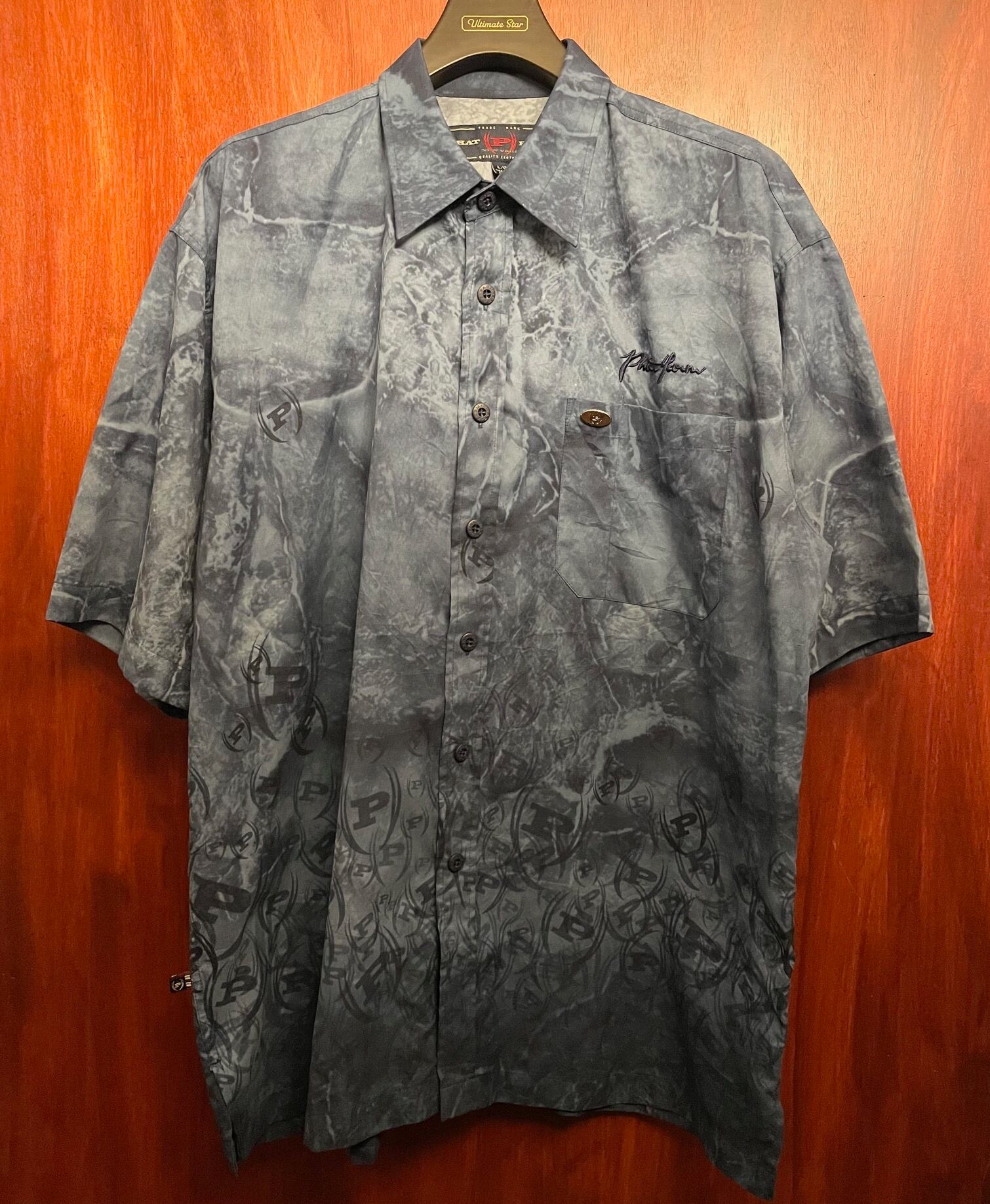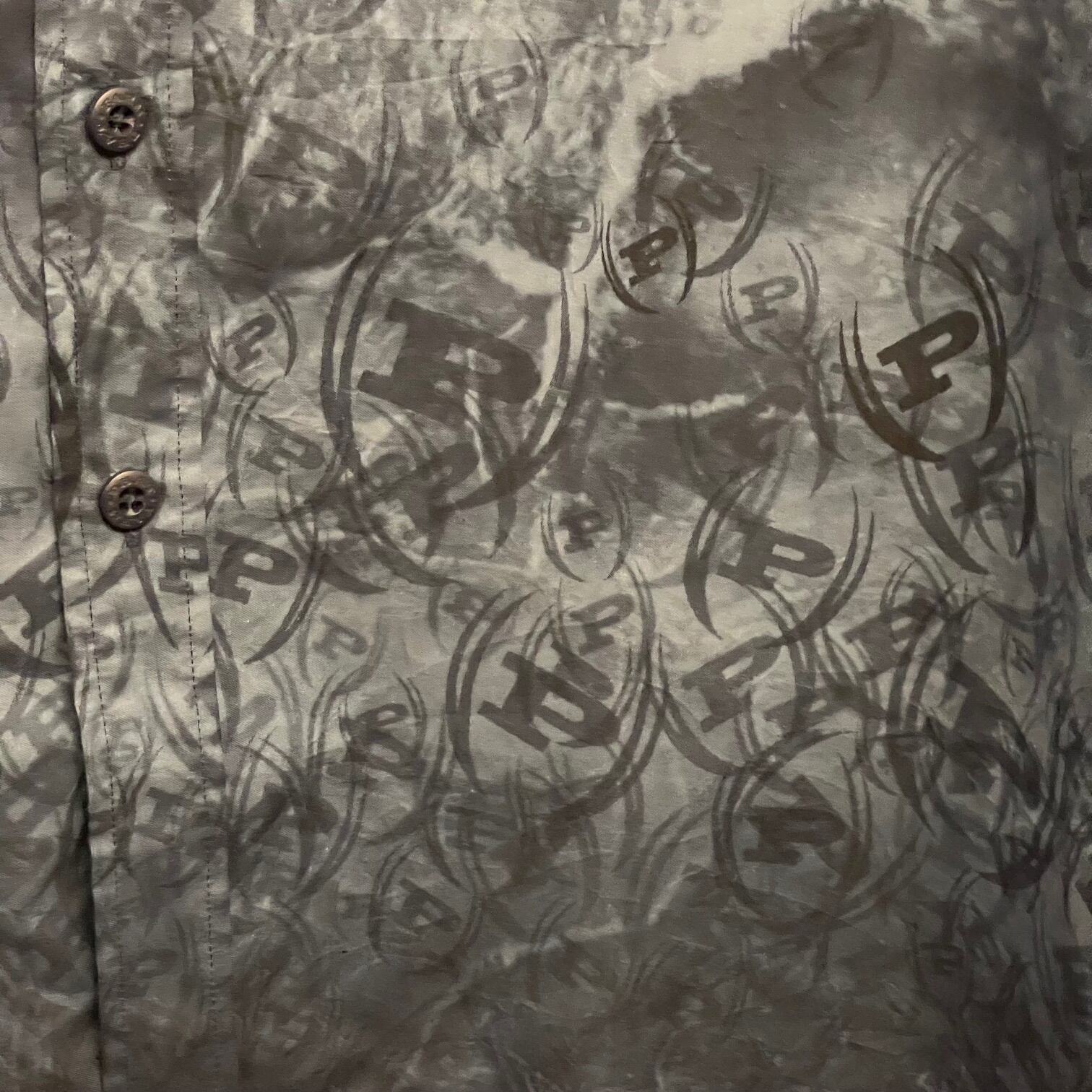 ケミカルウォッシュのような独特のカラーリングに、ブランドロゴのPロゴを身頃部分に散りばめたオシャレなデザインで、レーヨンのような肌さわりのポリエステル素材を使っているのでシワになりにくくノンアイロンで着られる管理も非常にしやすいです。