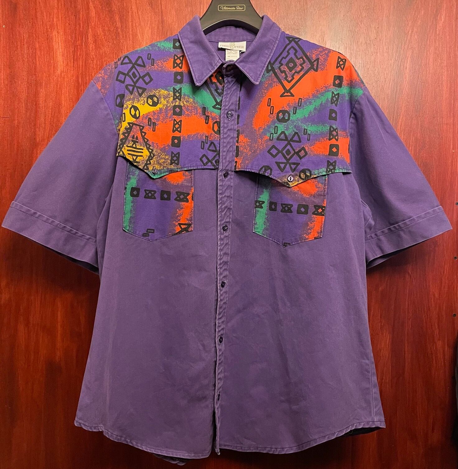 MADE IN USA製 CHRISTOPHER 半袖コットンシャツ パープル Lサイズ