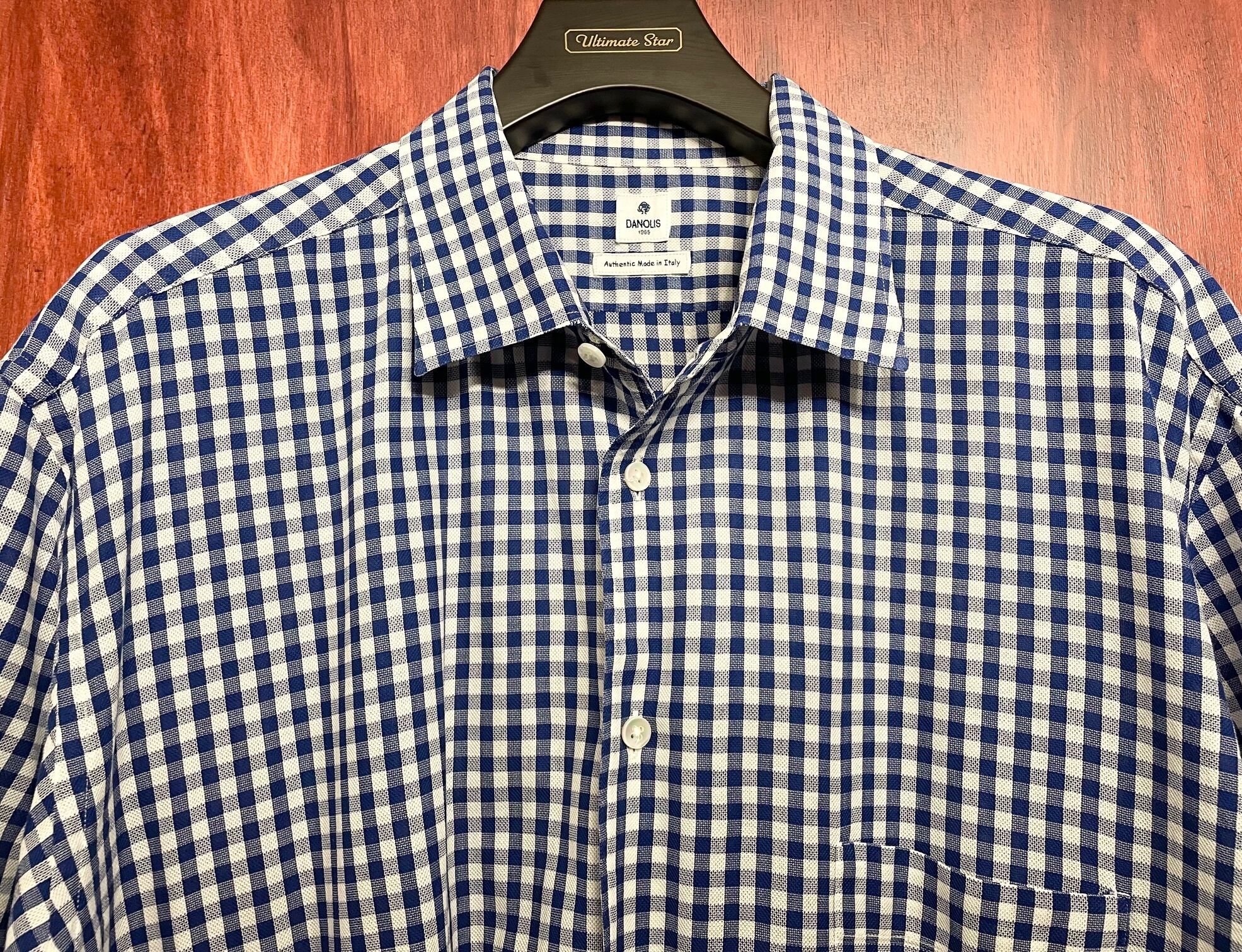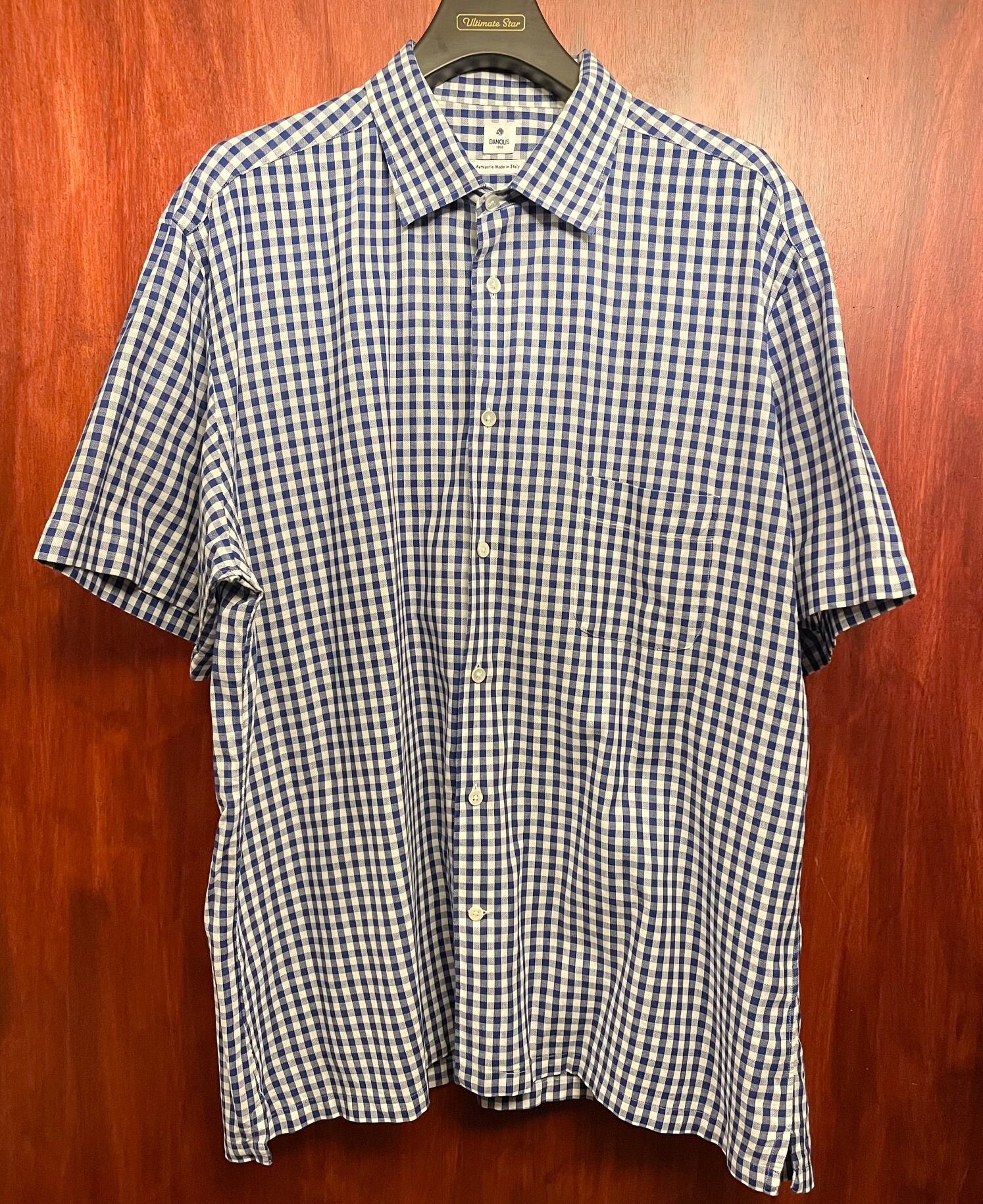 【三越伊勢丹 取り扱い】 MADE IN ITALY製 DANOLIS ギンガムチェック柄半袖コットンシャツ ブルー XXXLサイズ