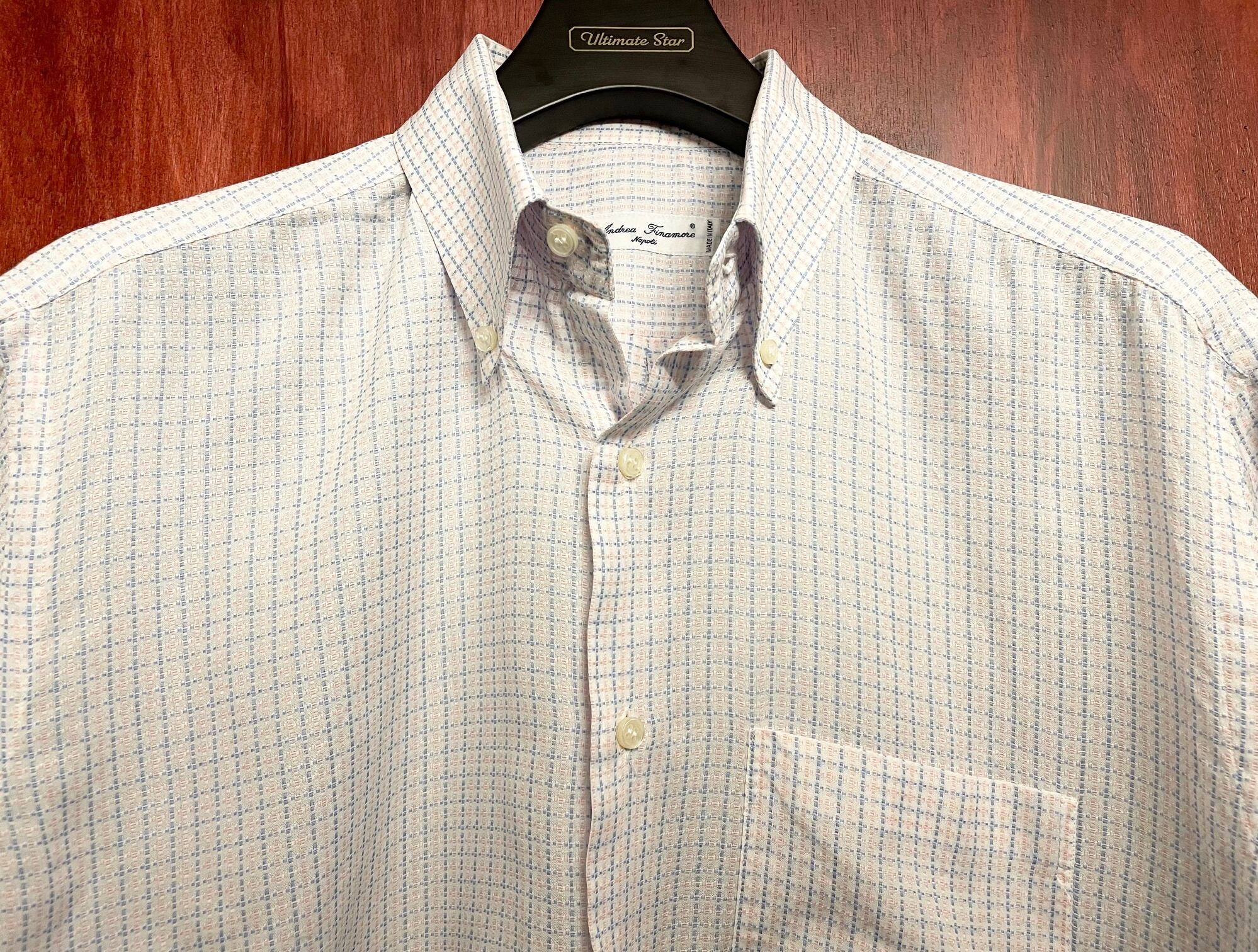 MADE IN ITALY製 Andrea Finamore Napoli チェック柄半袖ボタンダウンシャツ ホワイト Lサイズ