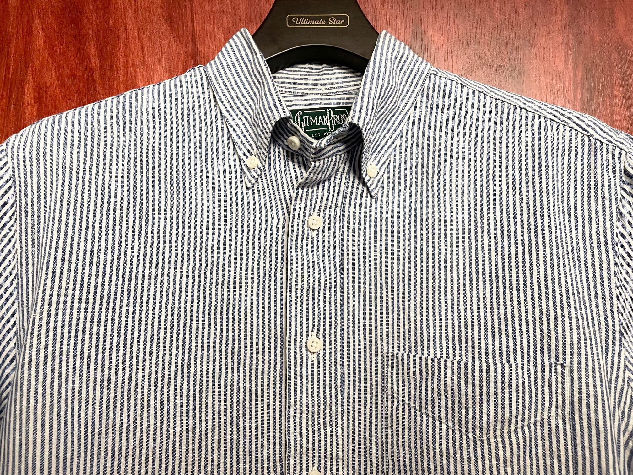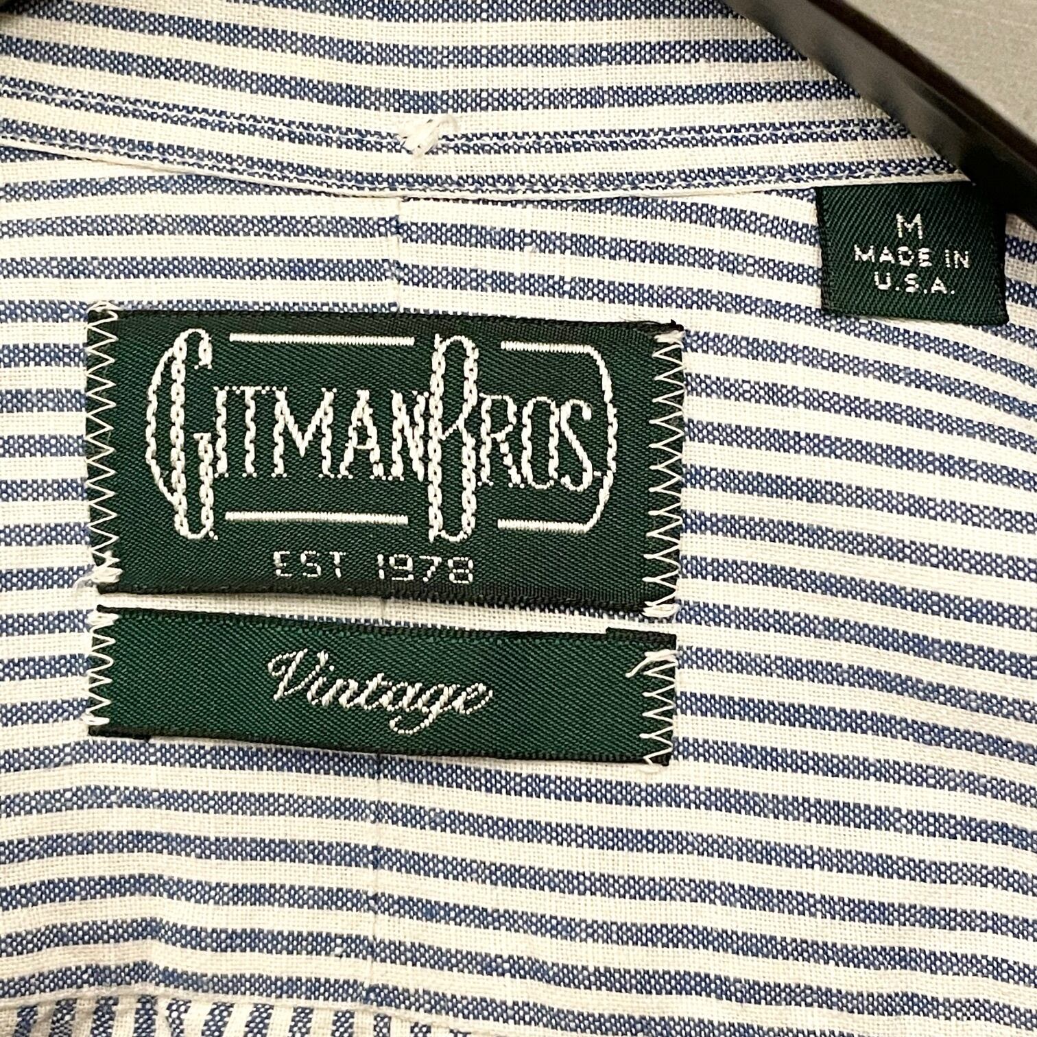MADE IN USA製 GITMAN BROS VINTAGE ストライプ柄半袖ボタンダウンリネンコットンシャツ ホワイト×ブルー Mサイズ