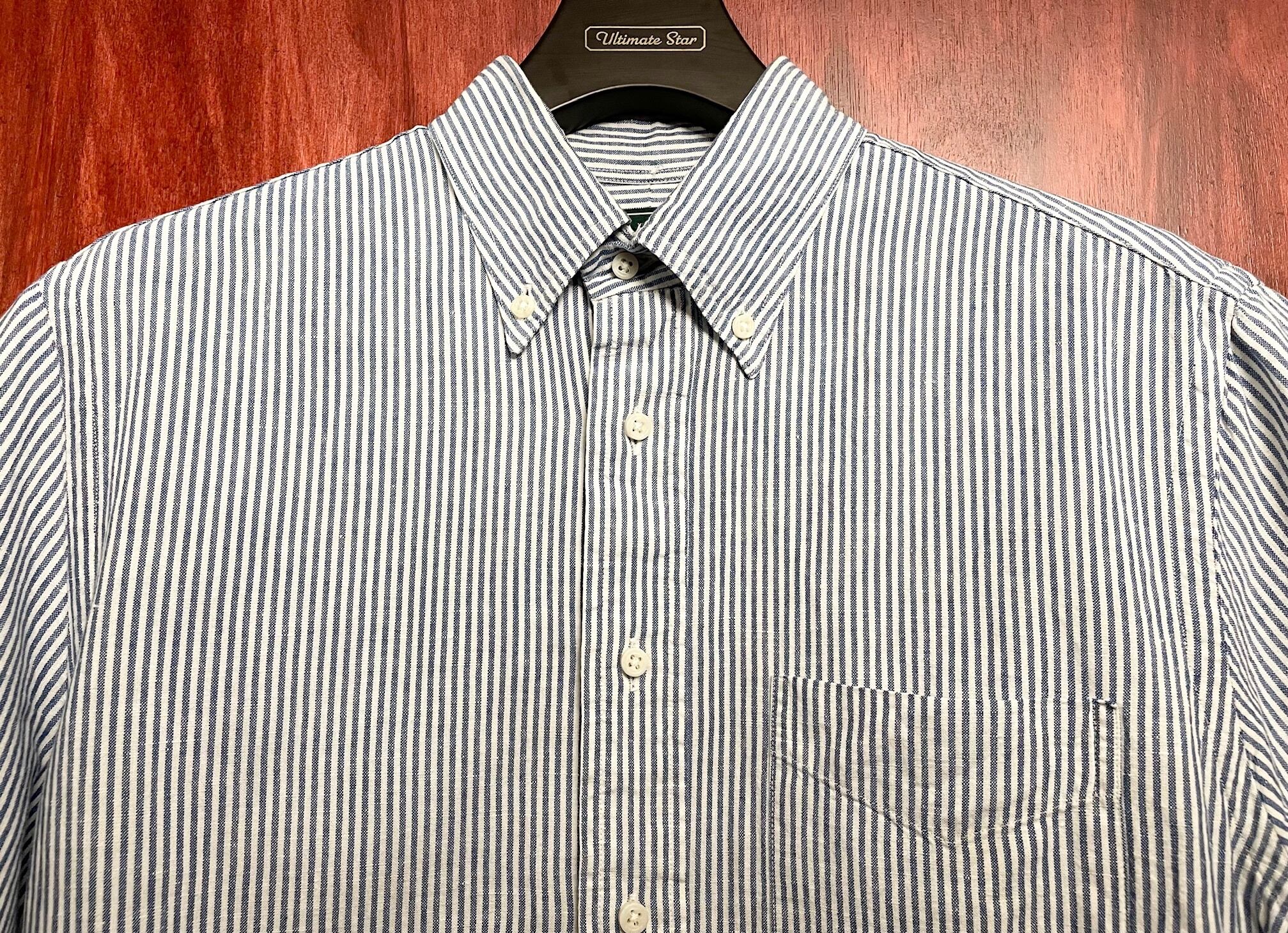 アメリカブランドでお馴染みのヒッコリーストライプ柄のリネンコットン素材を使っており、ギットマンらしいボタンダウン仕様の使い勝手の良いおすすめの一品です。