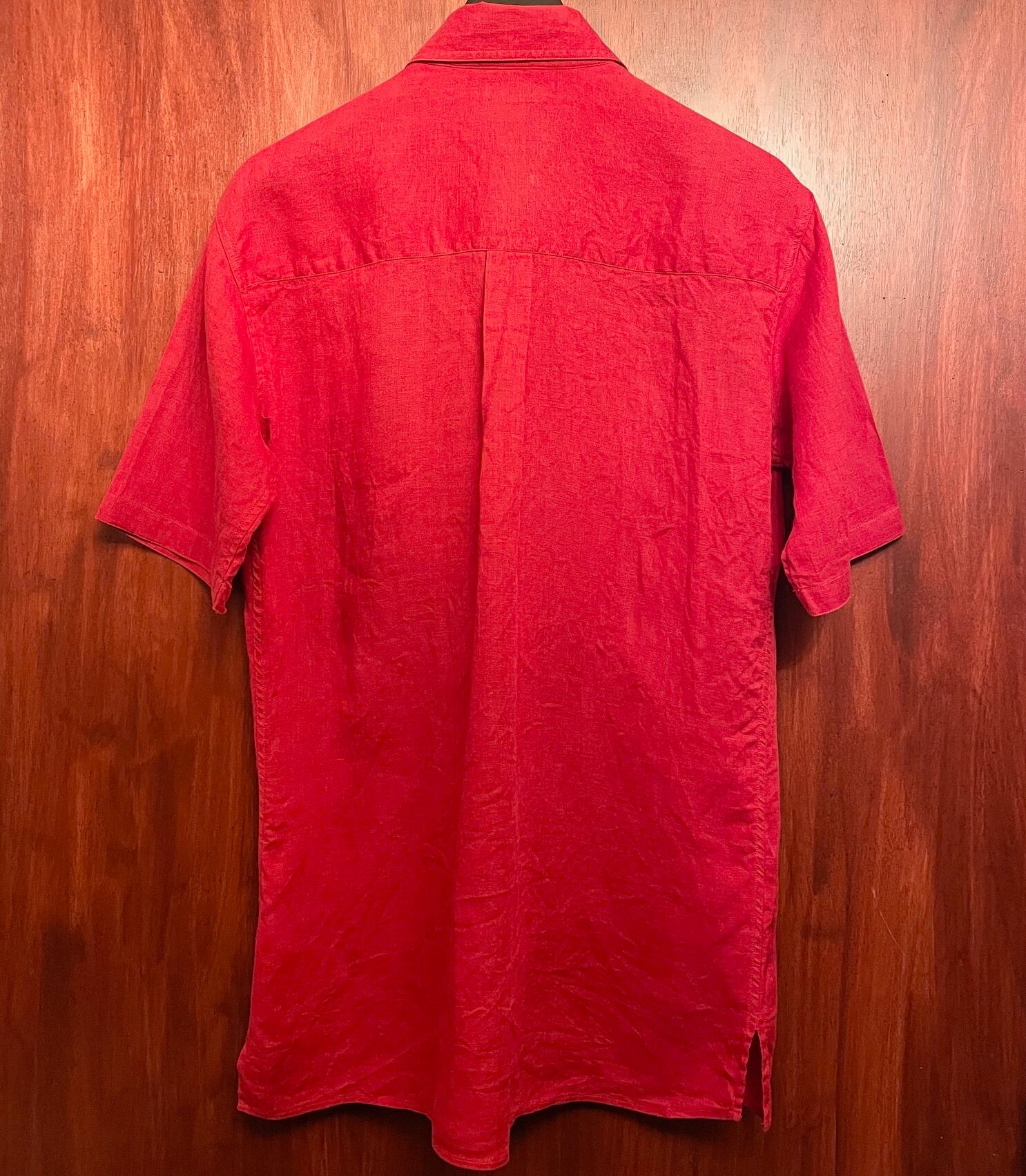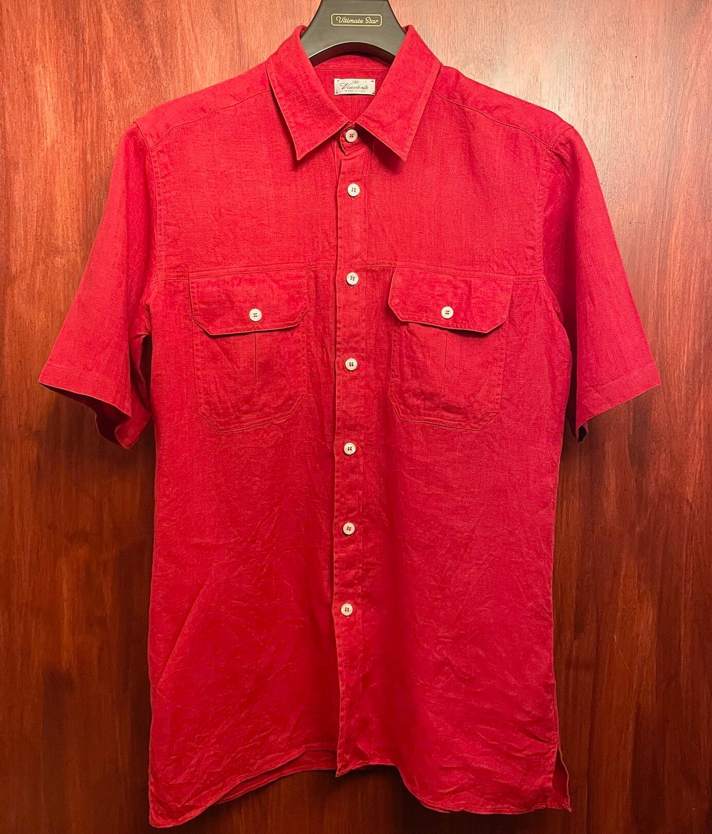 MADE IN ITALY製 Viadeste 半袖リネンシャツ レッド 50サイズ
