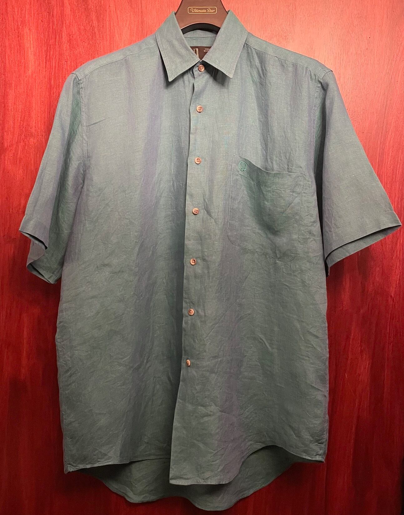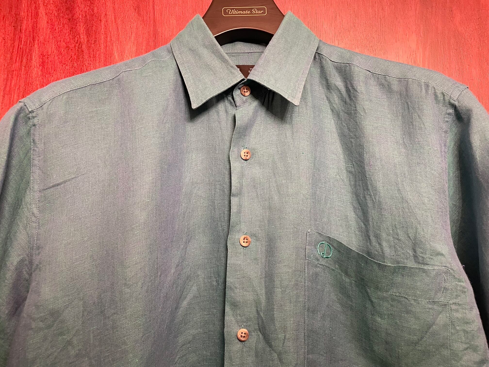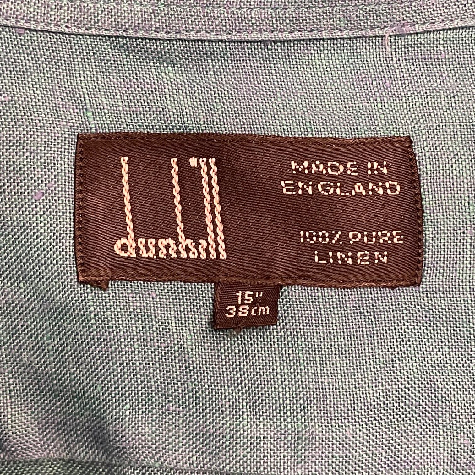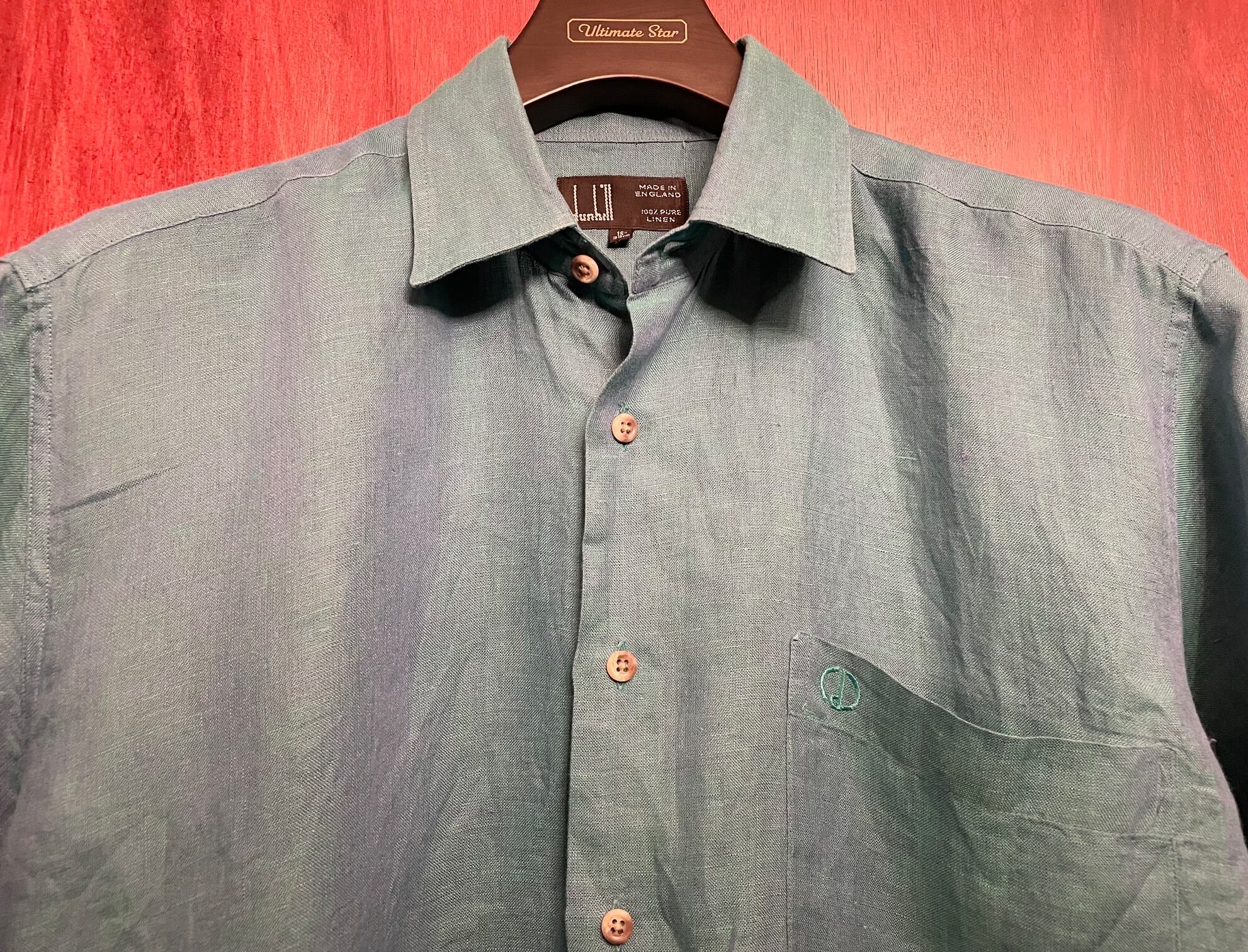 MADE IN ENGLAND製 dunhill 半袖リネンシャツ 玉虫色/ブルーグリーン 15-38サイズ