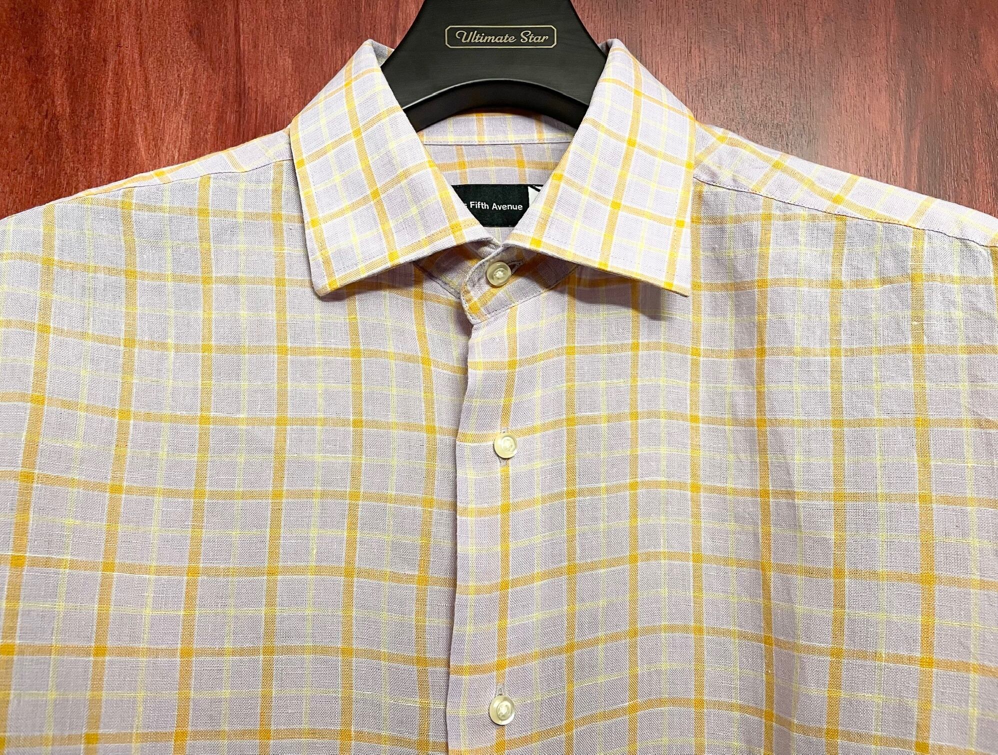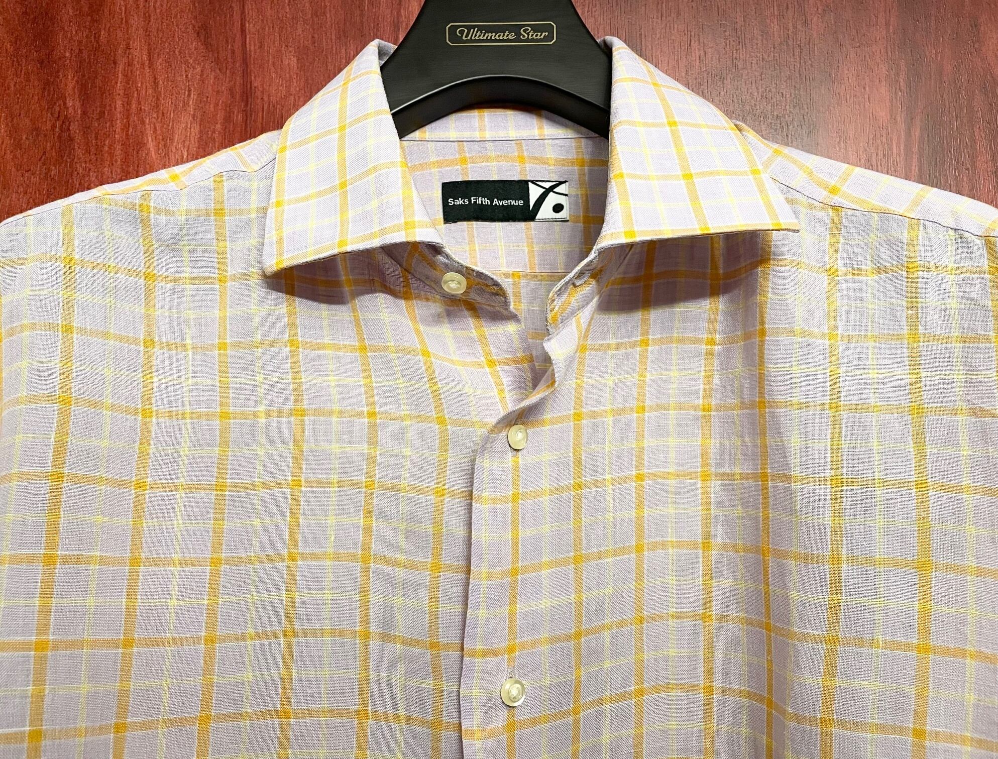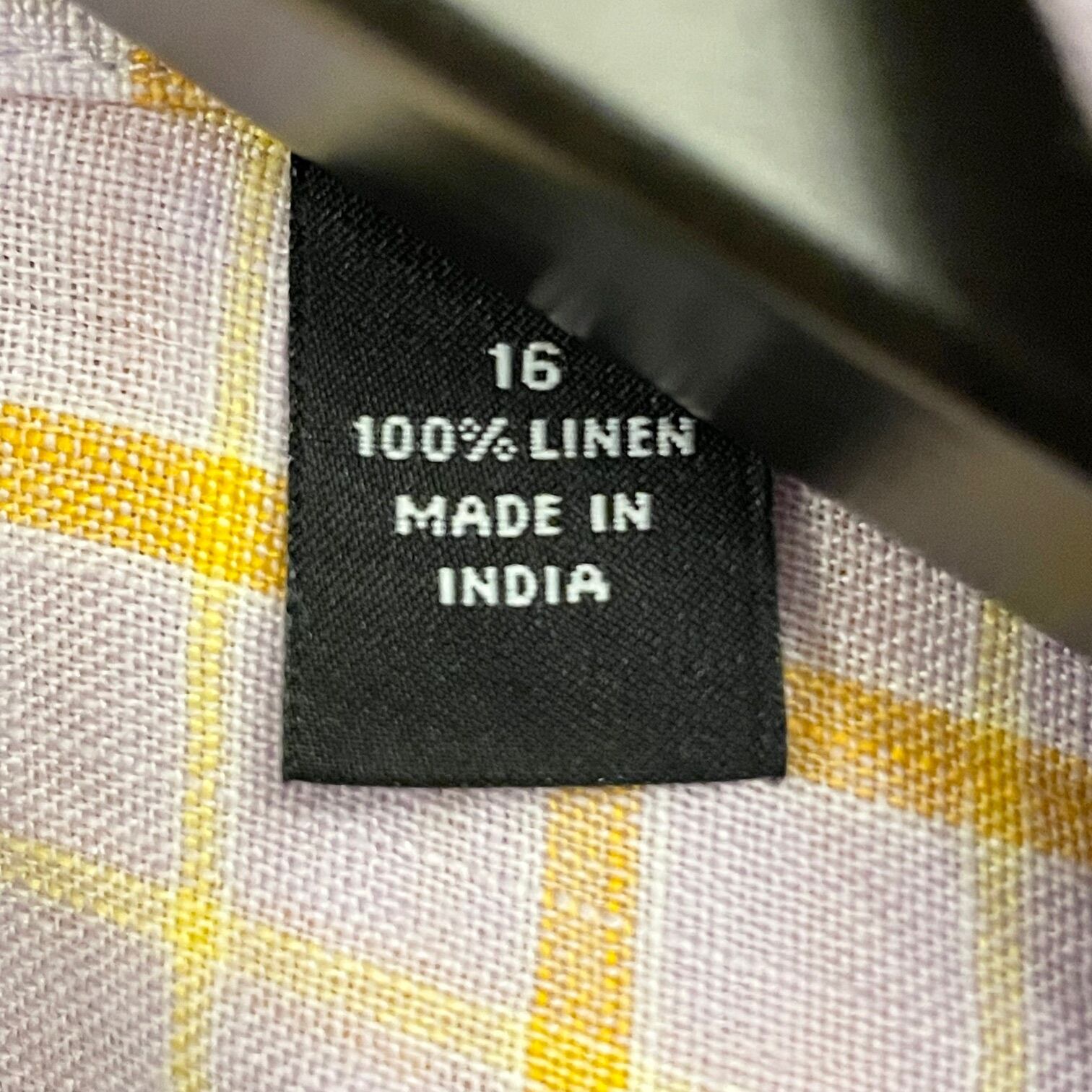 Saks Fifth Avenue チェック柄 長袖リネンシャツ パープル 16サイズ