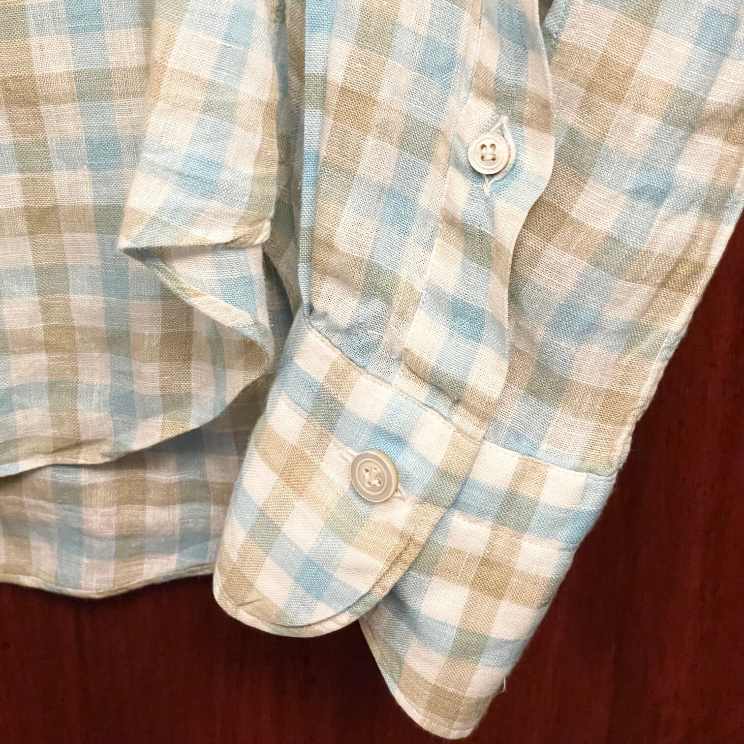 ▲訳あり商品▲ 【BARNEYS NEWYORK 取り扱い】 MADE IN ITALY製 Finamore ギンガムチェック柄 長袖リネンスキッパーシャツ マルチカラー Sサイズ