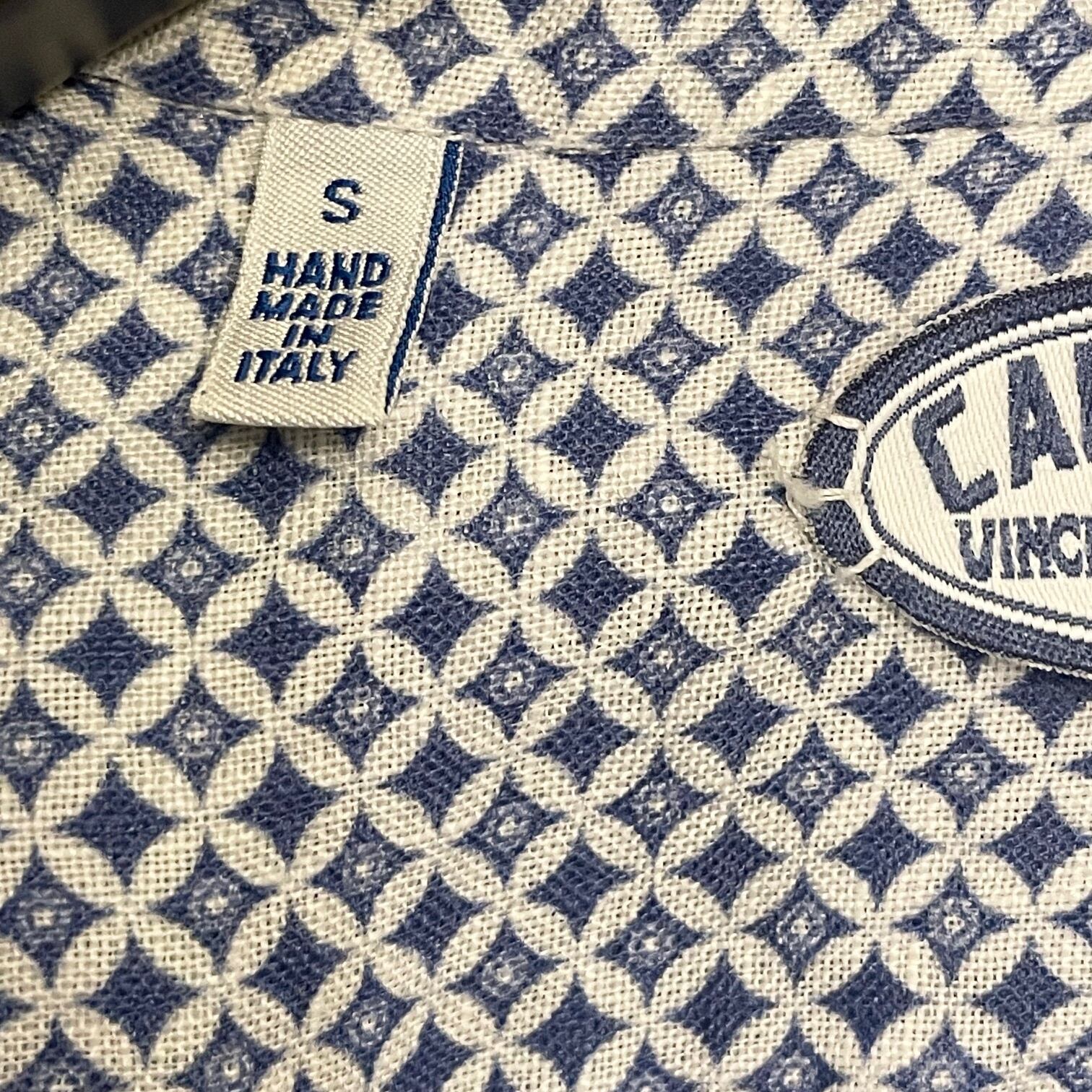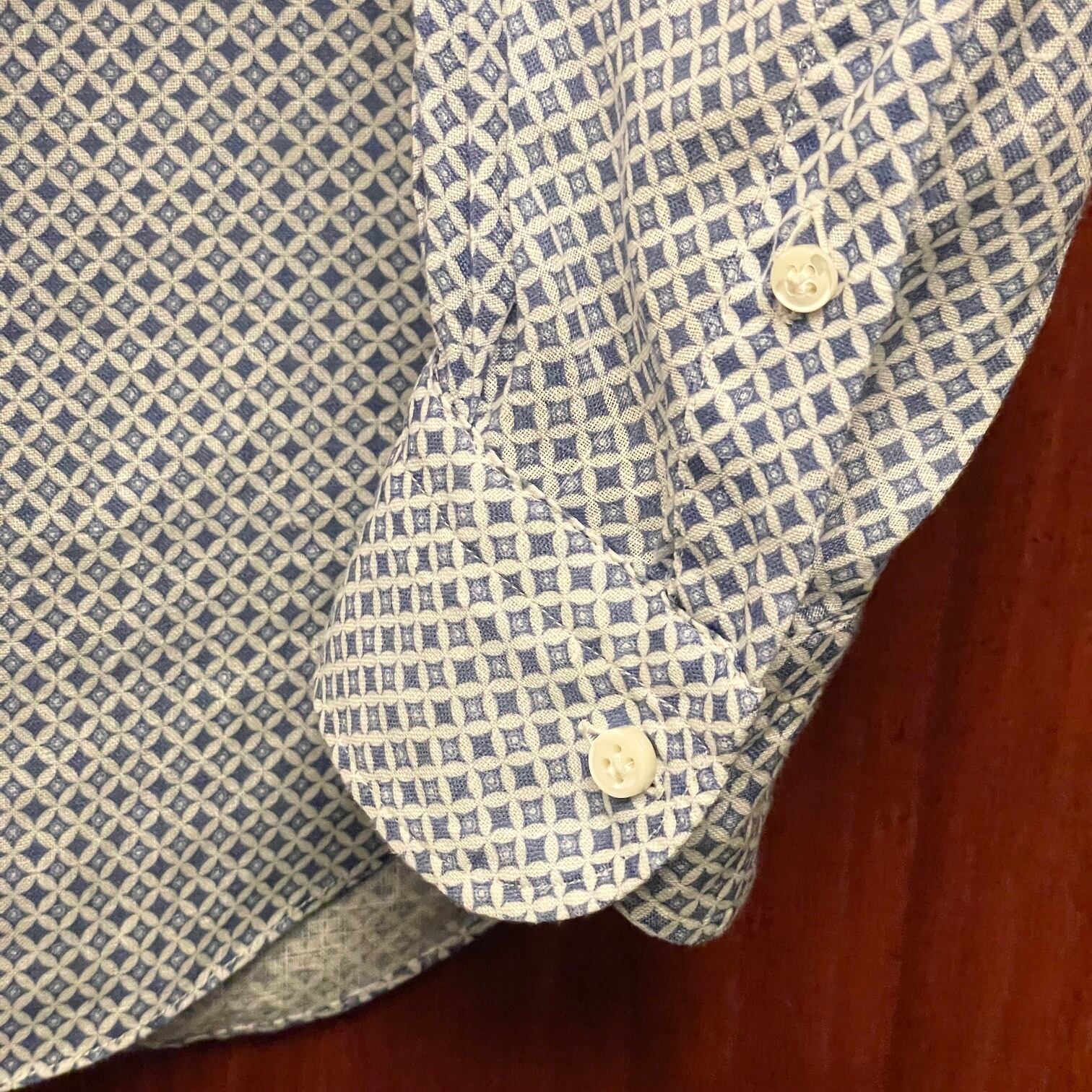 HAND MADE IN ITALY製 CAMICERIA VINCENZO DI RUGGIERO ハンドメイド 総柄 長袖リネンシャツ ホワイト×ブルー Sサイズ