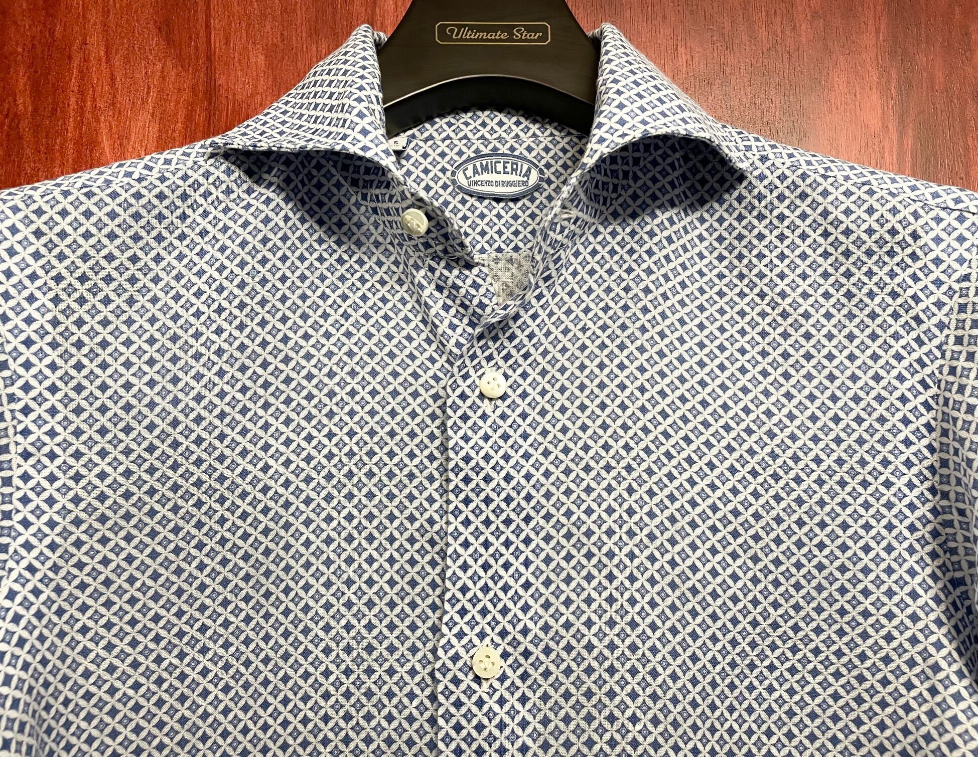 HAND MADE IN ITALY(イタリア製ハンドメイド)で丁寧に作られたシャツは、リネン素材では珍しい総柄のデザインがほどこした上質なリネン素材を使ったオシャレなおすすめの一品です。