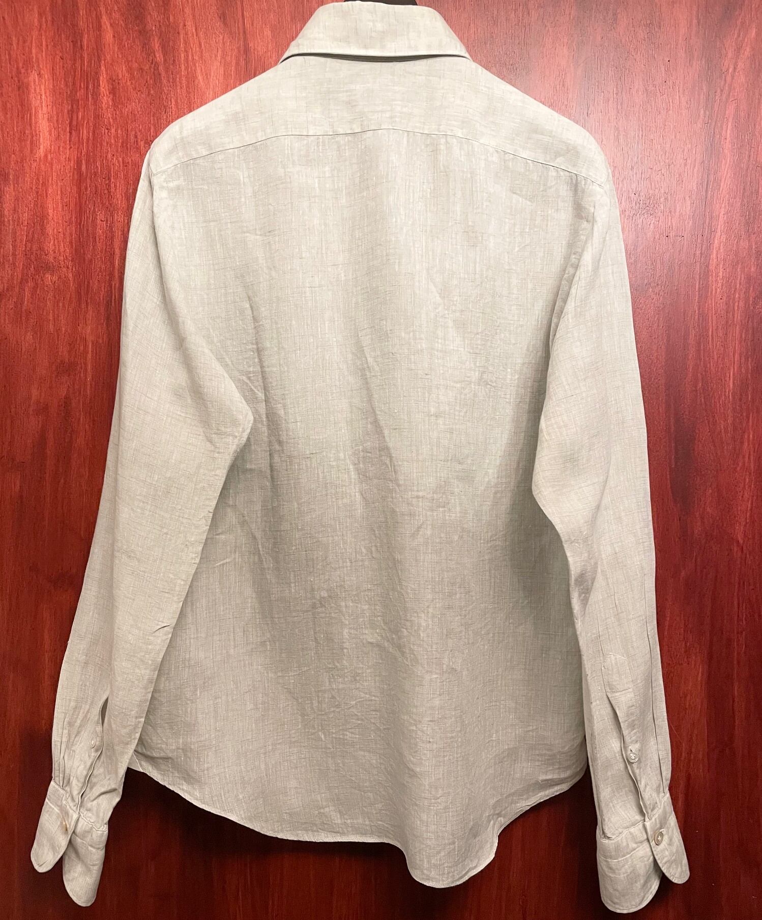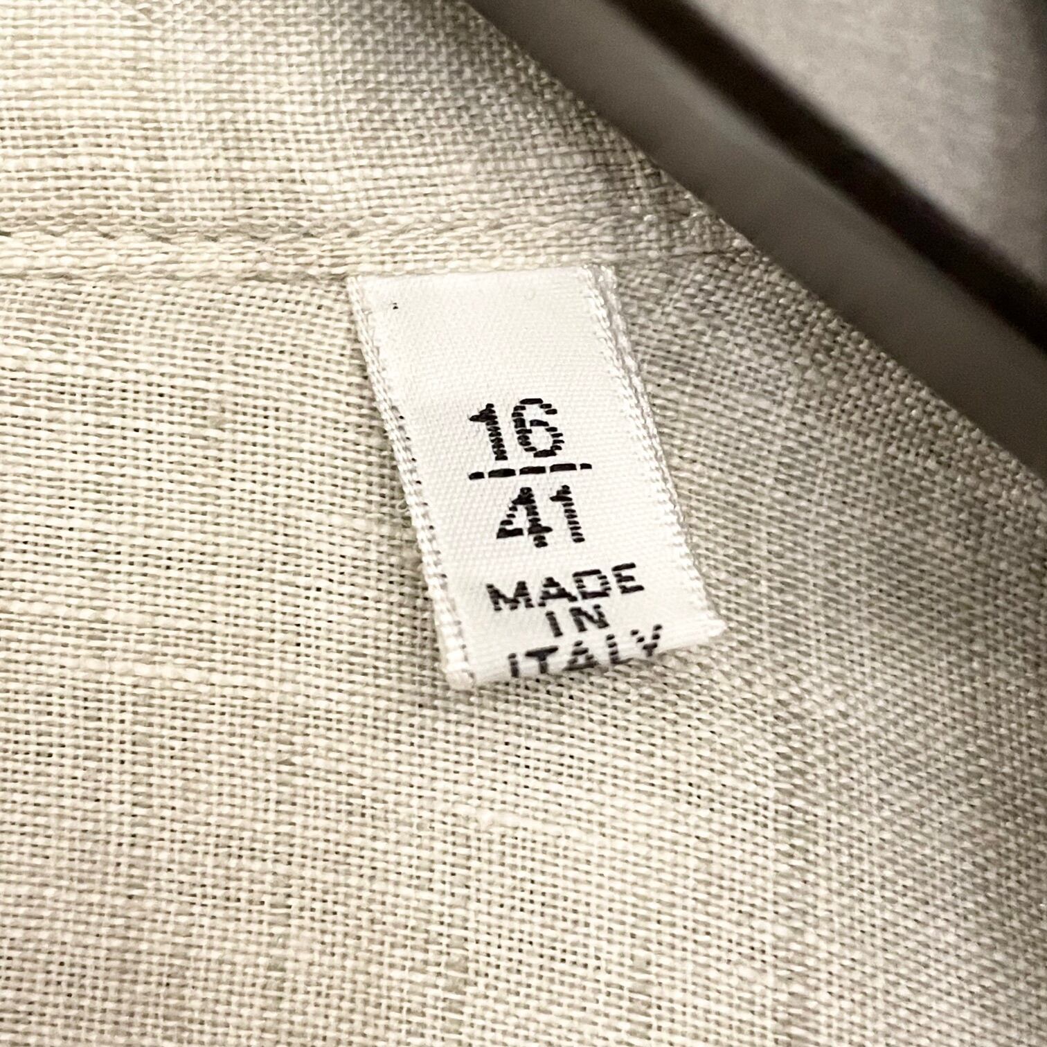 MADE IN ITALY製 Finamore 長袖リネンシャツ グレージュ 41-16サイズ