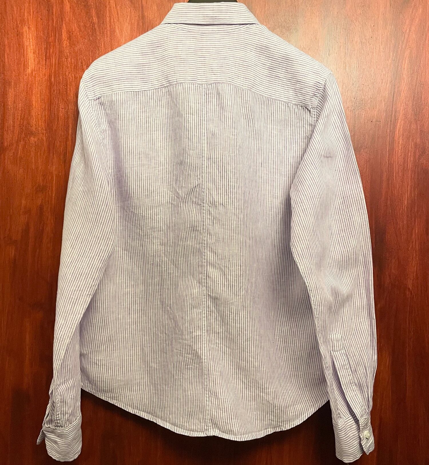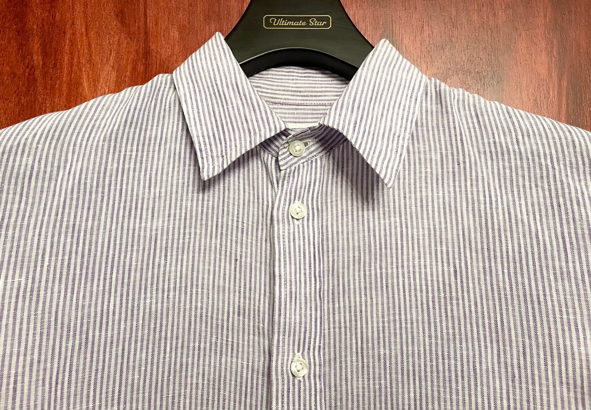 上質なリネン素材を使っており、フランクアンドアイリーンのシャツはスキッパータイプが多いですが、こちらは第一ボタンまで閉めれるタイプでネクタイとも合わせられるので普段使いからビジネスシーンまで幅広く使えるオシャレなおすすめの一品です。