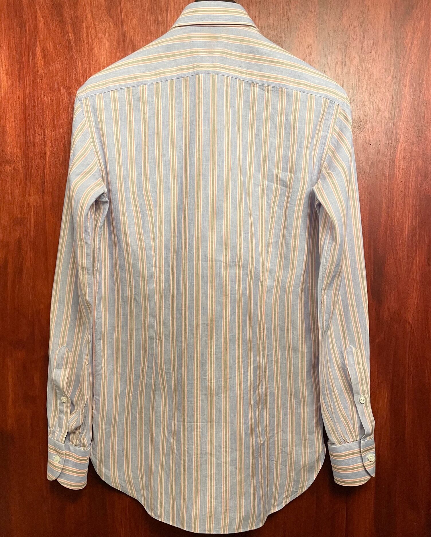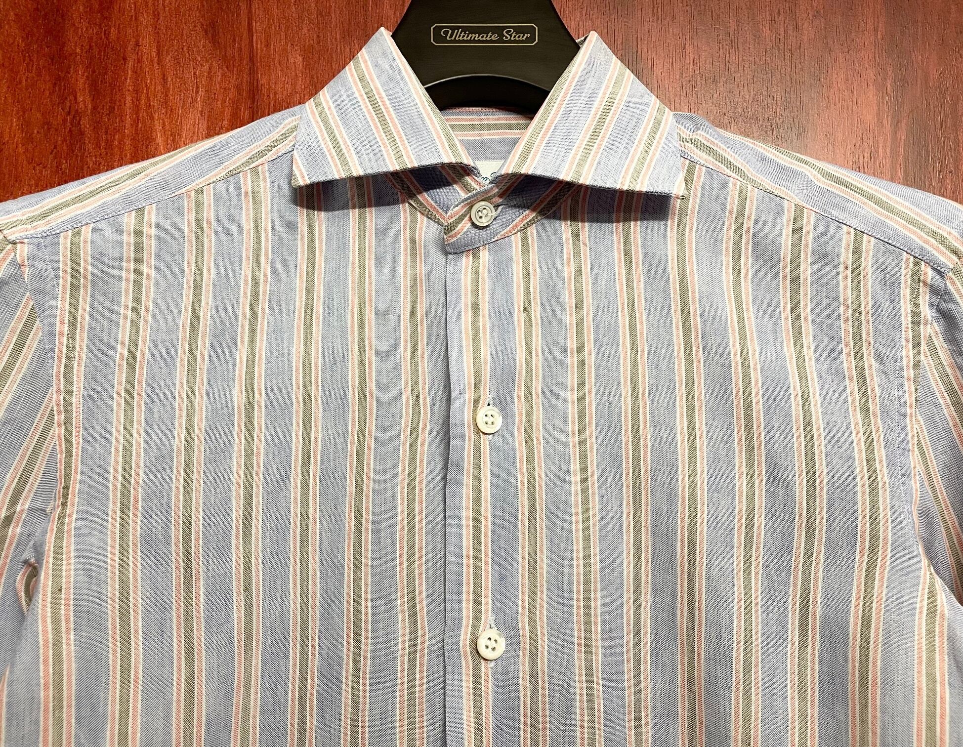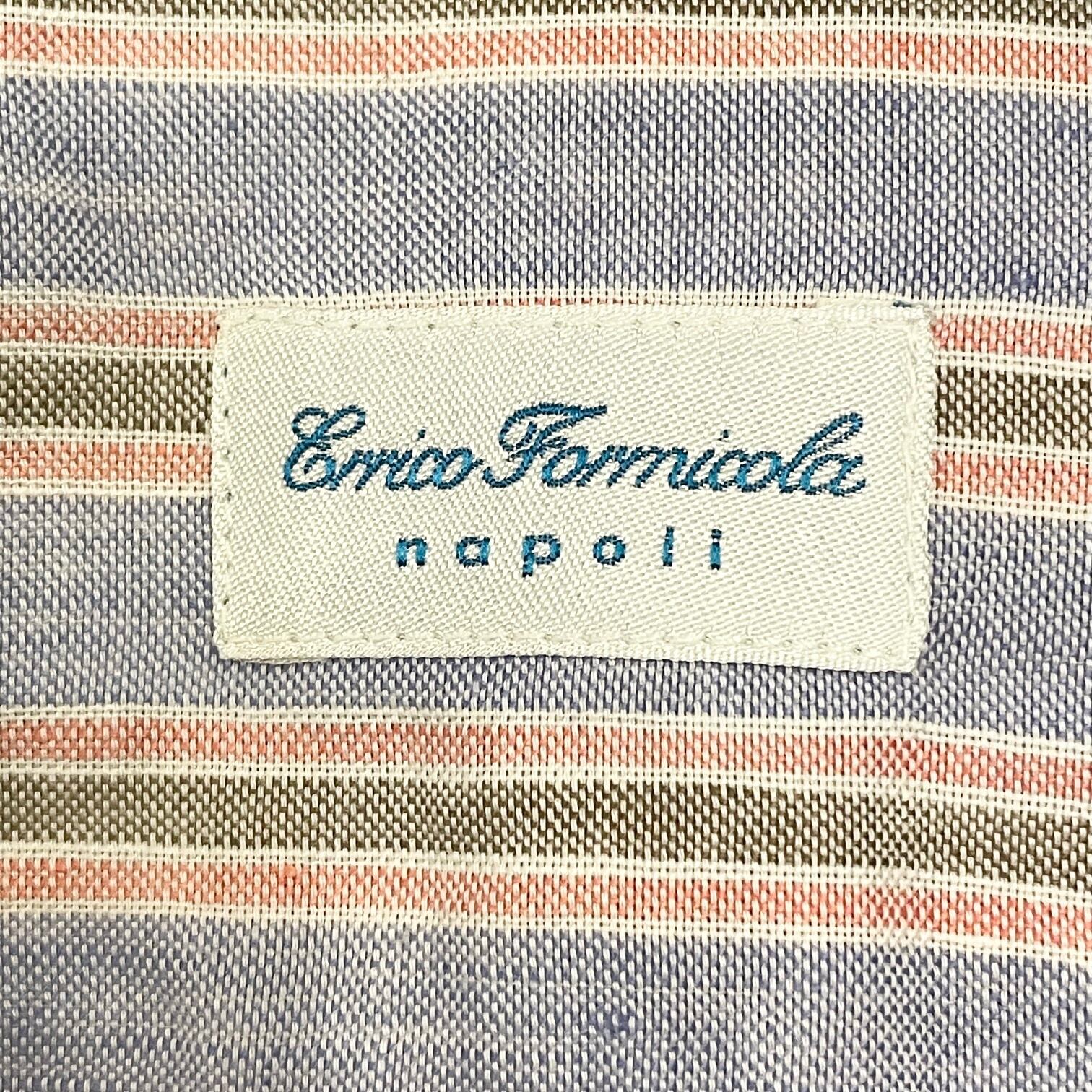 【UNITED ARROWS 取り扱い】 MADE IN ITALY製 Errico Formicola ストライプ柄 長袖リネンコットンシャツ マルチカラー 37-14 1/2サイズ