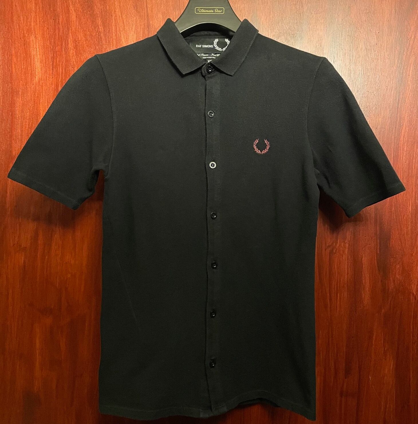 MADE IN PORTUGAL製 FRED PERRY × RAF SIMONS 半袖鹿の子シャツ ブラック XSサイズ