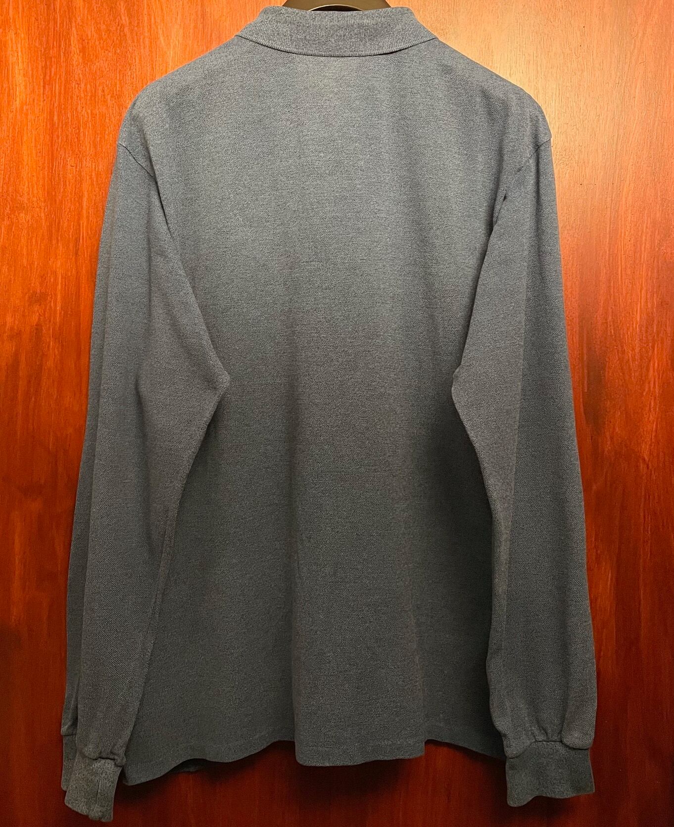 鹿の子素材に左胸に定番のワニマークの入った定番のポロシャツの長袖バージョンで、デニムのようなインディゴカラーとあまり見かけない大きめのサイズ感が希少なおすすめの一品です。