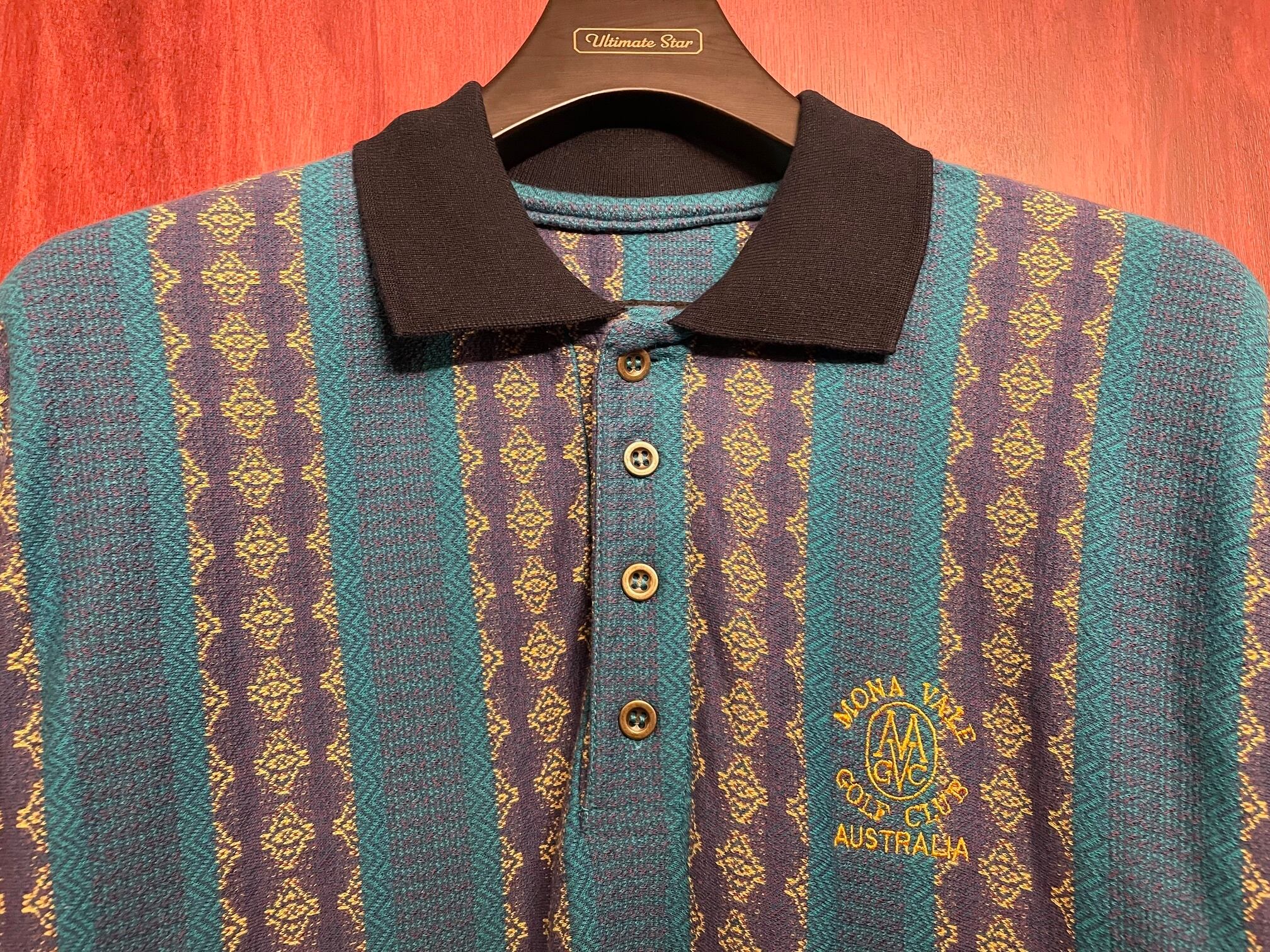 MADE IN AUSTRALIA製 TOURNAMENT COLLECTION 総柄ニットポロシャツ マルチカラー Mサイズ