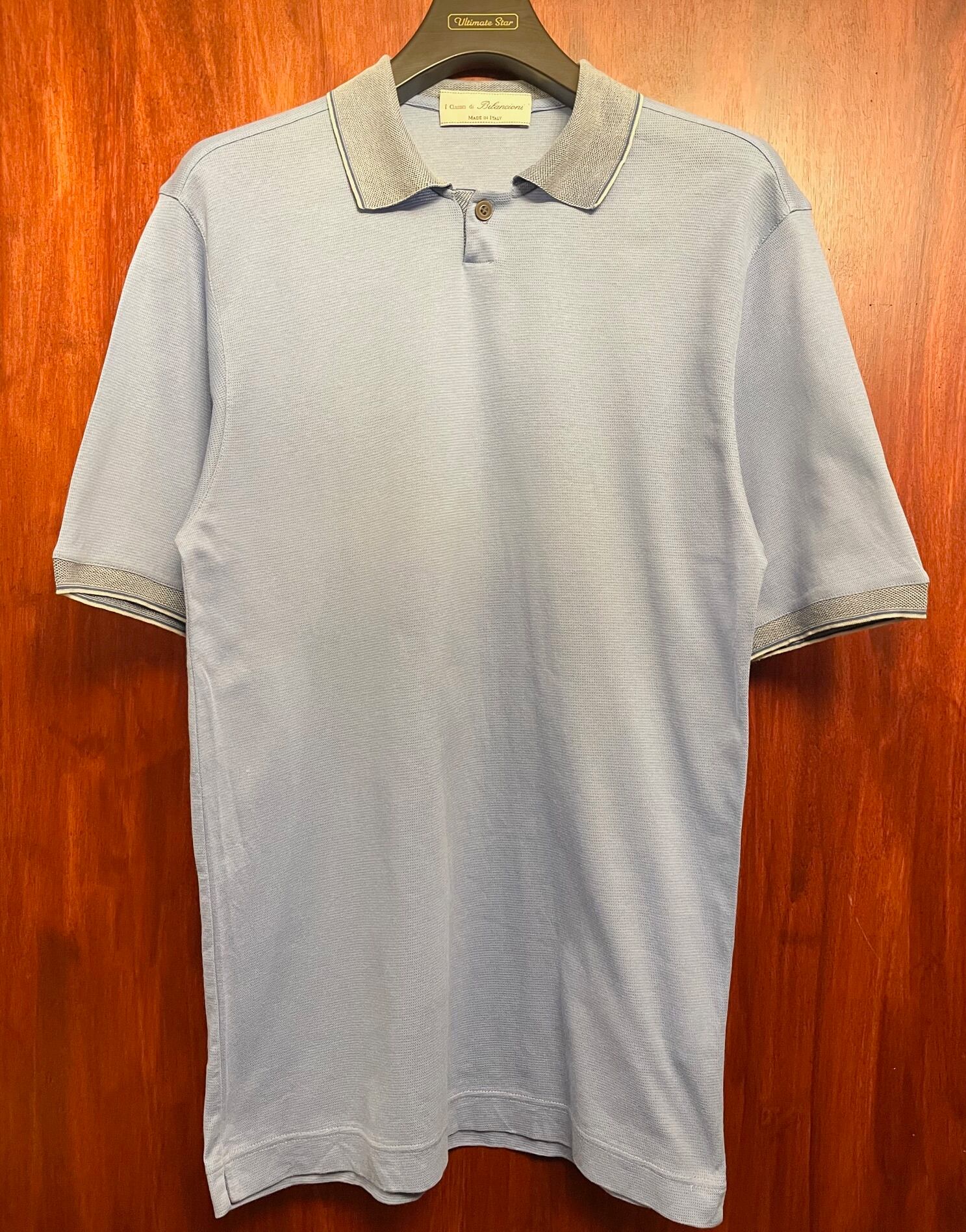 MADE IN ITALY製 Classici di Bilancioni 半袖ニットポロシャツ サックスブルー 48サイズ