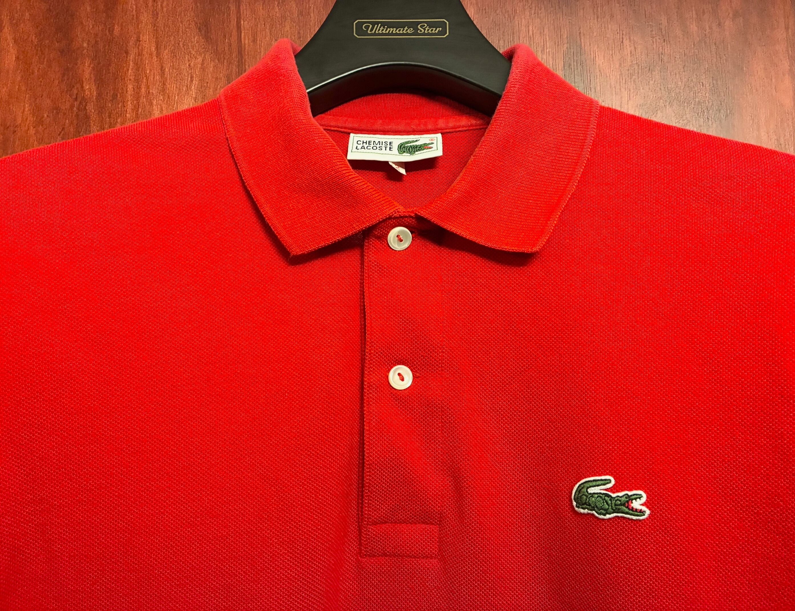 希少 MADE IN JAPAN製 80s 大沢商会 CHEMISE LACOSTE 半袖鹿の子ポロシャツ レッド 2サイズ