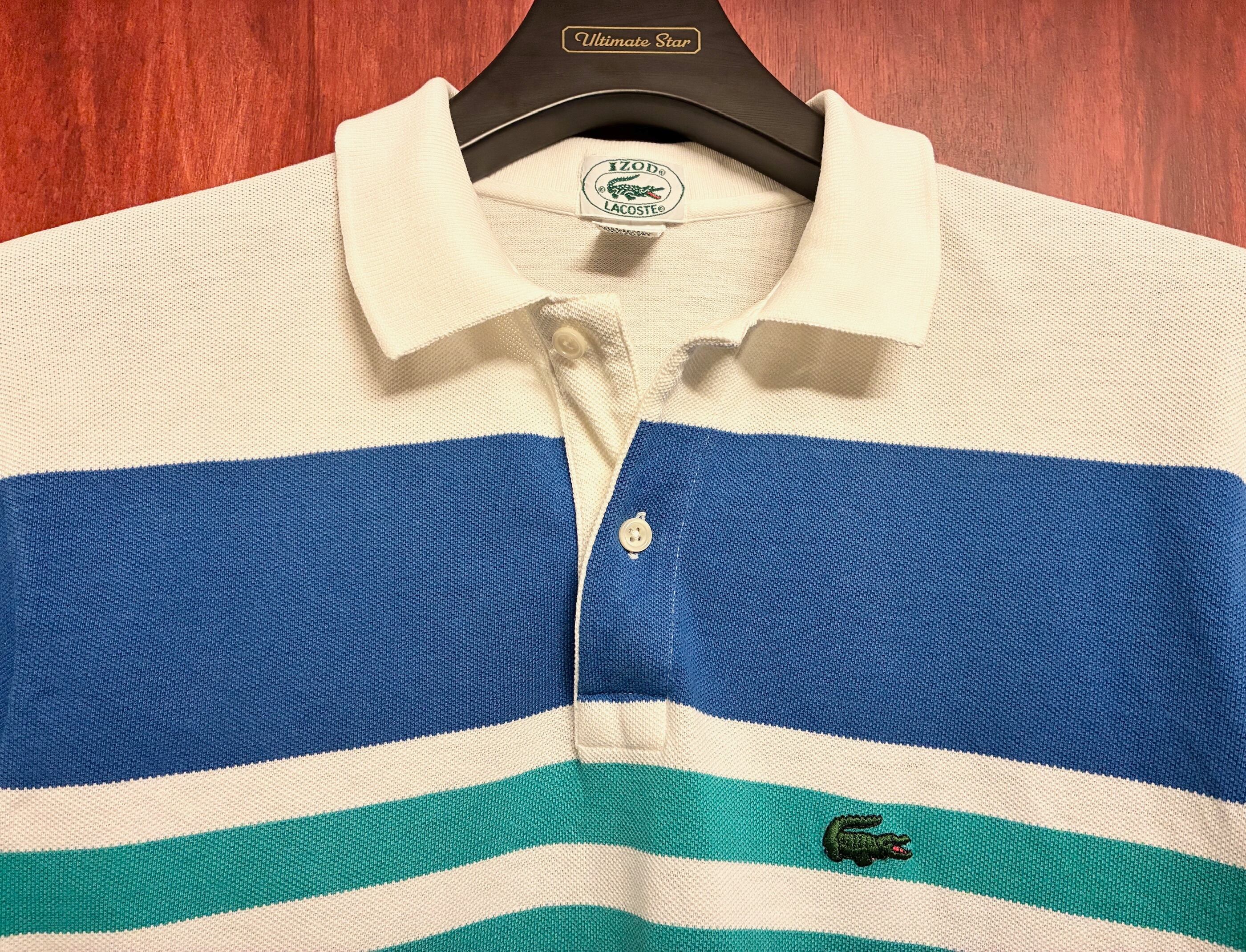 MADE IN USA製 80s IZOD LACOSTE ボーダー柄 半袖鹿の子ポロシャツ マルチカラー Lサイズ