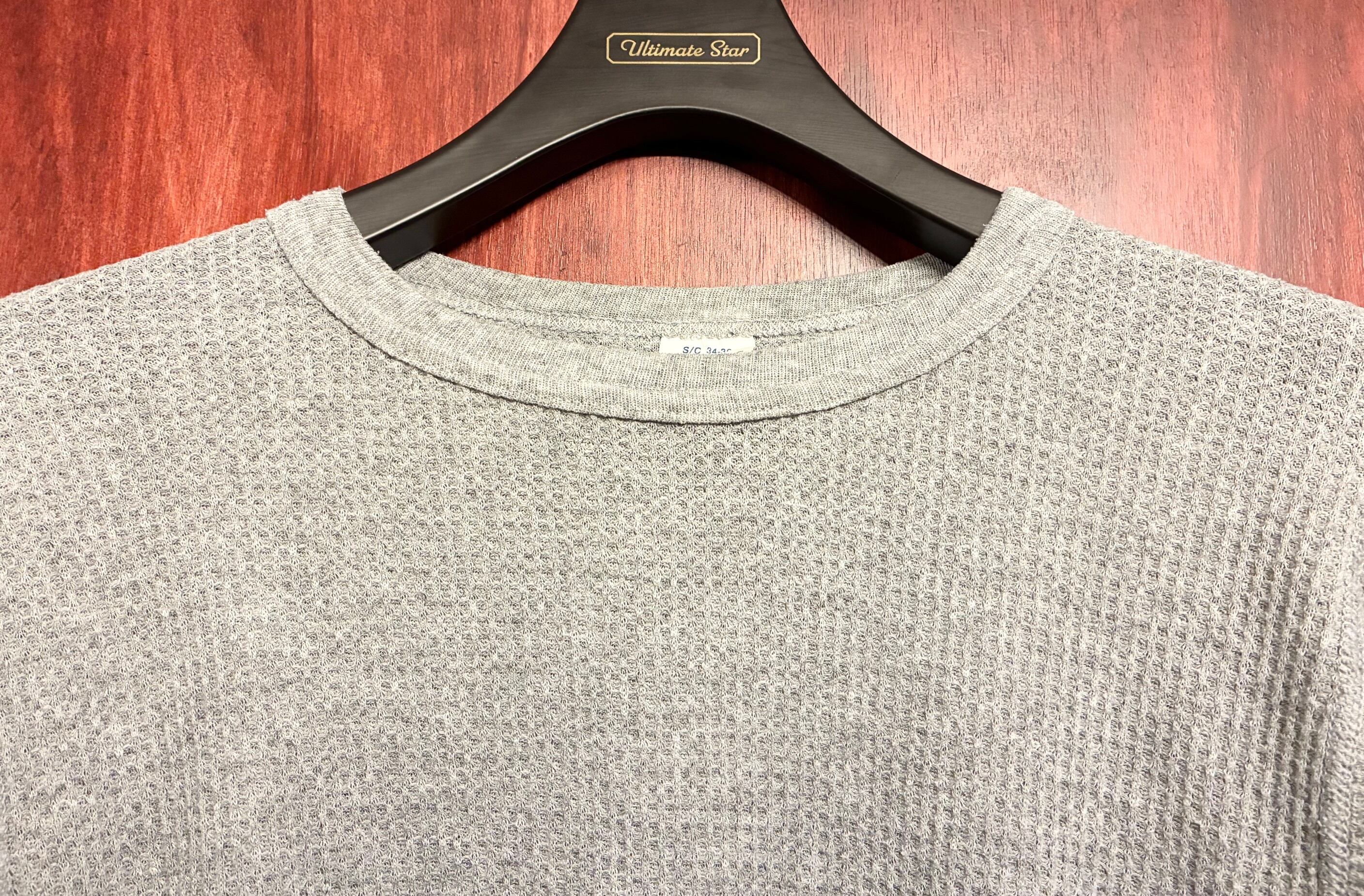 サーマルとは、「ワッフル生地」や「ハニカム生地」といった、独特な凹凸のある生地を用いたカットソーのことで、「熱の、温度の」などを意味する「Thermal」が語源となっている通り、その凹凸が空気の層を作り、保温性を高めてくれる点が特徴です。
