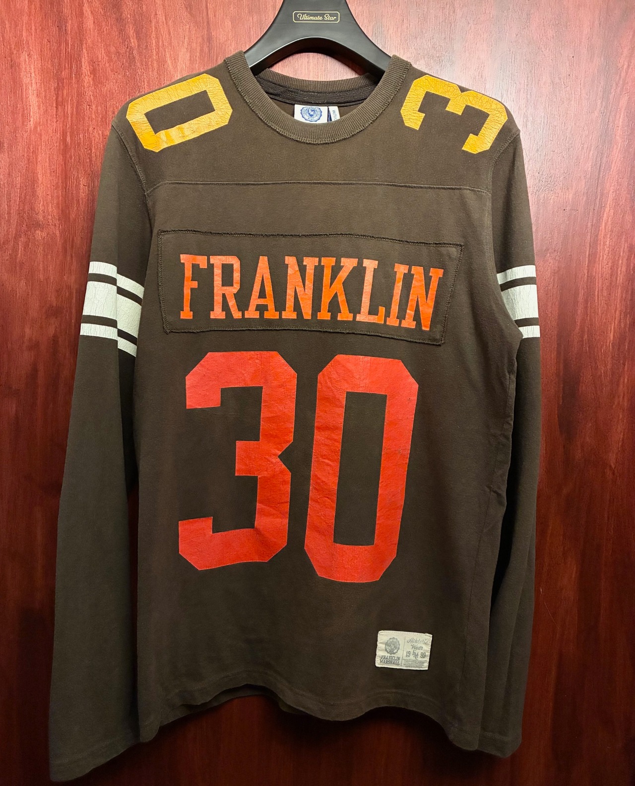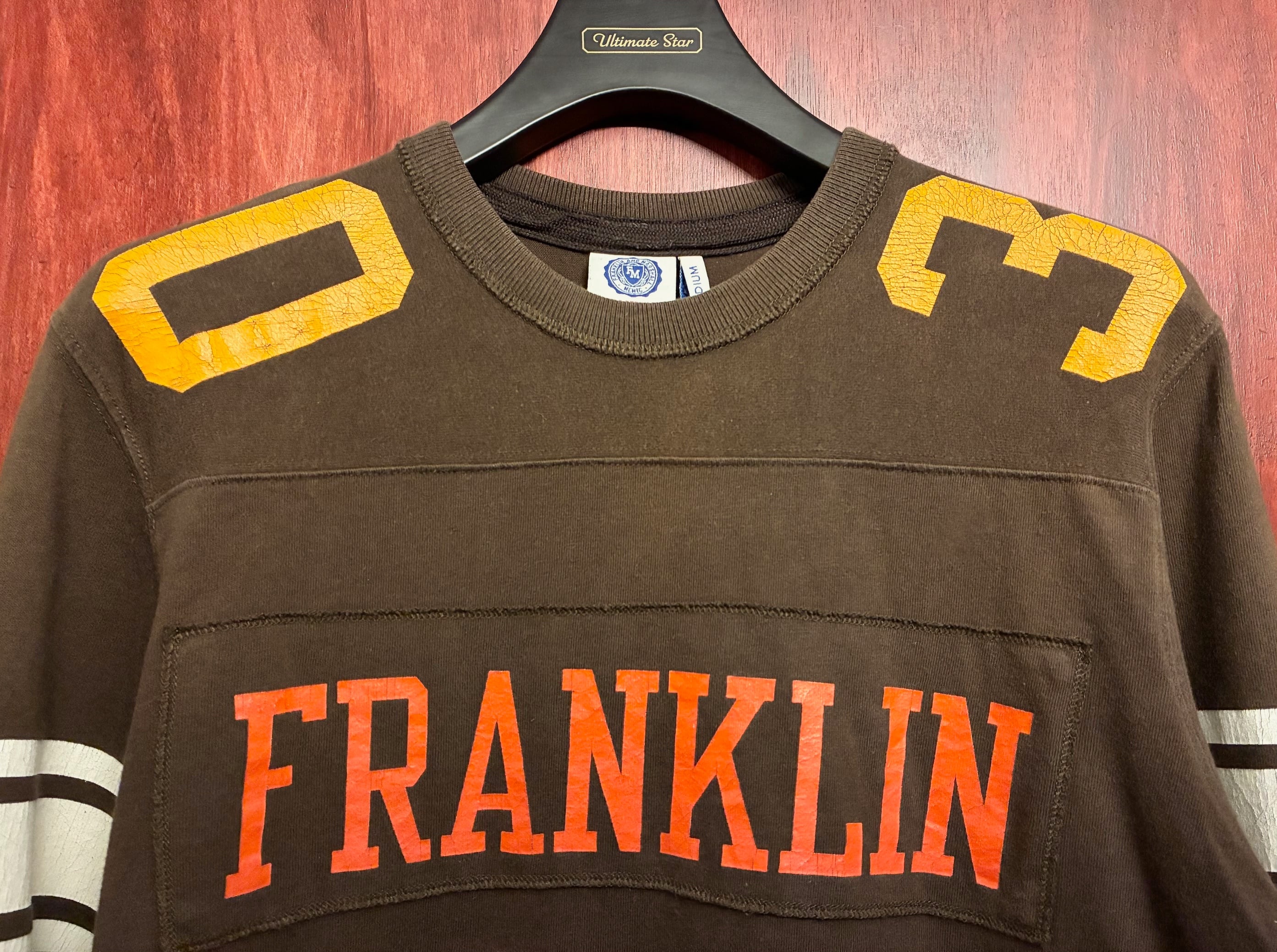 MADE IN ITALY製 FRANKLIN MARSHALL フットボールジャージデザインプリント 長袖Tシャツ ブラウン Mサイズ