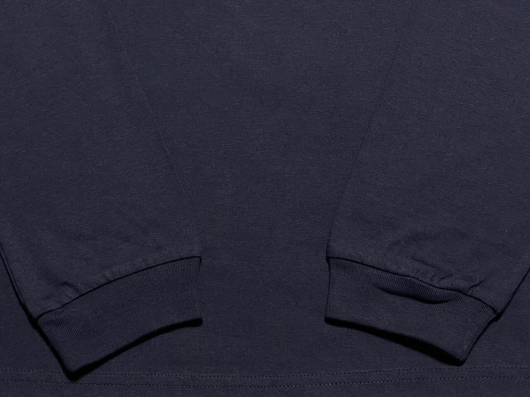 首リブは着用しても伸びにくい仕様の二本針縫製になっており、上質なオーガニックコットンを100%使った着心地の良さと高級感のあるゴールドのオリジナルロゴが左胸に刺繍されており、内タグはおなじみのブランドタグが付いただけのシンプルなデザインなので1着あると重宝する使い勝手の良いおすすめの一品です。
