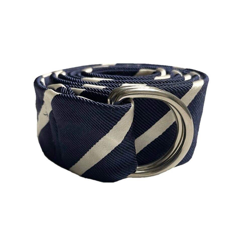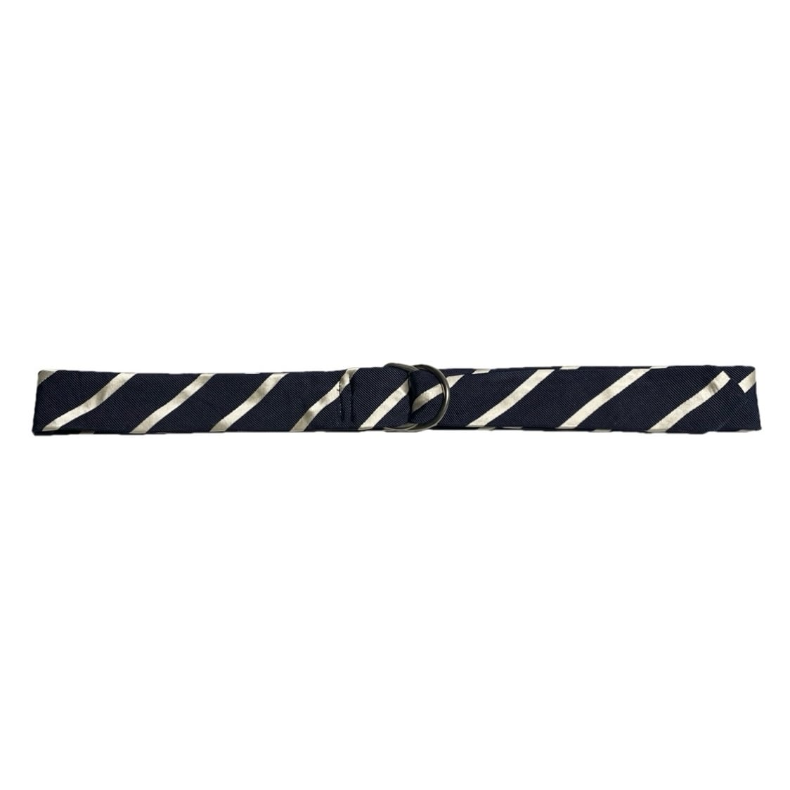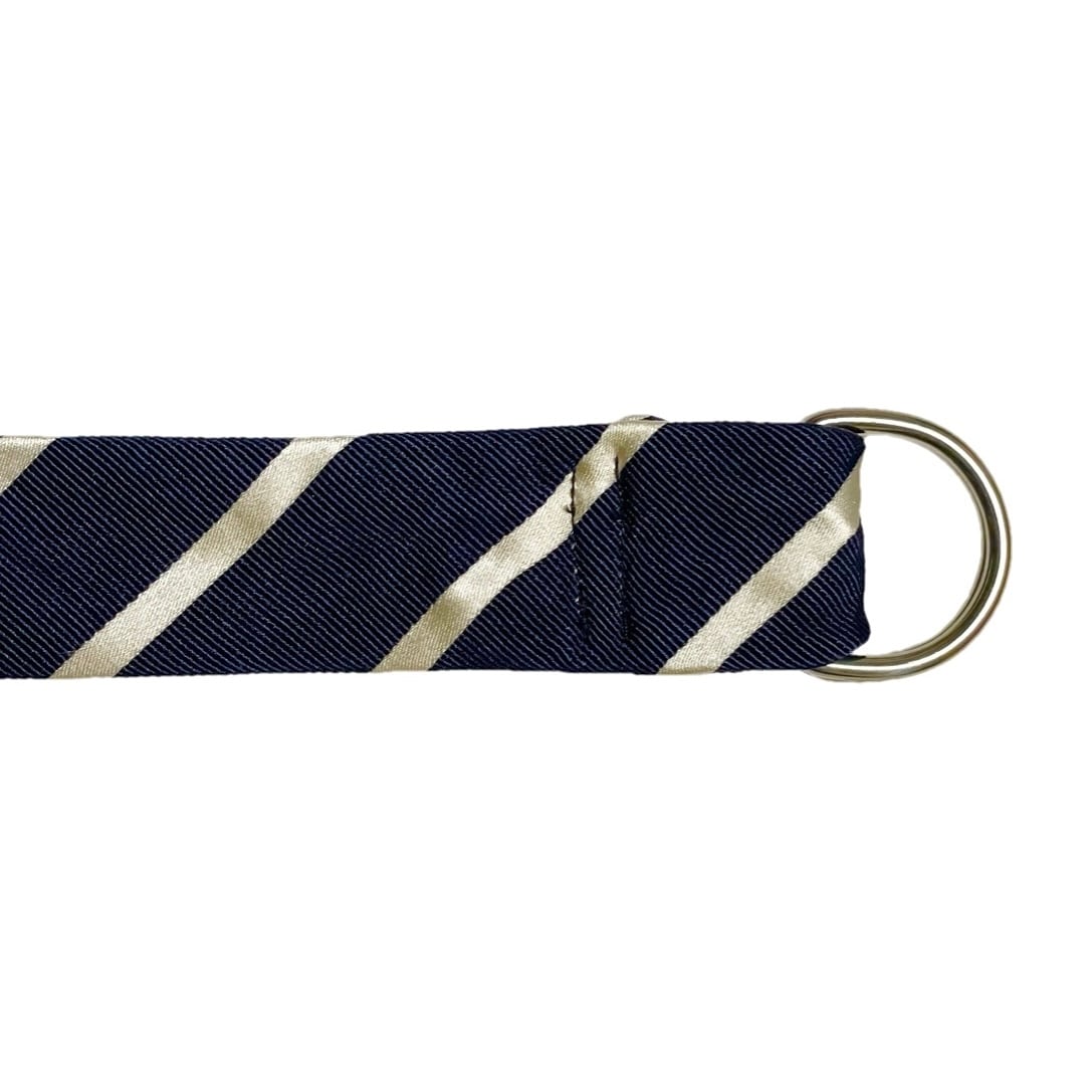 MADE IN ITALY製 Altea シルク100% ダブルリングベルト ネイビー×ホワイト Fサイズ