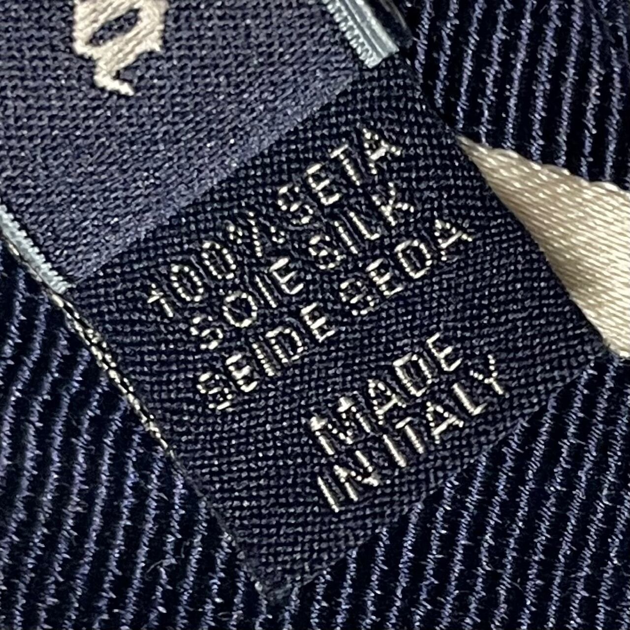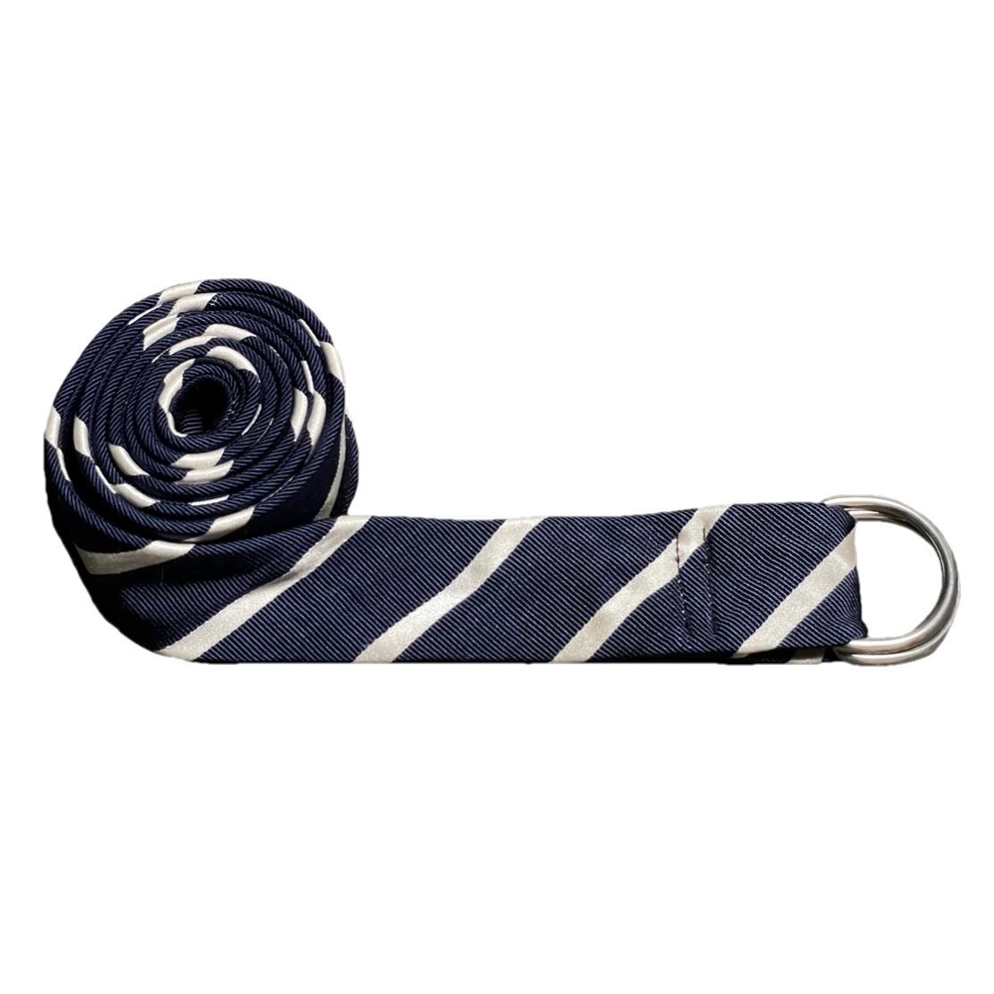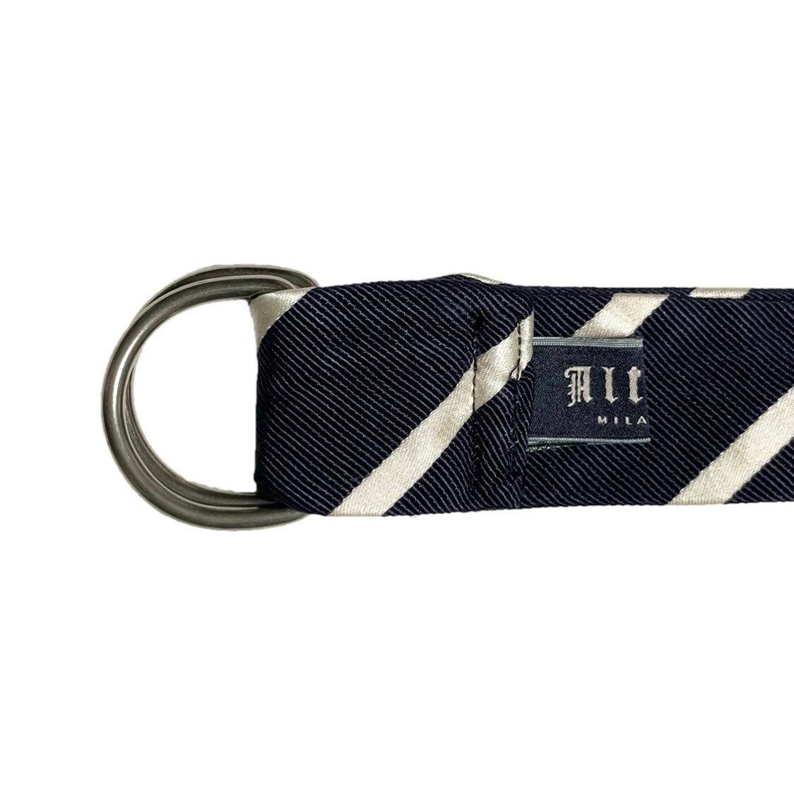 MADE IN ITALY製 Altea シルク100% ダブルリングベルト ネイビー×ホワイト Fサイズ