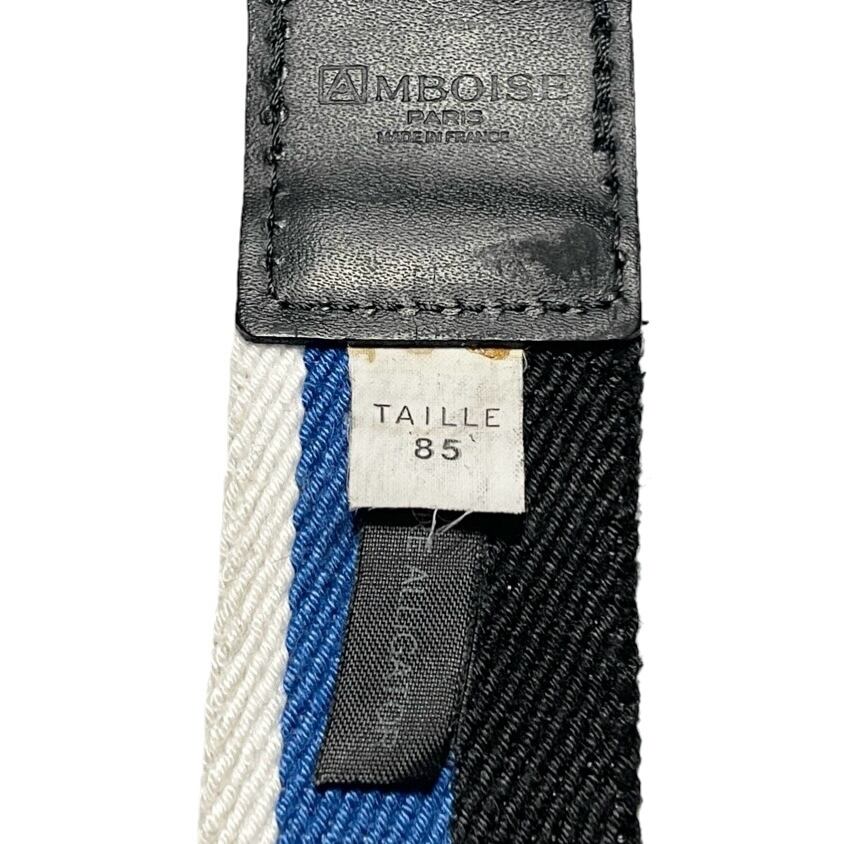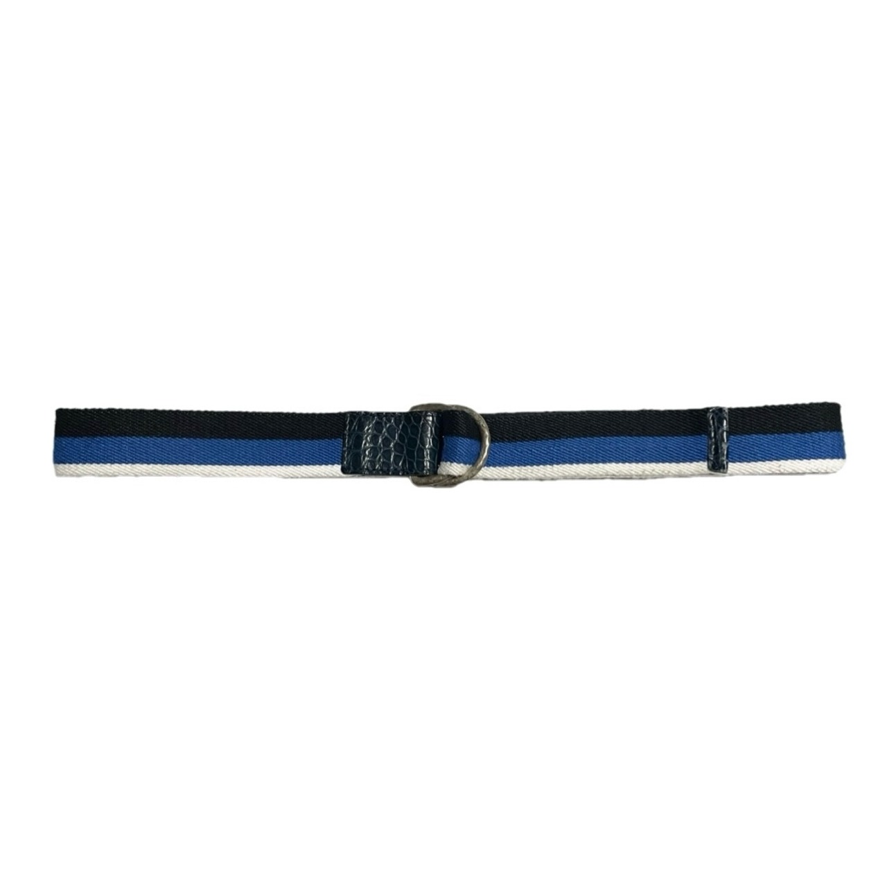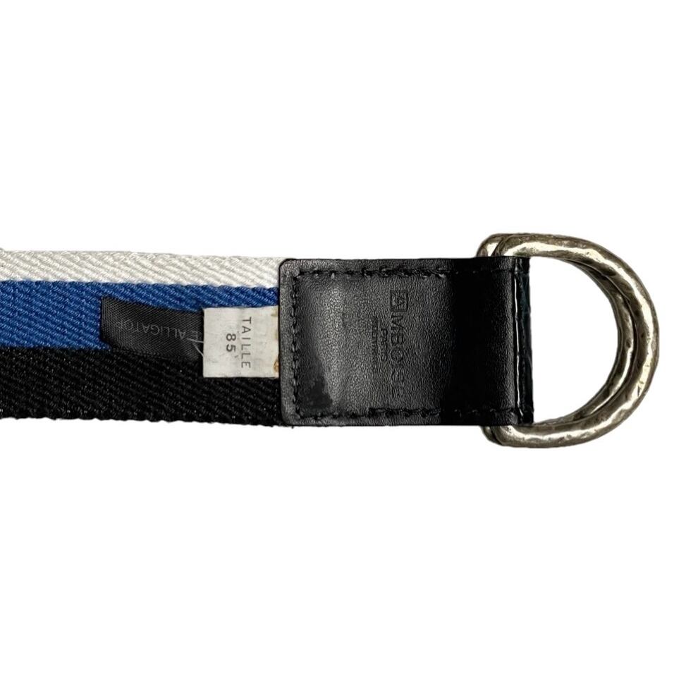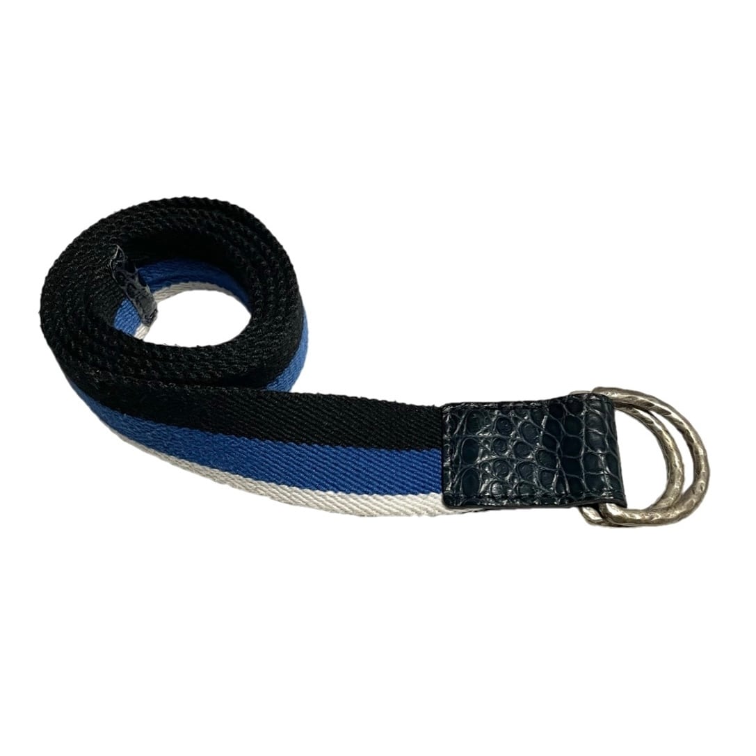 MADE IN FRANCE製 AMBOISE アリゲーターレザー ダブルリングベルト ブラック×ブルー×ホワイト W85サイズ