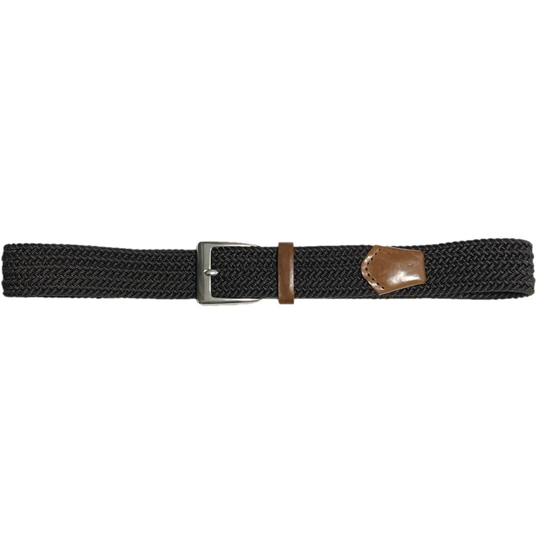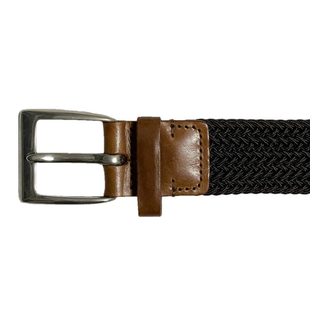 バックル部分と端部分がレザーになっており、中がニット素材のゴム仕様になっているので、収縮性があるので着用していてもストレスフリーな着用感で、編み込み部分にベルトピンを通して自分のジャストなウエストで着用出来るので、通常のベルトのようにベルト穴の調節などを気にせず使える使い勝手の良いおすすめの一品です。
