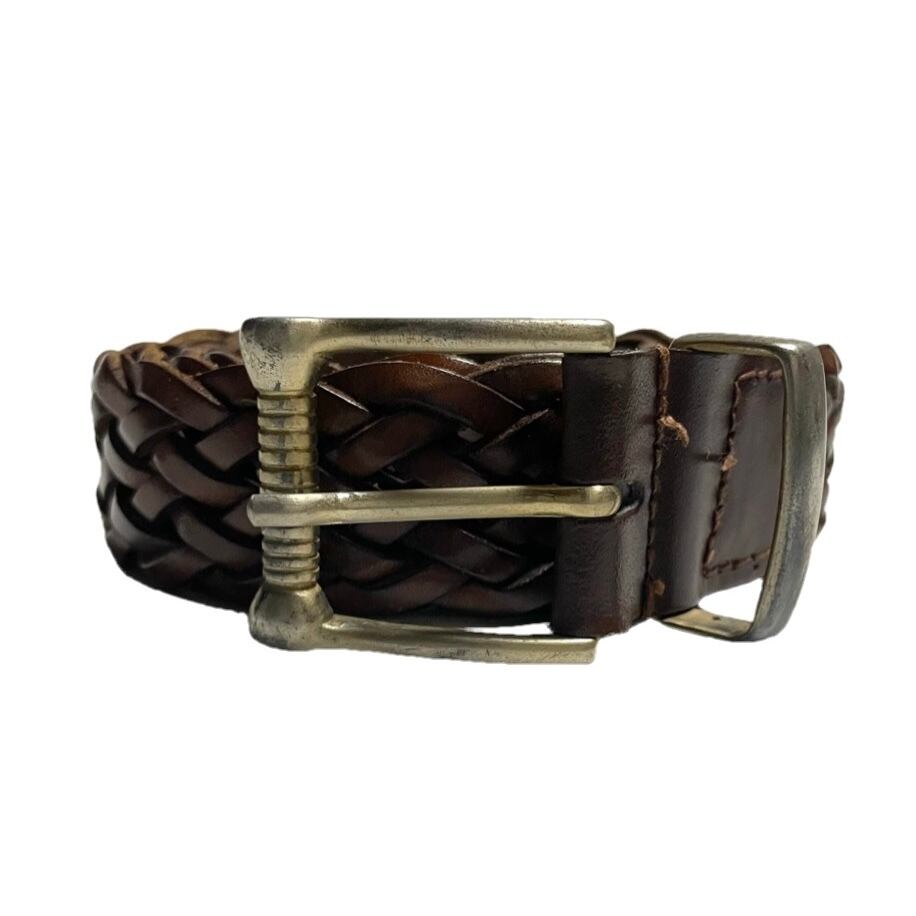 MADE IN ITALY製 Stefano Vernizzi Parma レザー編み込みベルト ブラウン Fサイズ