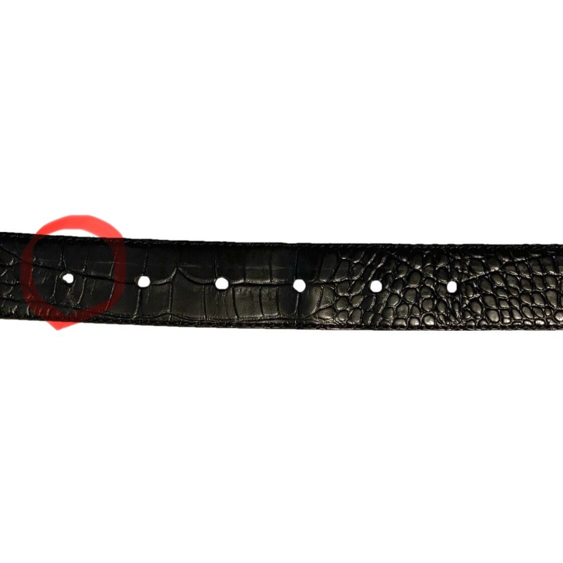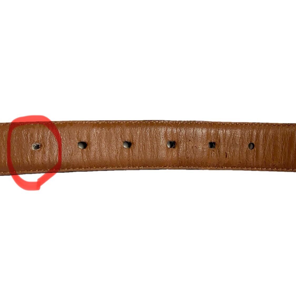 バックル付近に赤い汚れと表からはあまり分かりませんが、ベルト穴を1個追加してある為、お求めやすい価格での販売となります。