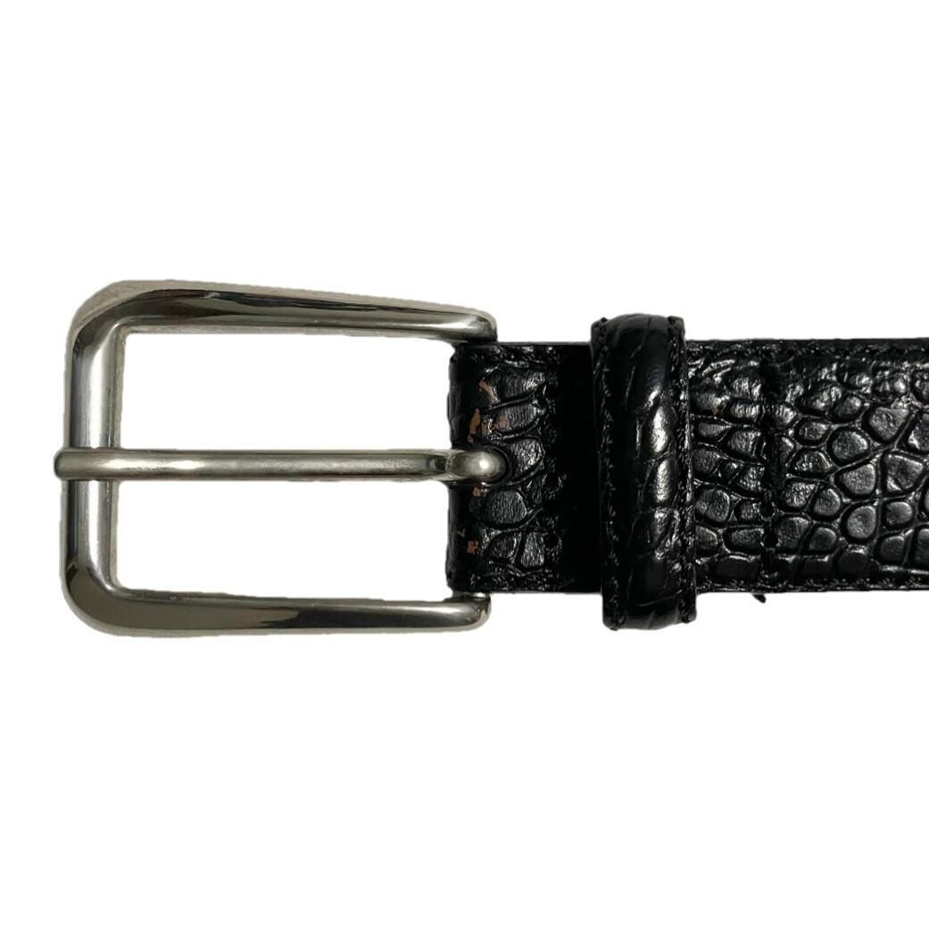 MADE IN ITALY製 BROOKS BROTHERS 346 型押しレザーベルト ブラック 34/W85サイズ