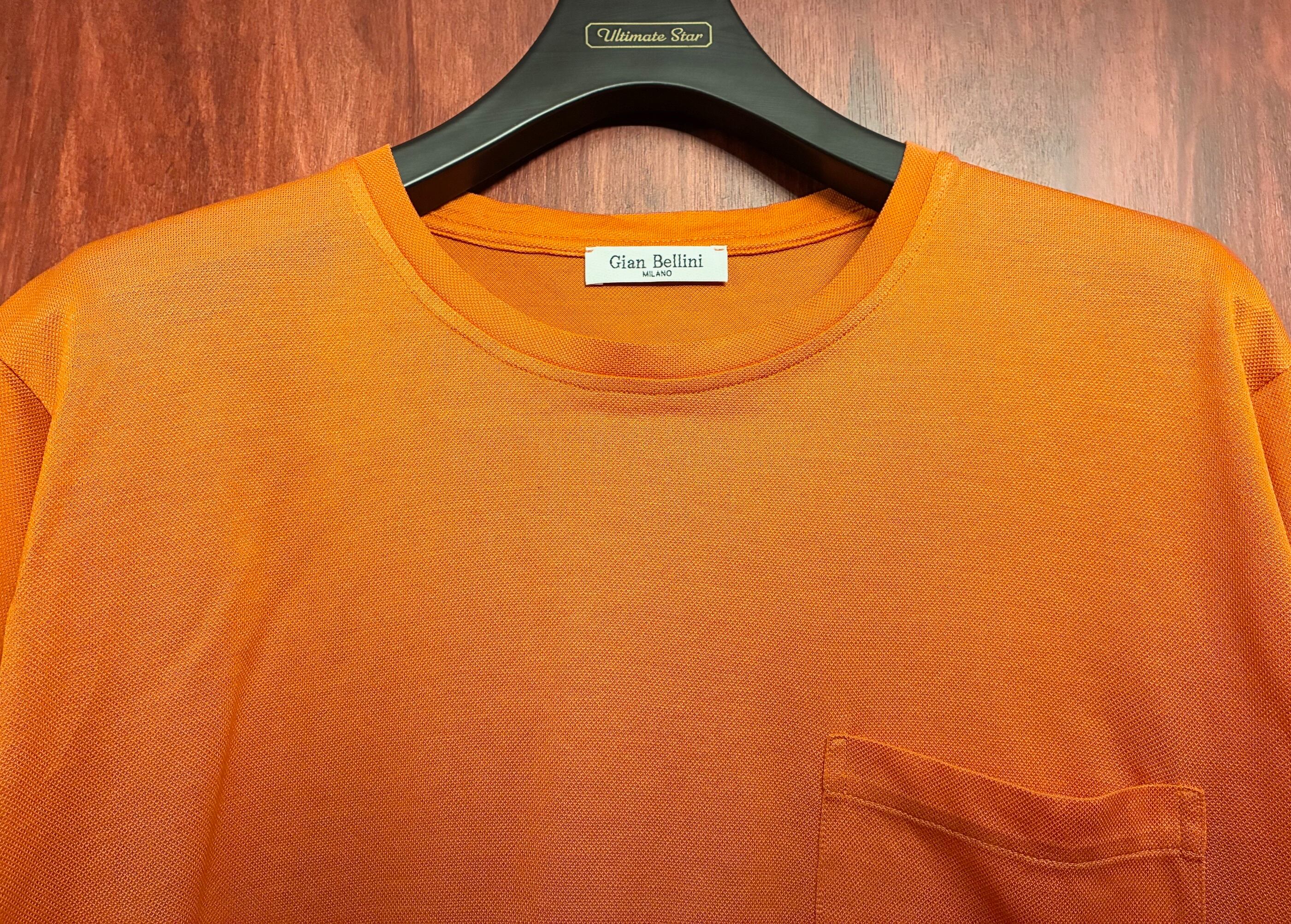 MADE IN ITALY製 Gian Bellini ポケット付き クルーネックニットTシャツ オレンジ Lサイズ