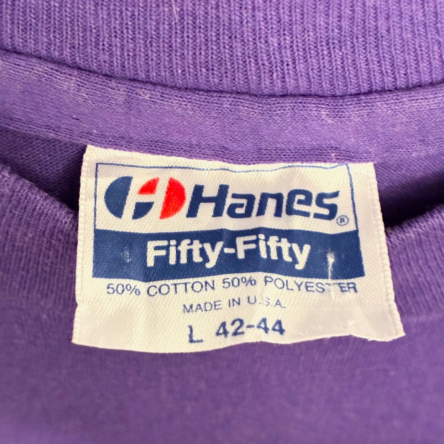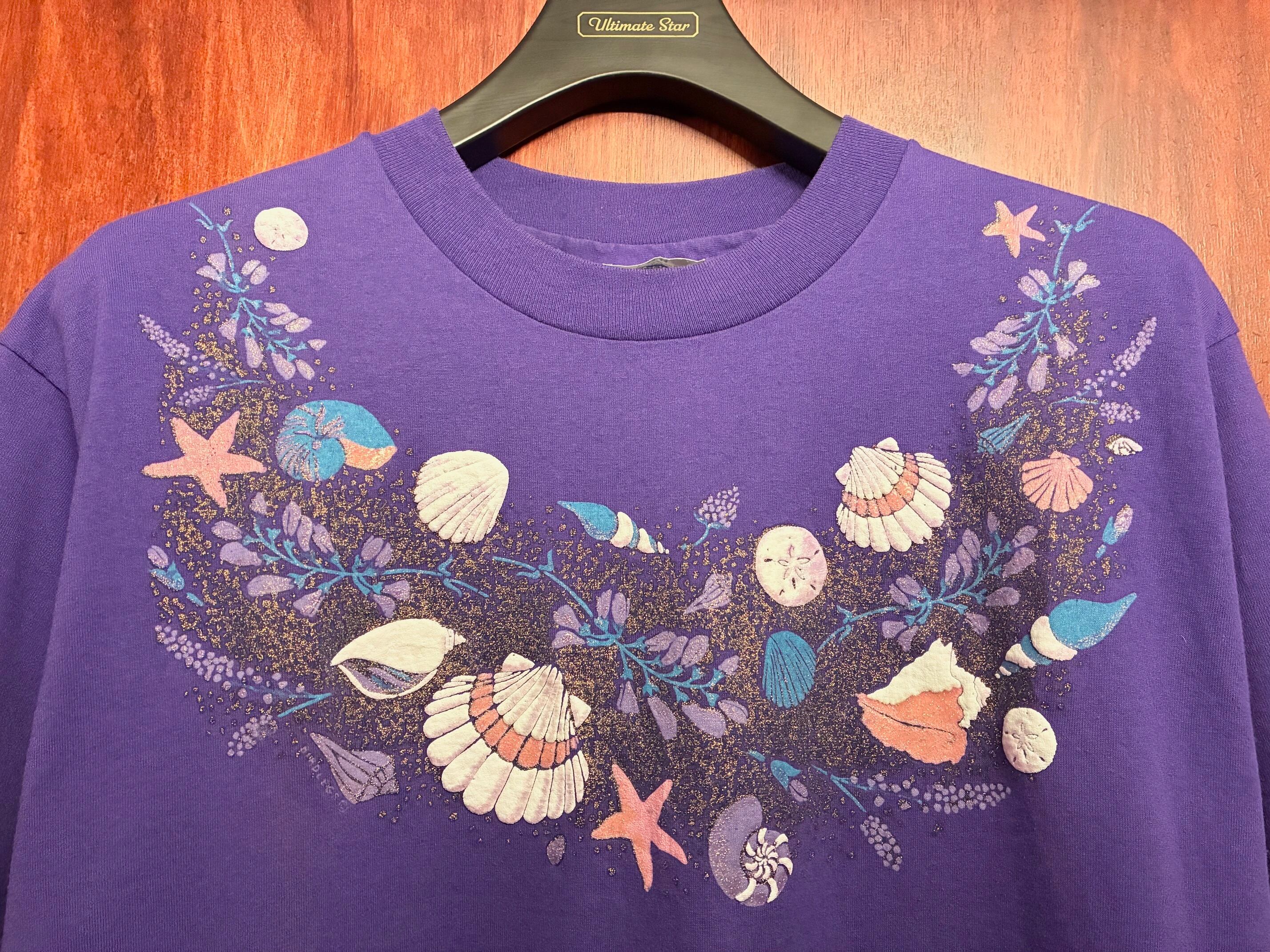 MADE IN USA製 80s Hanes Fifty-Fiftyボディ 貝殻立体プリントTシャツ パープル Lサイズ