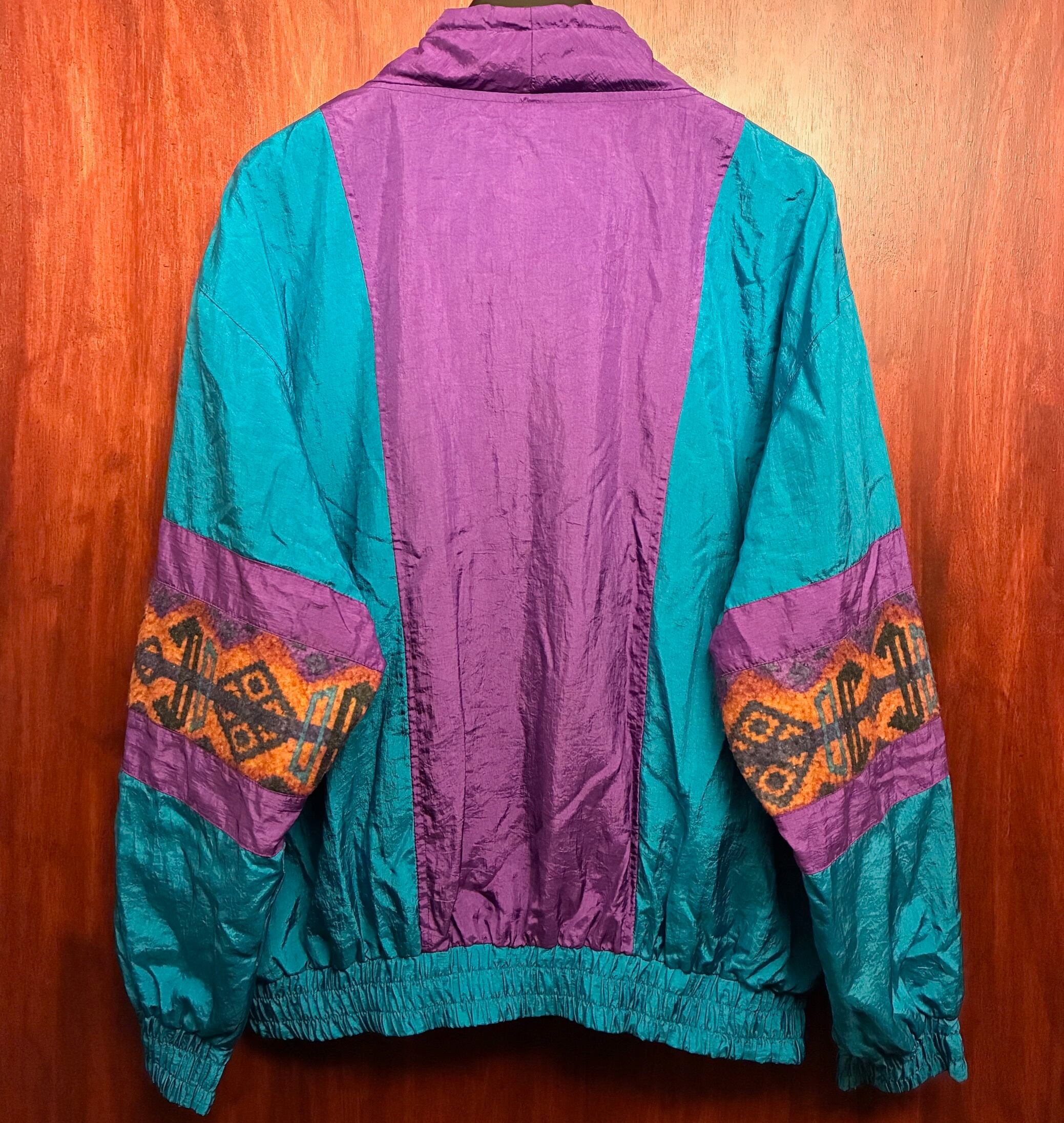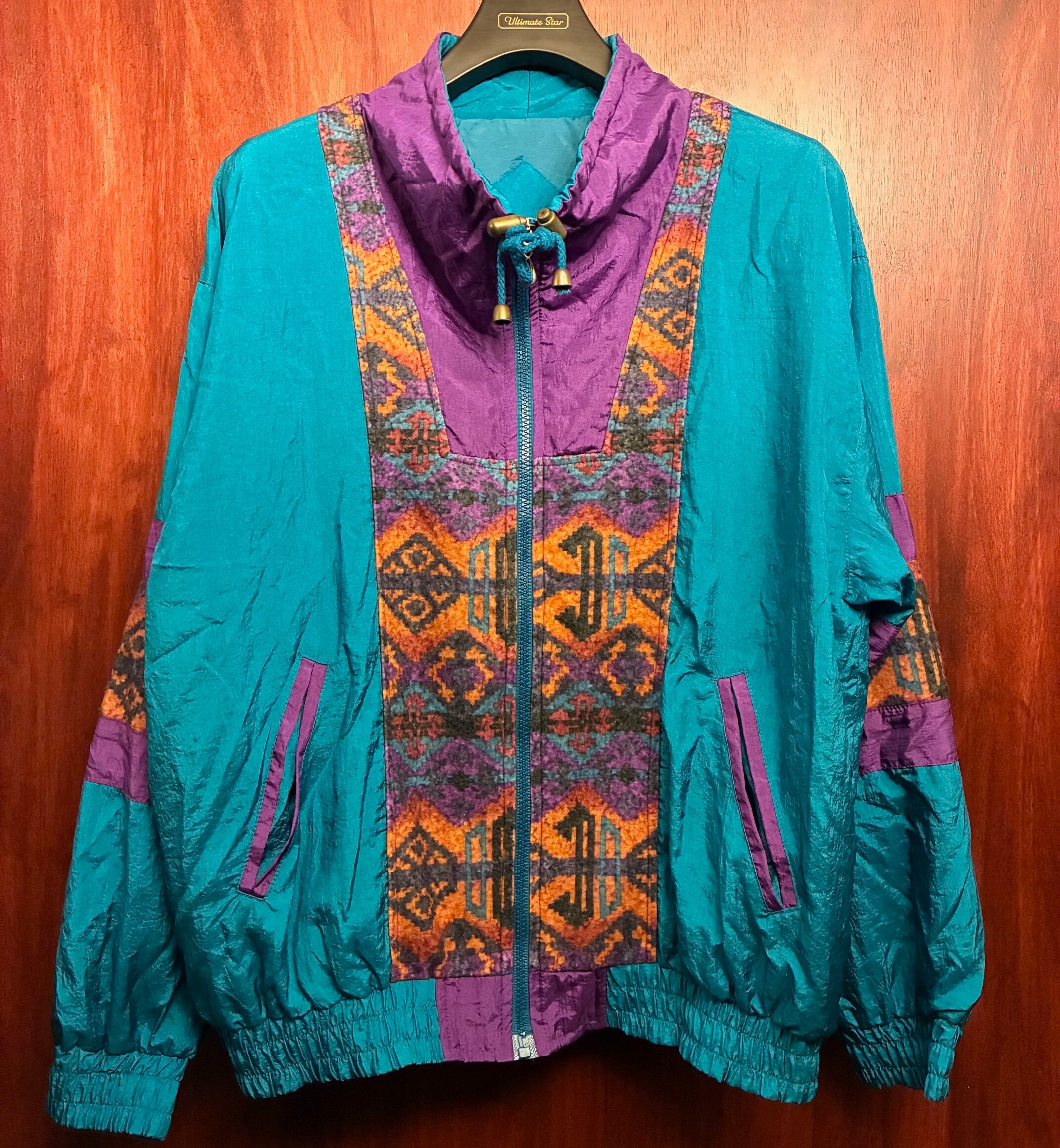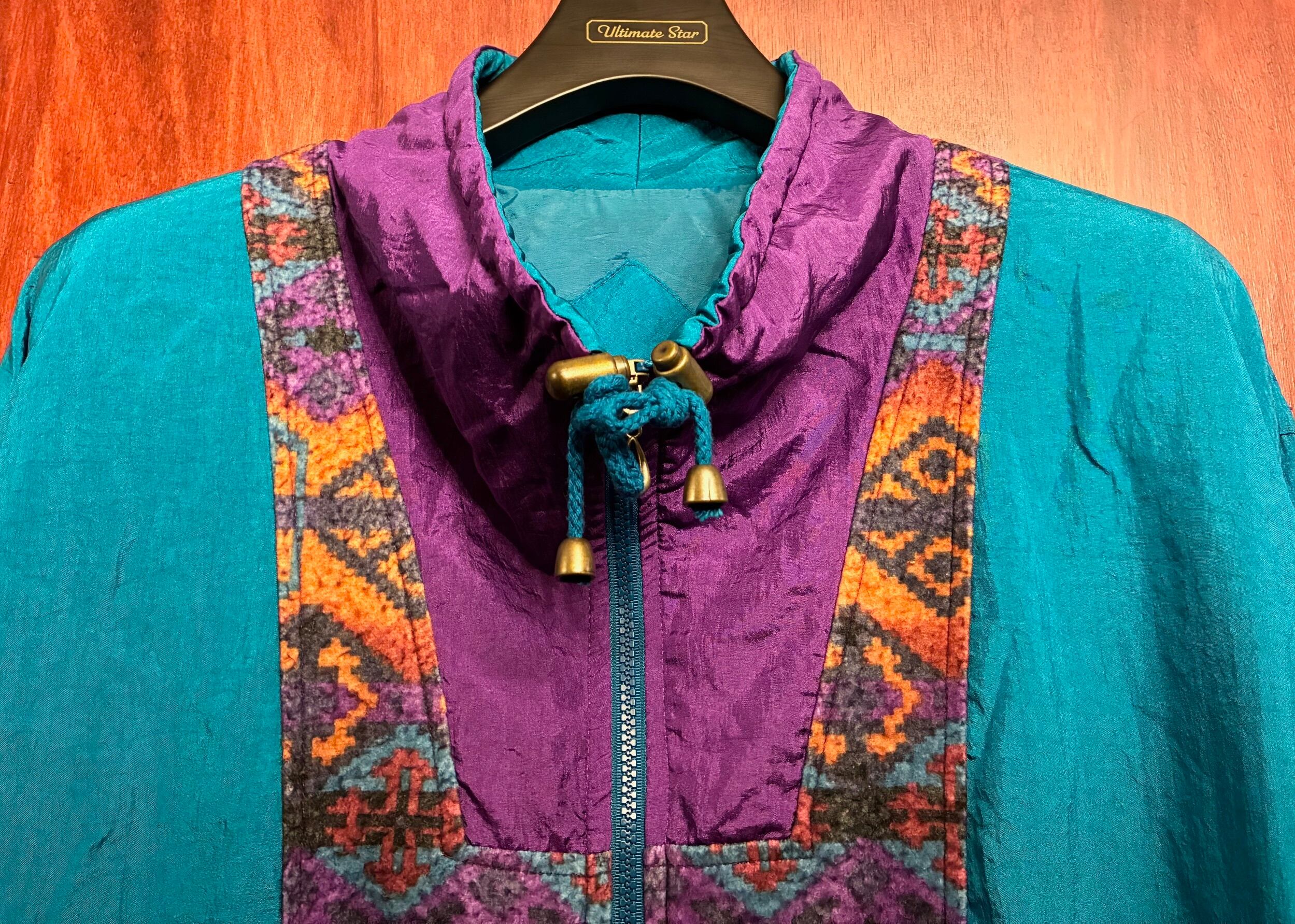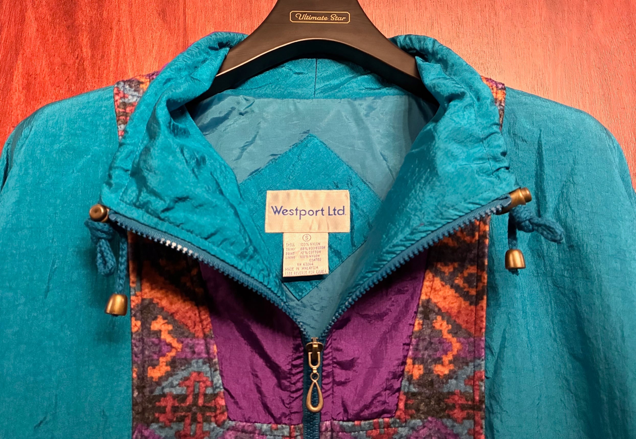 Westport Ltd. ネイティブ柄 フルジップナイロンジャケット ブルー×パープル Sサイズ