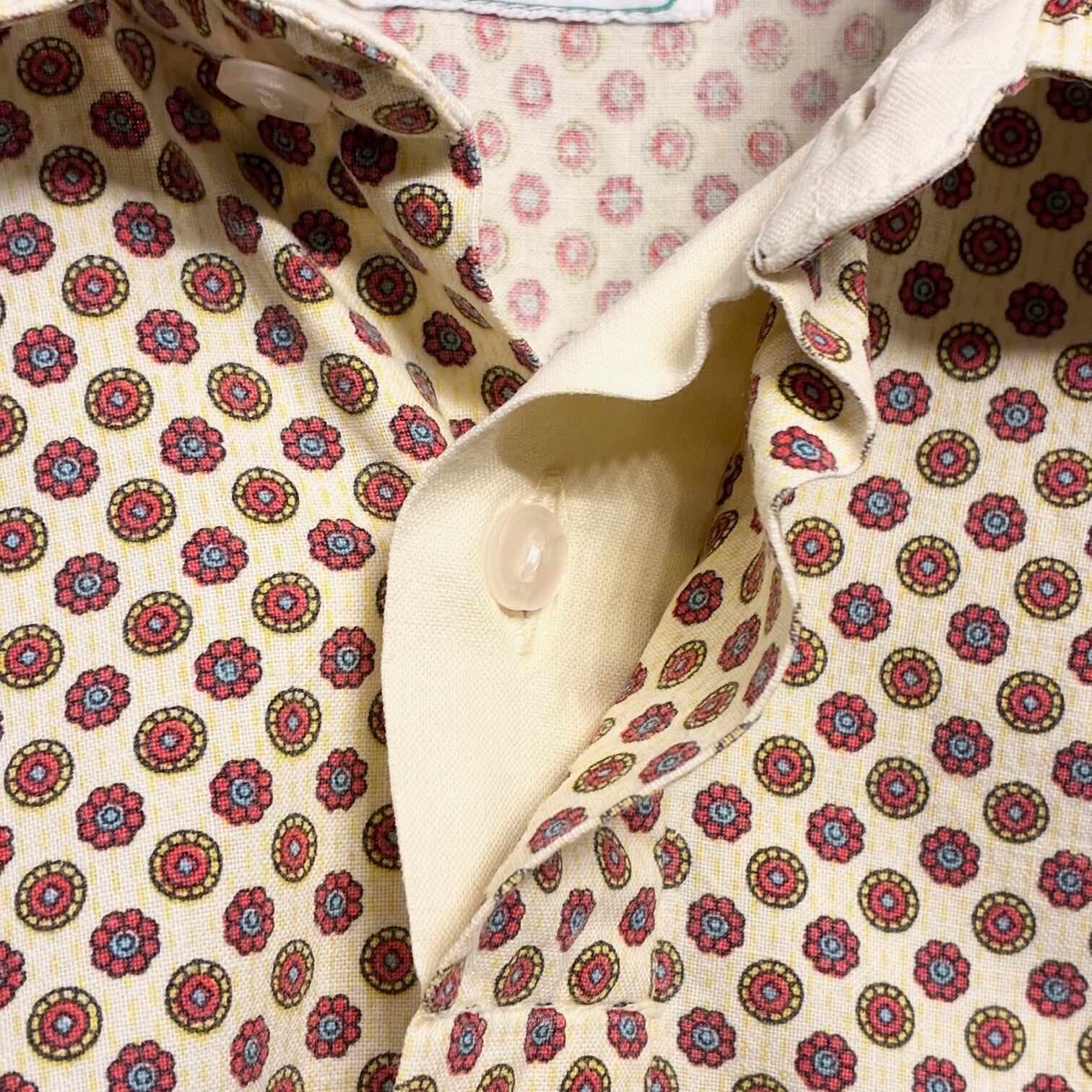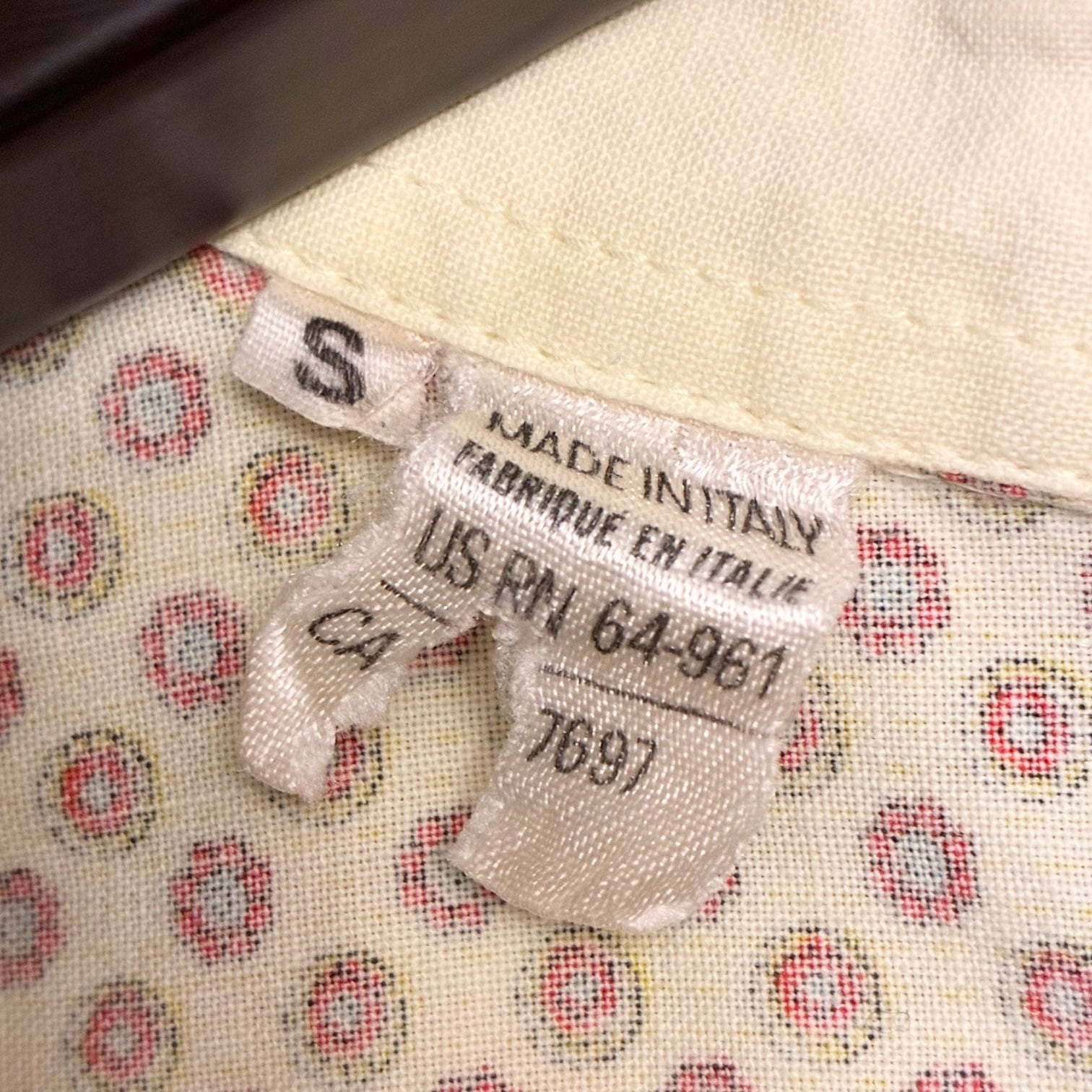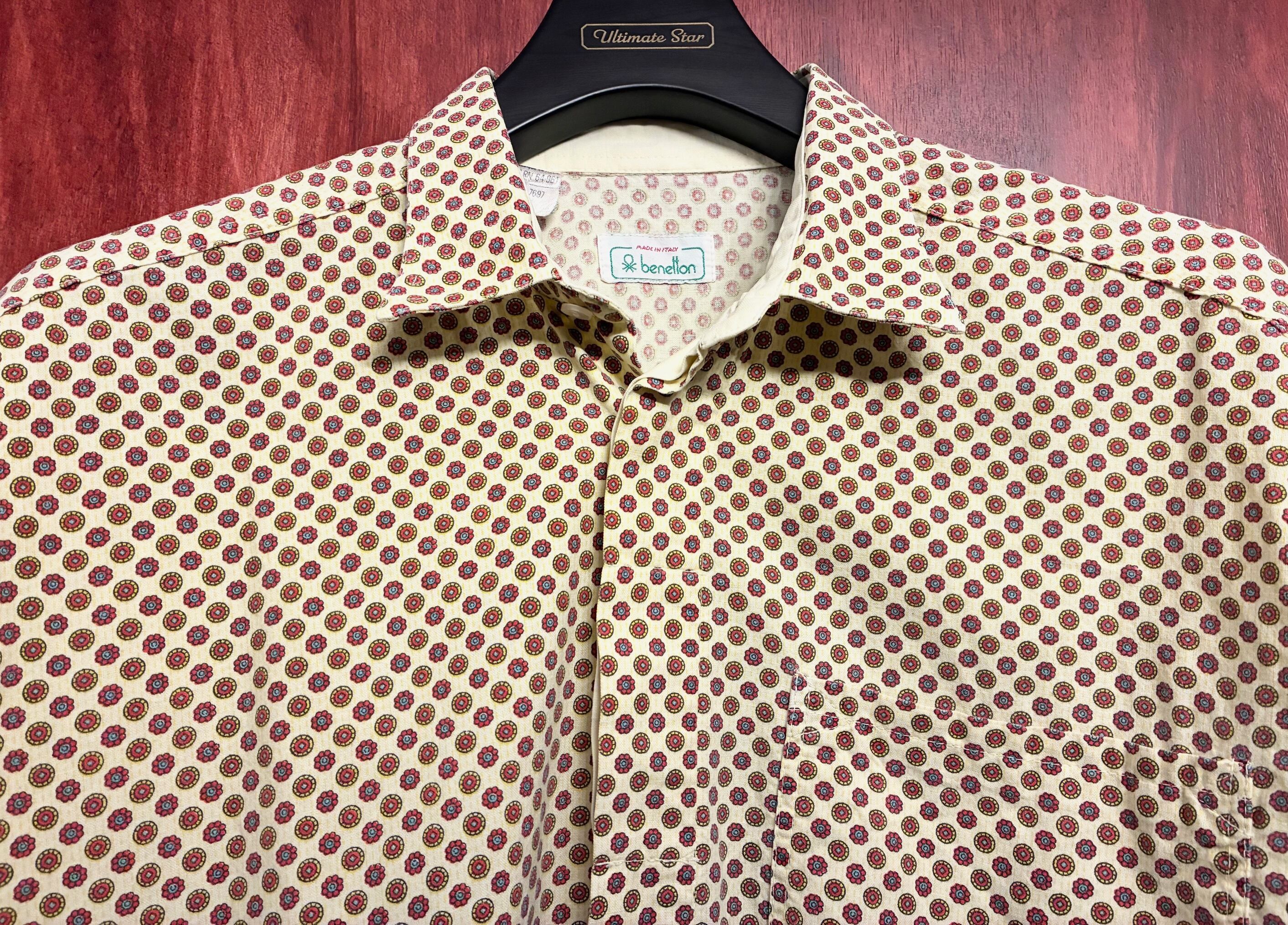MADE IN ITALY製 80s UNITED COLORS OF BENETTON 小紋柄 長袖シャツ イエロー Sサイズ