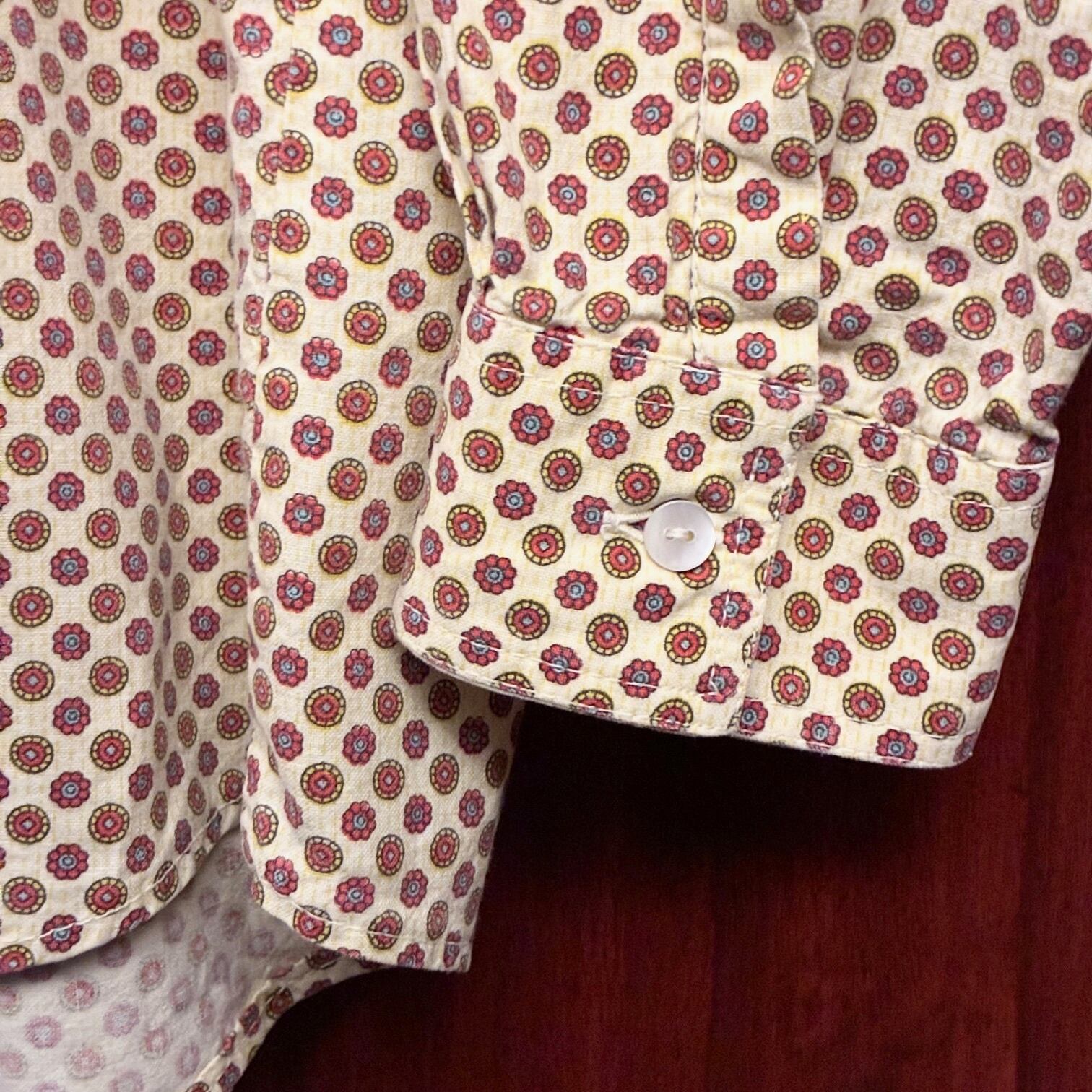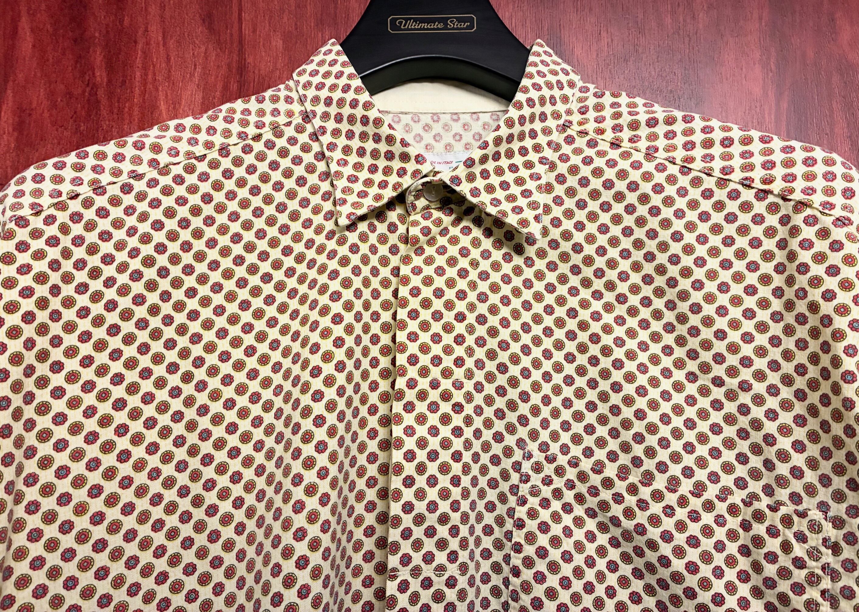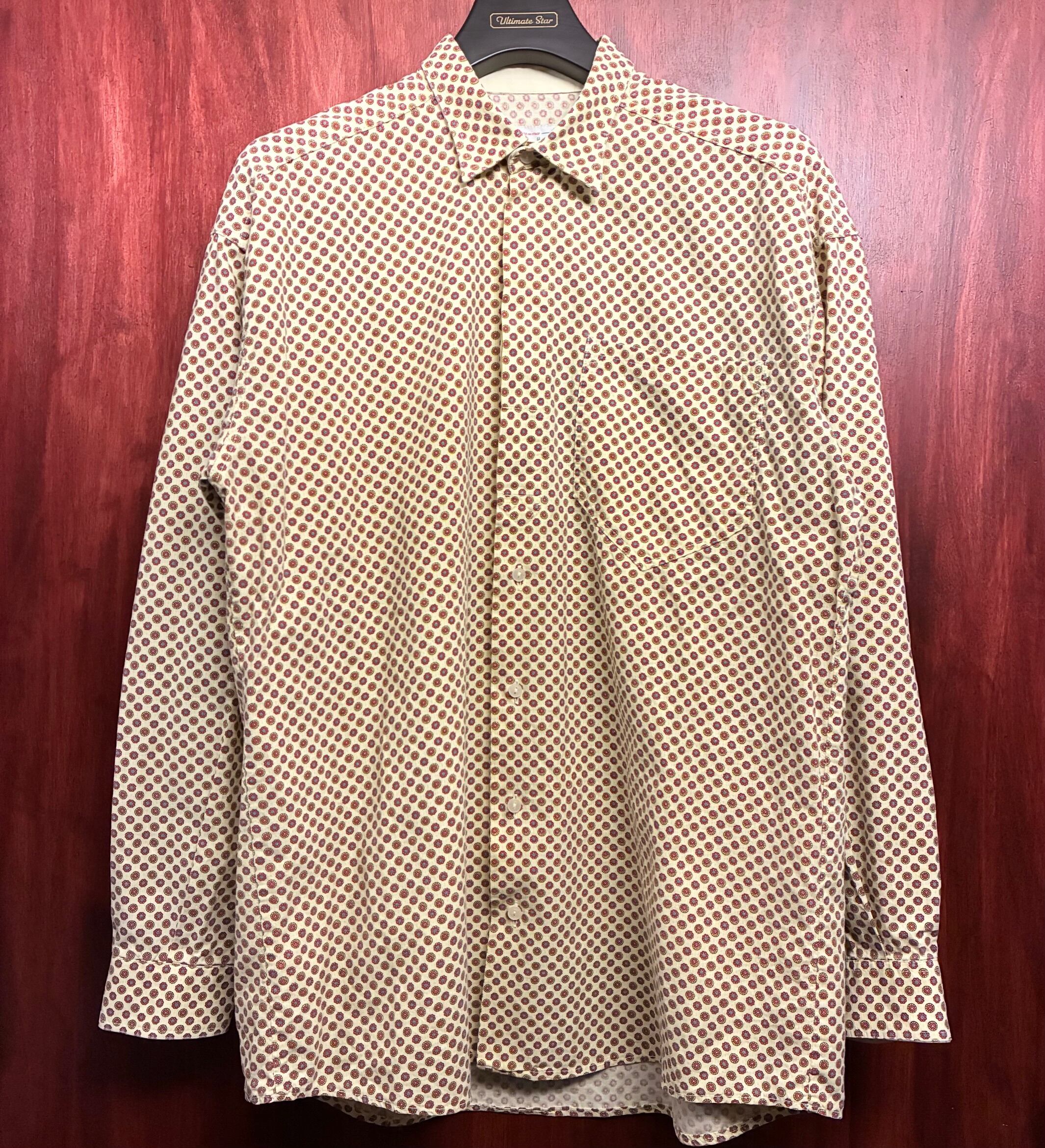 MADE IN ITALY製 80s UNITED COLORS OF BENETTON 小紋柄 長袖シャツ イエロー Sサイズ
