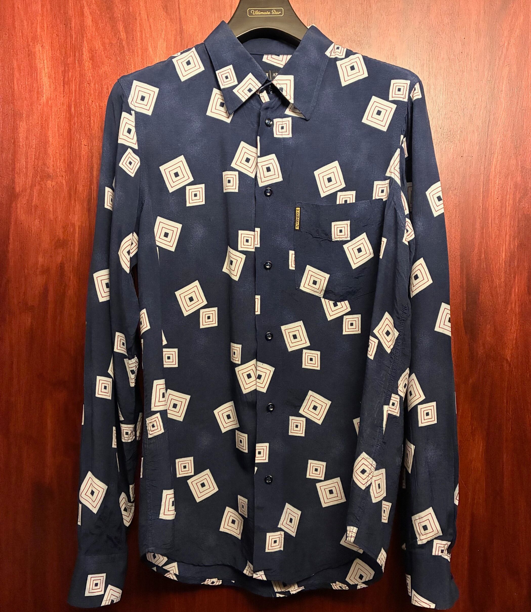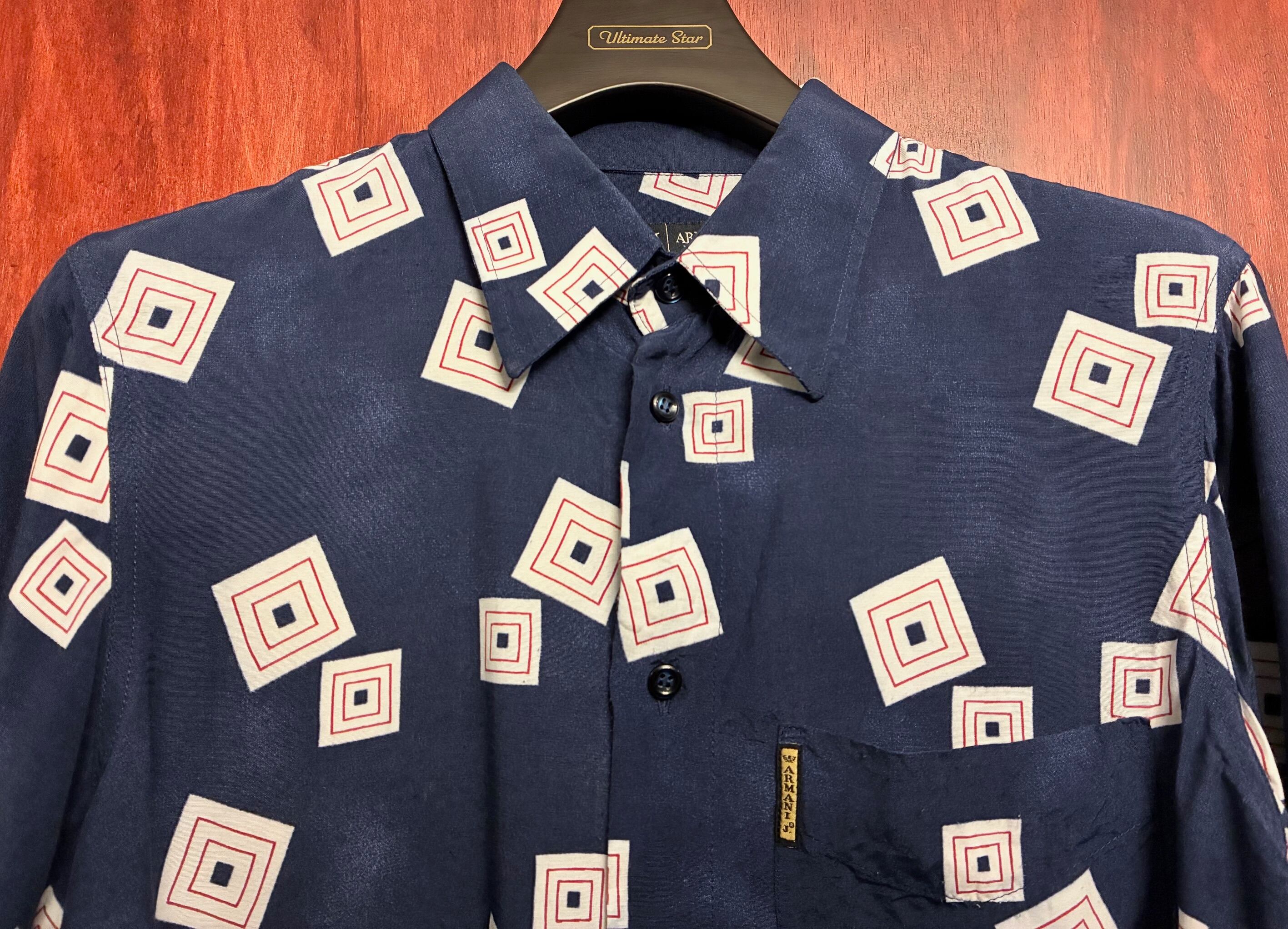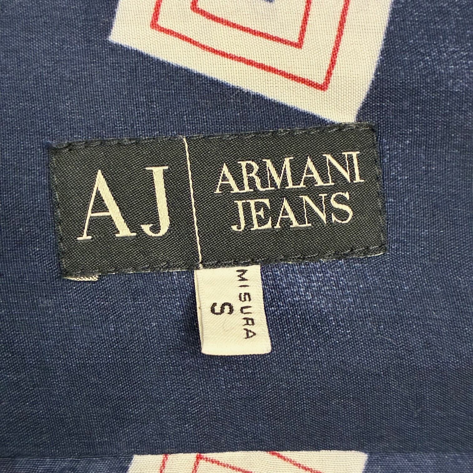 MADE IN ROMANIA製 ARMANI JEANS 長袖アロハシャツ ネイビー Sサイズ