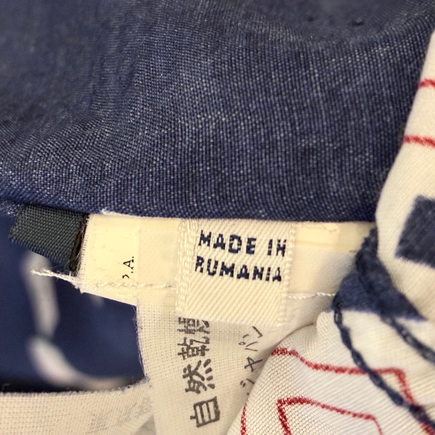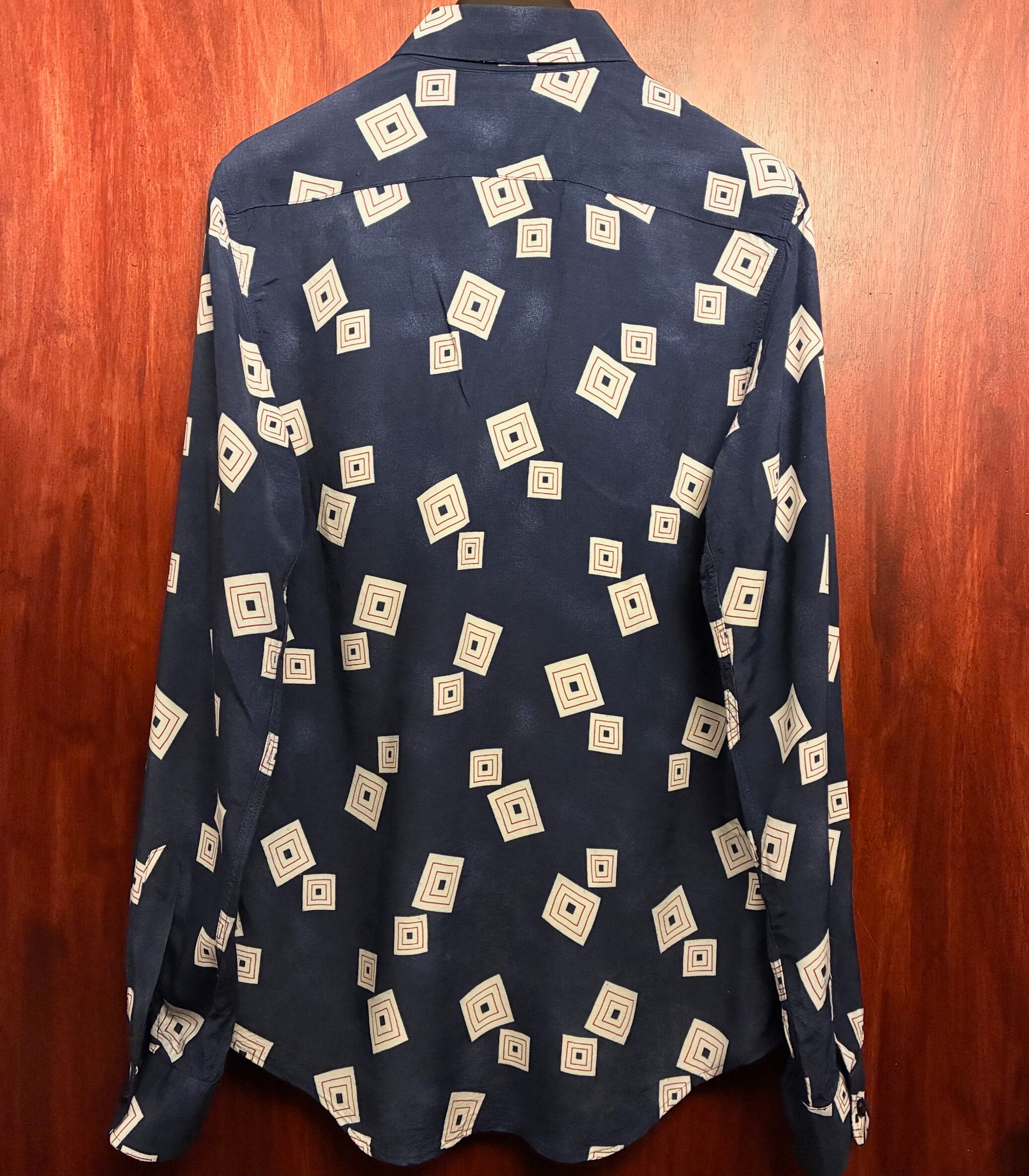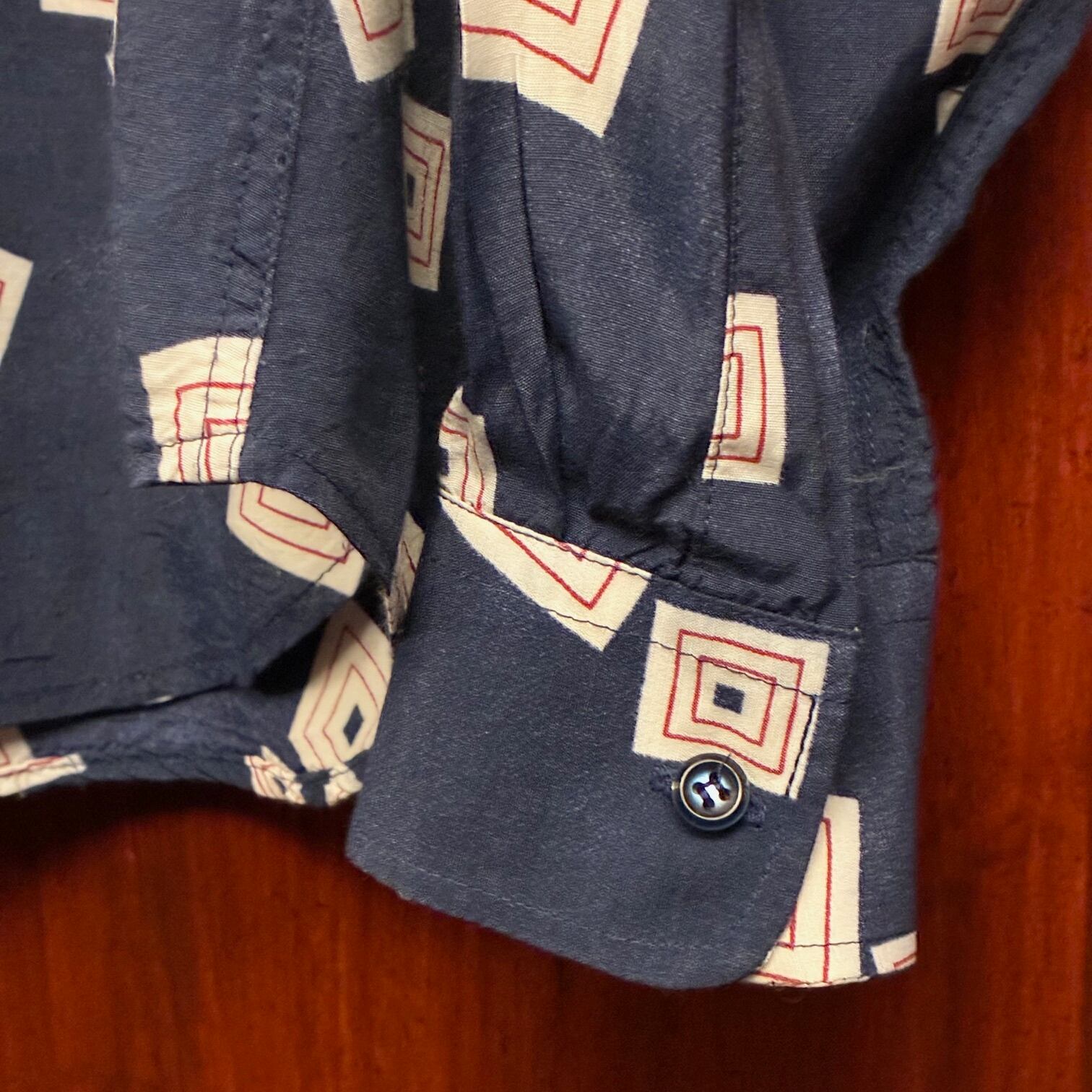 MADE IN ROMANIA製 ARMANI JEANS 長袖アロハシャツ ネイビー Sサイズ
