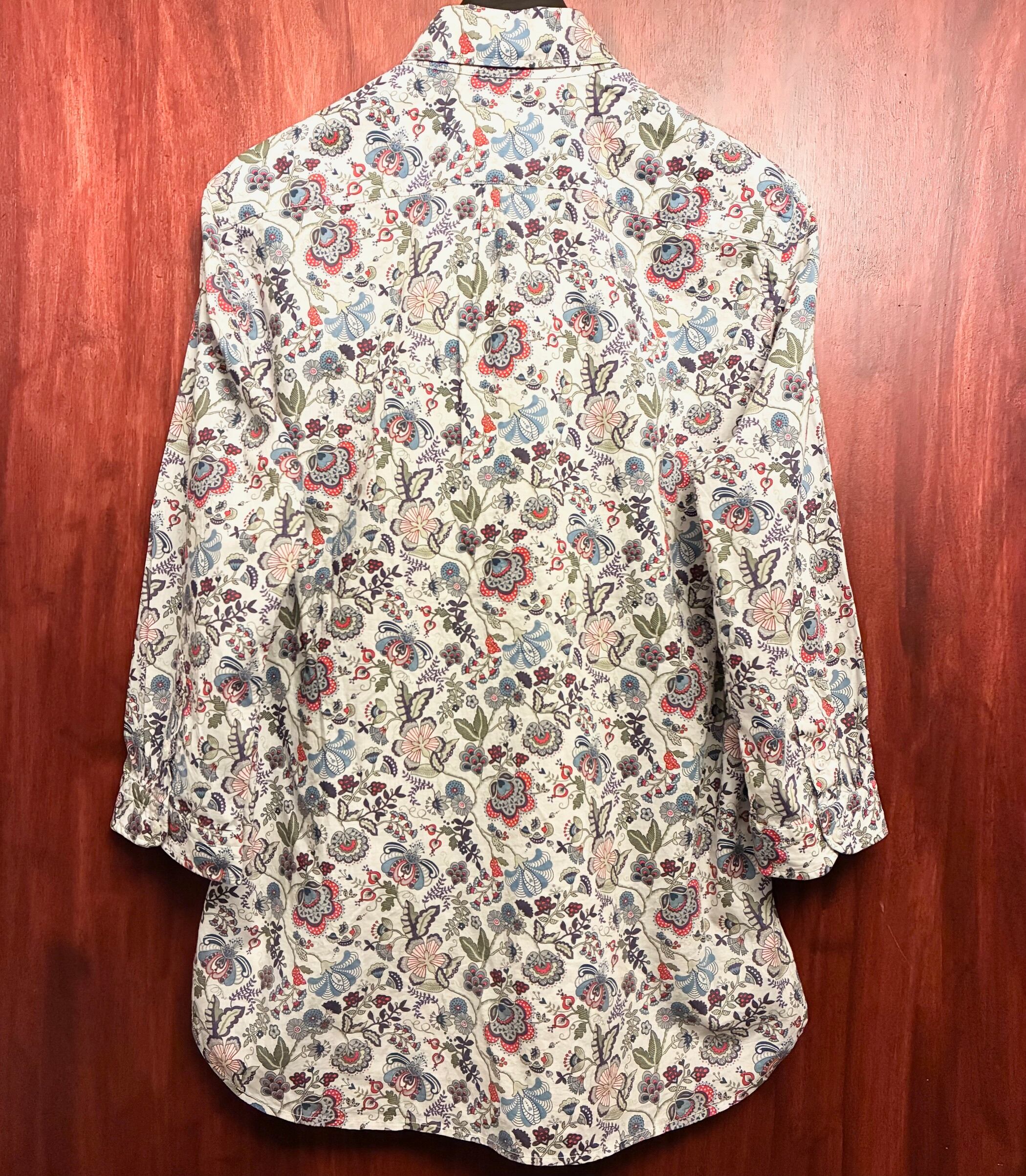 【SHIPS 取り扱い】 MADE IN ITALY製 GUY ROVER PER SHIPS ペイズリー総柄 七分袖ボタンダウンシャツ ホワイト Mサイズ
