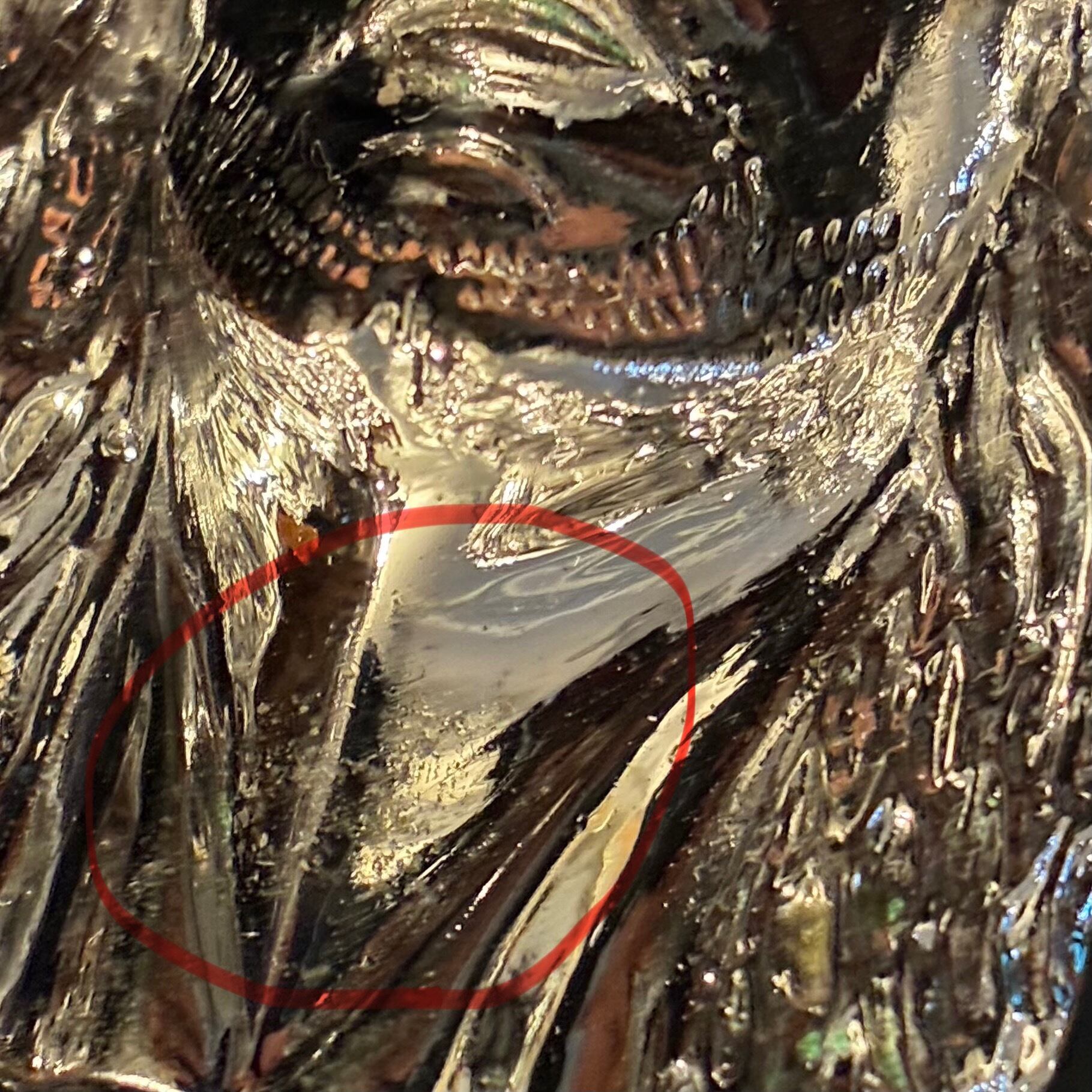 反射するのであまり目立ちませんがジーザスの首元部分に多少傷があり、他にも貴金属特有の小傷などはございますので、中古品にご理解の上ご購入いただくようお願い致します。